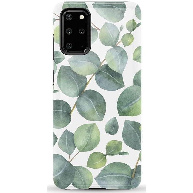 Casely Galaxy S20 Plus Case | Current Mood | Cow Print | Essential Slim Dual-Layer Protective Design(Leaf Me Alone | Green Floral Print)