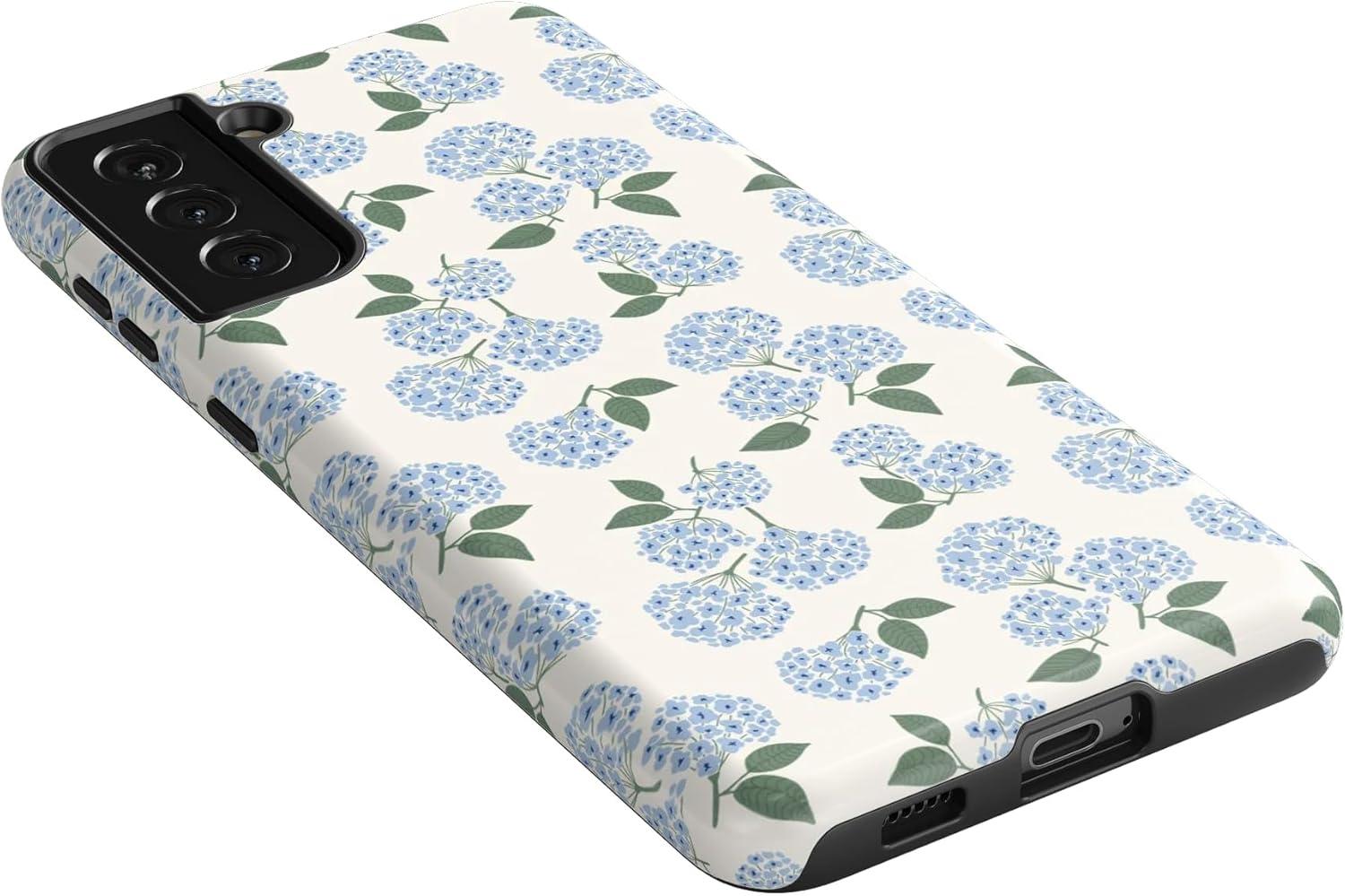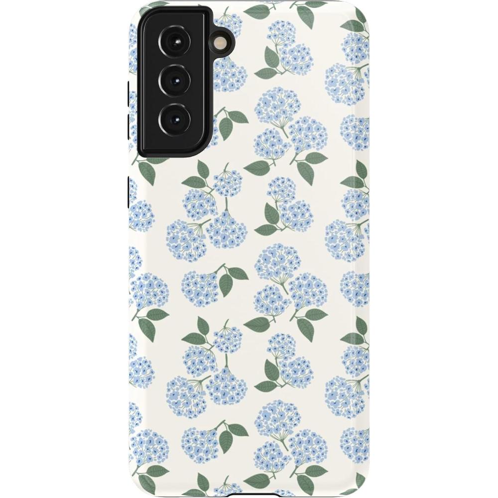 Casely Galaxy S21 Case | Current Mood | Cow Print(Nantucket Cottage | Blue Hydrangea)