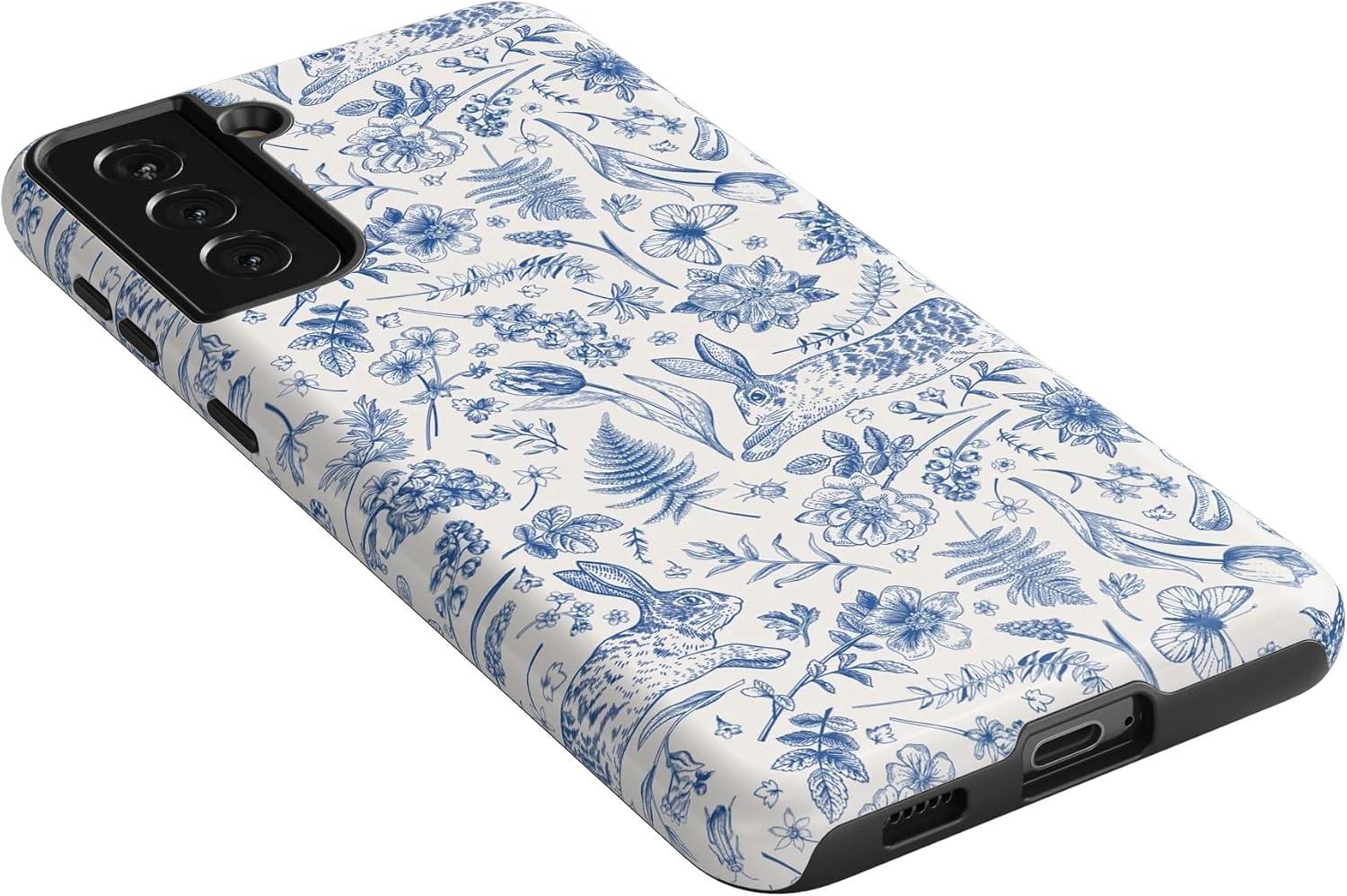 Casely Galaxy S21 Plus Case | Flower Patch | Multi-Color Floral | Essential Slim Dual-Layer Protective Design(Hop & Bloom | Bunny Toile)