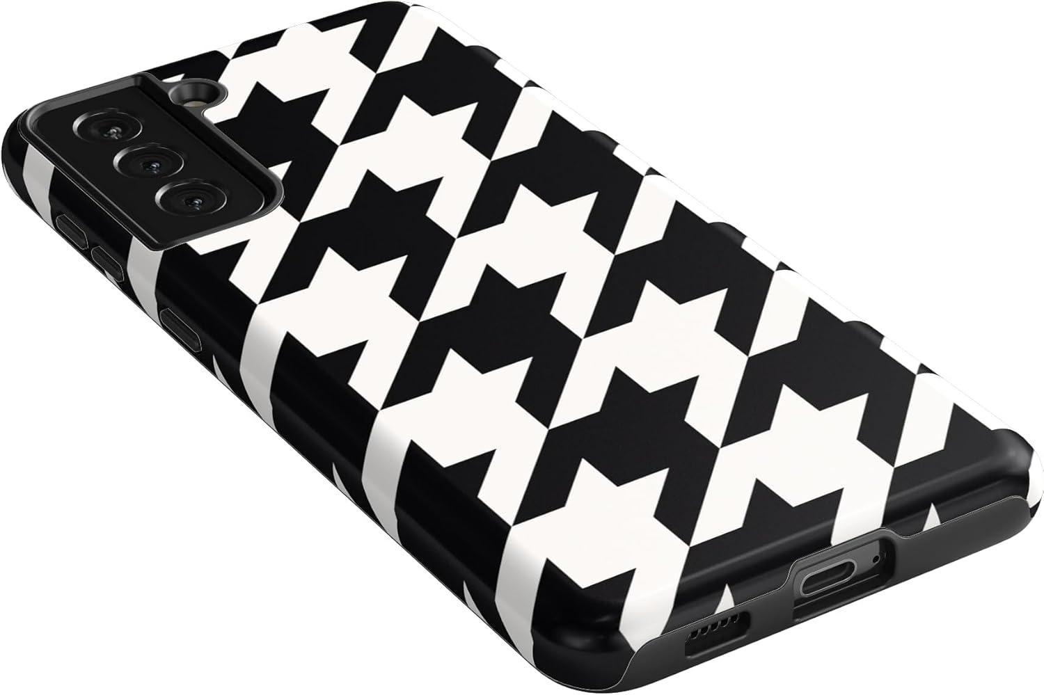 Casely Galaxy S21 Plus Case | Flower Patch | Multi-Color Floral | Essential Slim Dual-Layer Protective Design(Houndstooth | High Contrast Design)