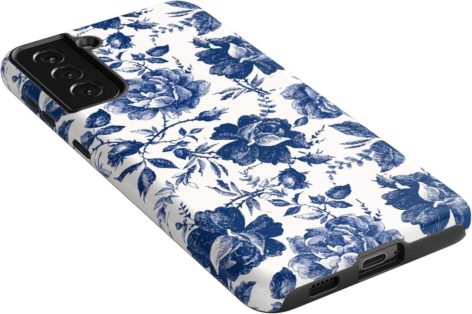 Casely Galaxy S21 Plus Case | Flower Patch | Multi-Color Floral | Essential Slim Dual-Layer Protective Design(Rose to Fame | Blue & White Rose Floral)