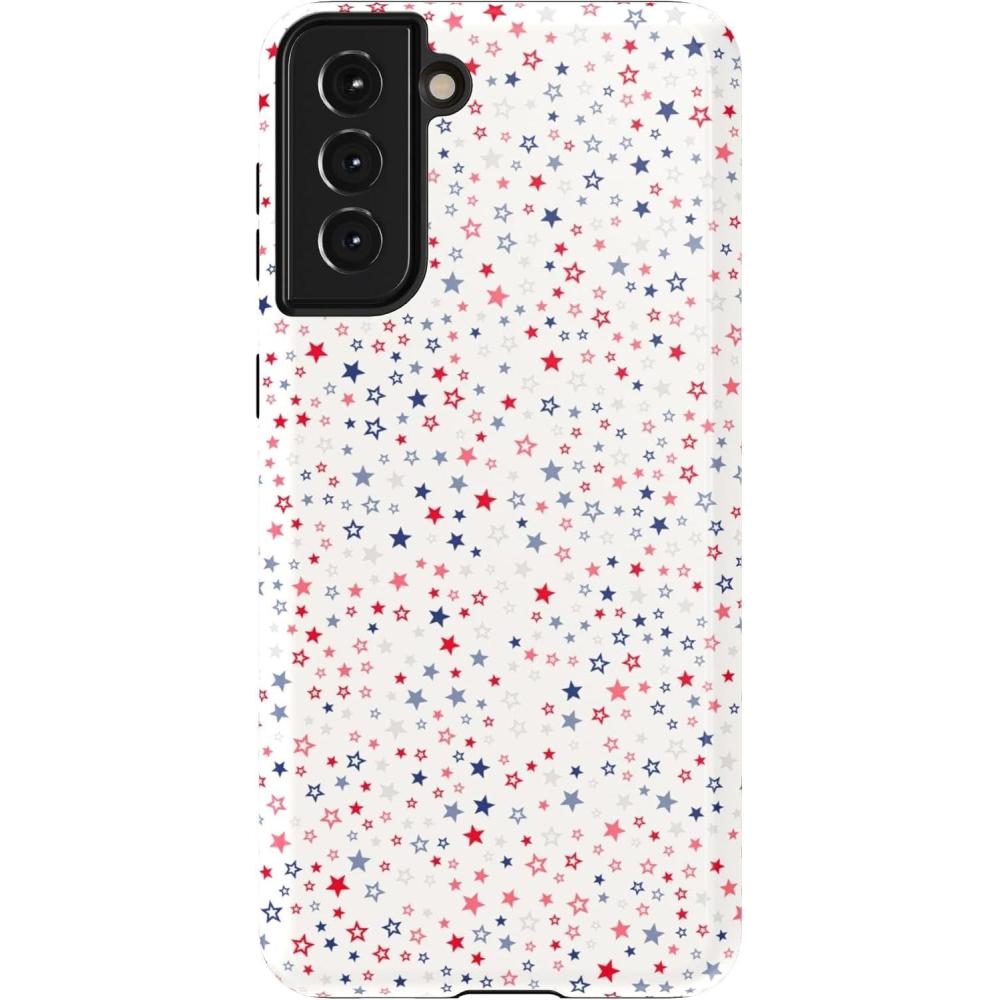 Casely Galaxy S21 Plus Case | Flower Patch | Multi-Color Floral | Essential Slim Dual-Layer Protective Design(Seeing Stars | Red White & Blue)