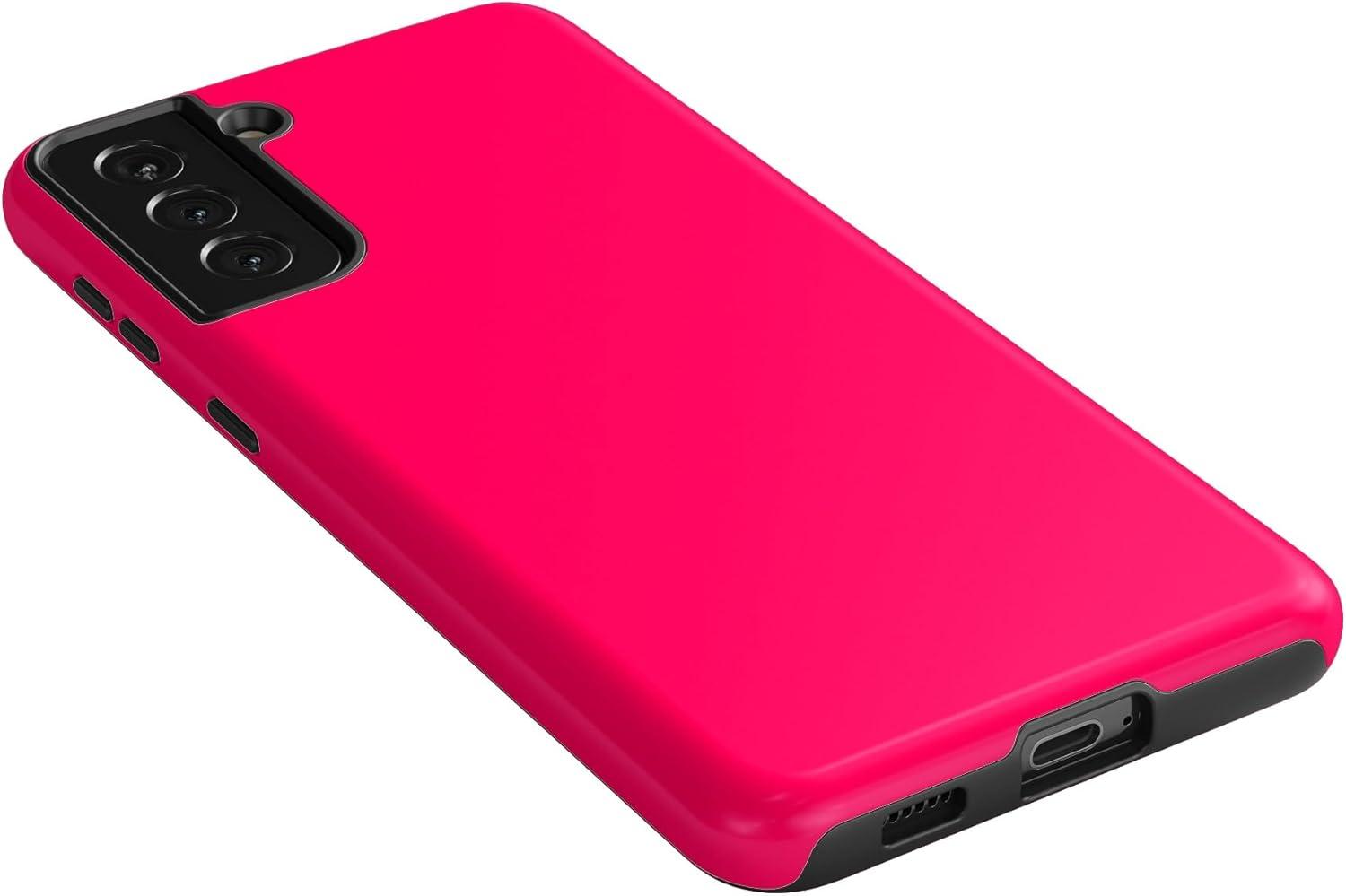 Casely Galaxy S21 Plus Case | Flower Patch | Multi-Color Floral | Essential Slim Dual-Layer Protective Design(Think Pink | Solid Neon Pink)