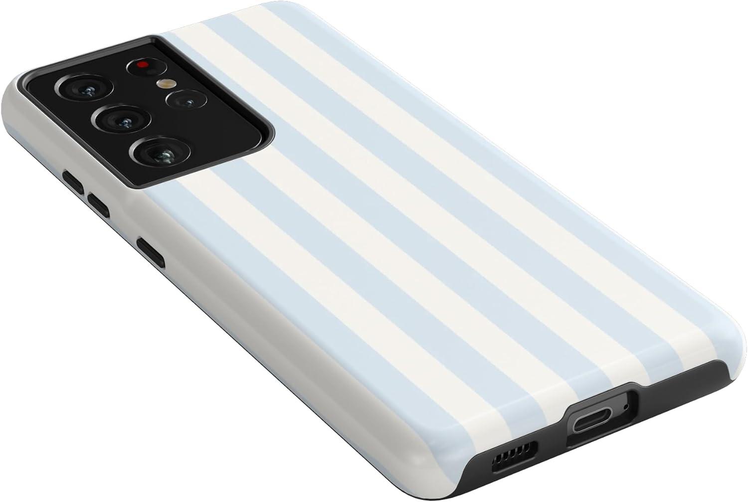Casely Galaxy S21 Ultra Case | Amalfi Aperitivo | Dolce Vita | Essential Slim Dual-Layer Protective Design(Blue Stripes | Sunday Best)