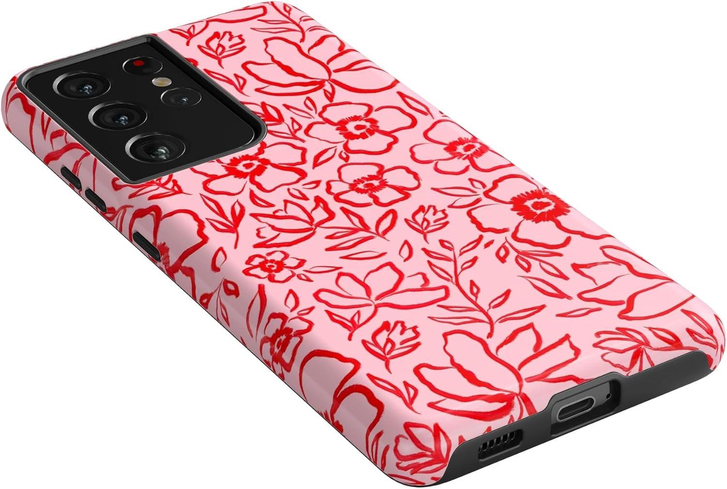 Casely Galaxy S21 Ultra Case | Amalfi Aperitivo | Dolce Vita | Essential Slim Dual-Layer Protective Design(Blush Garden | Floral Doodle)