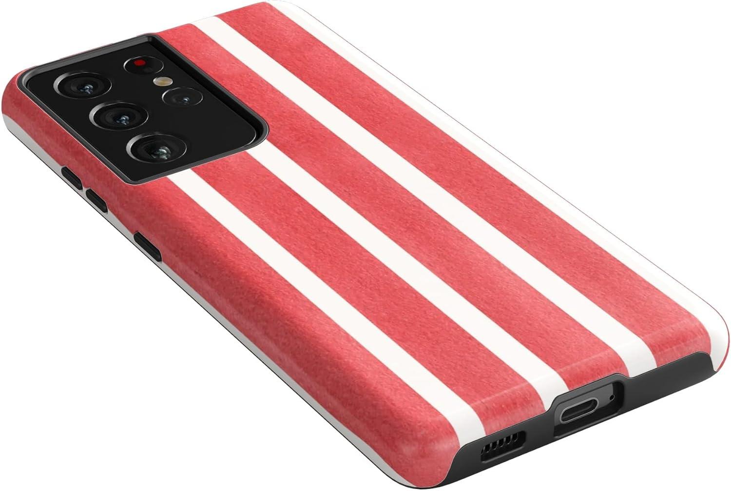 Casely Galaxy S21 Ultra Case | Amalfi Aperitivo | Dolce Vita | Essential Slim Dual-Layer Protective Design(East Coast Summer | Red Stripes)