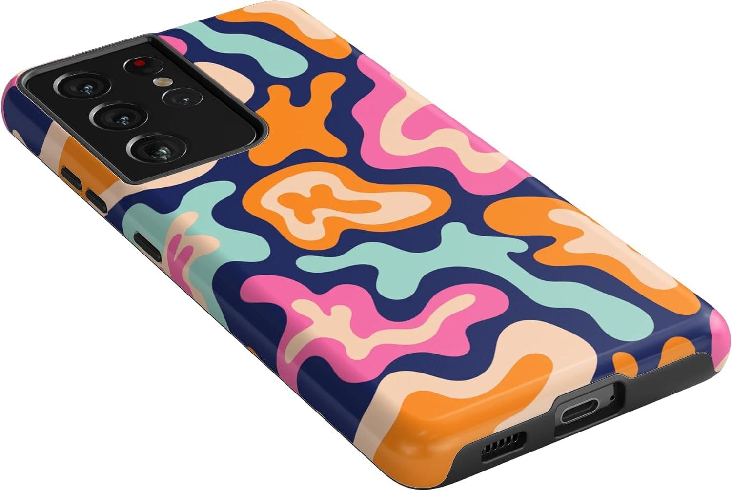 Casely Galaxy S21 Ultra Case | Amalfi Aperitivo | Dolce Vita | Essential Slim Dual-Layer Protective Design(Midnight Color Splash | Abstract Retro)