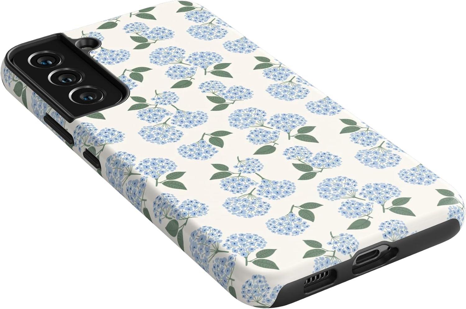 Casely Galaxy S22 Case | Polka Dots | High Contrast Design | Essential Slim Dual-Layer Protective Design(Nantucket Cottage | Blue Hydrangea)