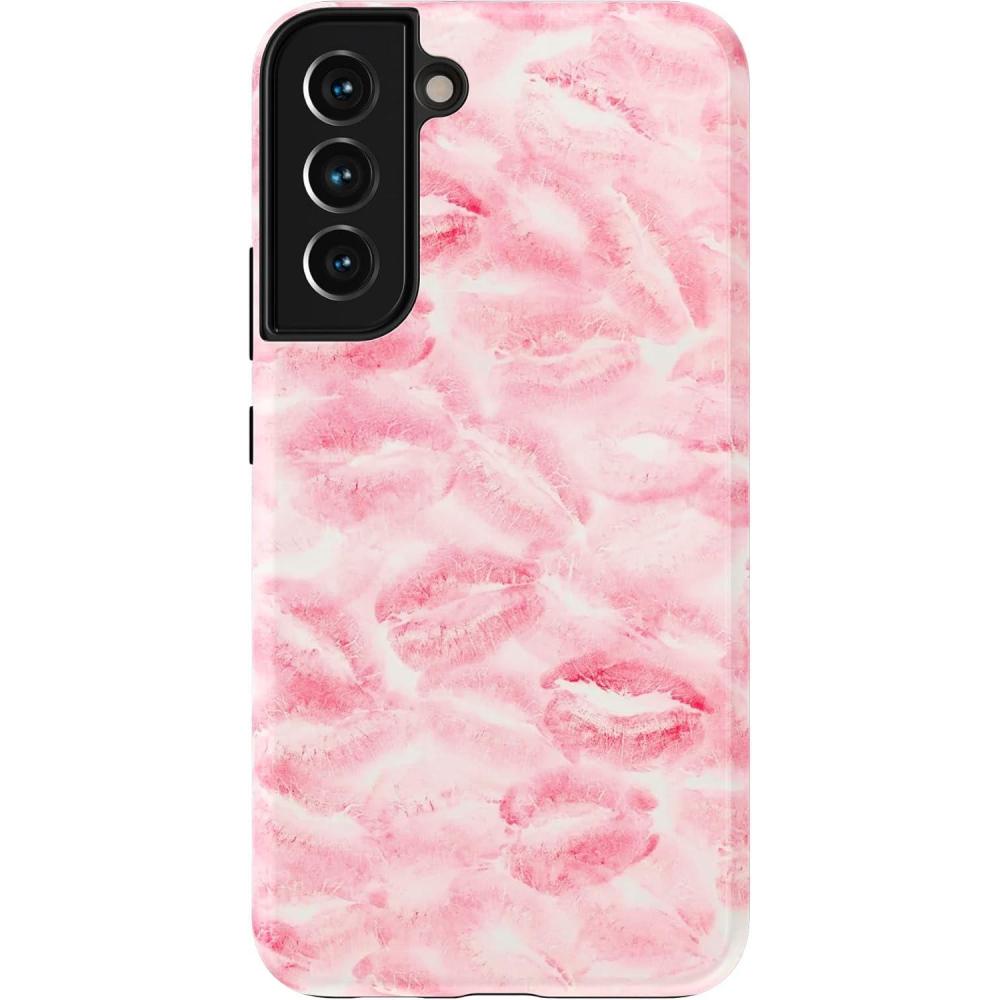 Casely Galaxy S22 Case | Polka Dots | High Contrast Design | Essential Slim Dual-Layer Protective Design(Sealed with a Kiss | Pink Lipstick)