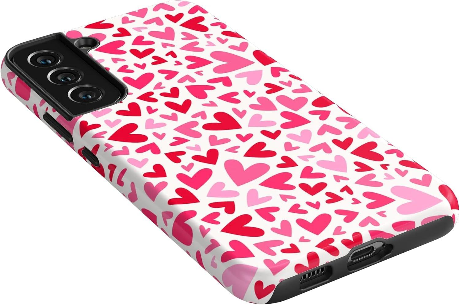 Casely Galaxy S22 Case | Polka Dots | High Contrast Design | Essential Slim Dual-Layer Protective Design(XOXO | Pink Candy Hearts)