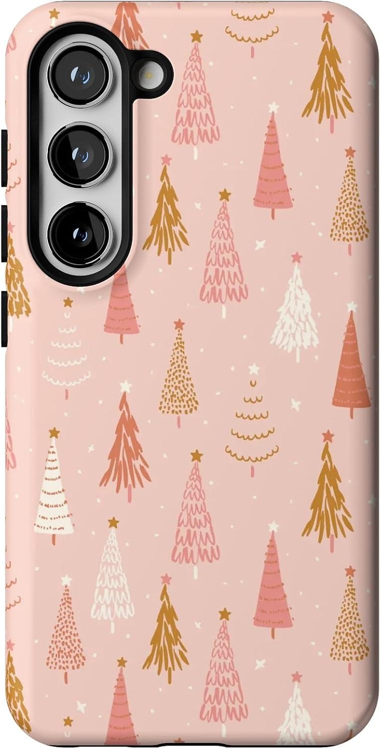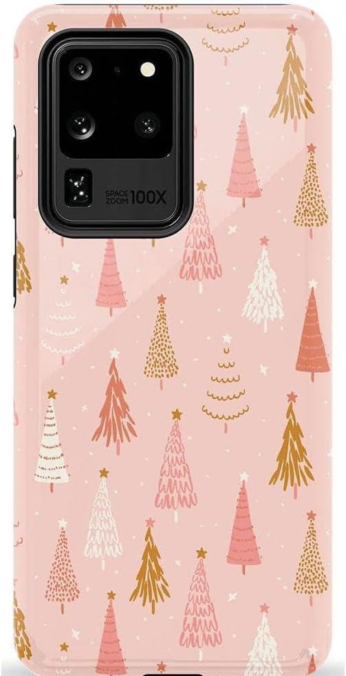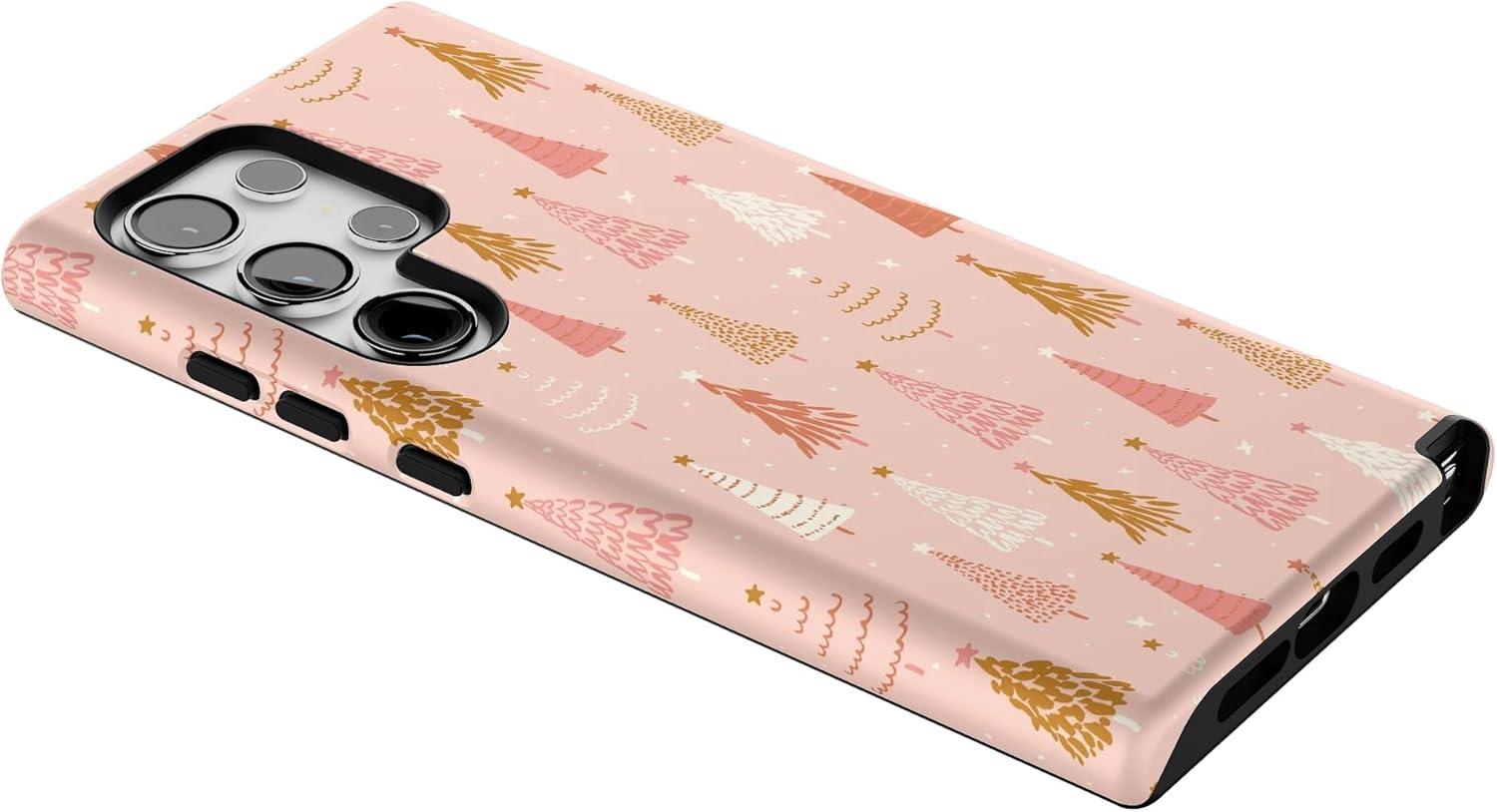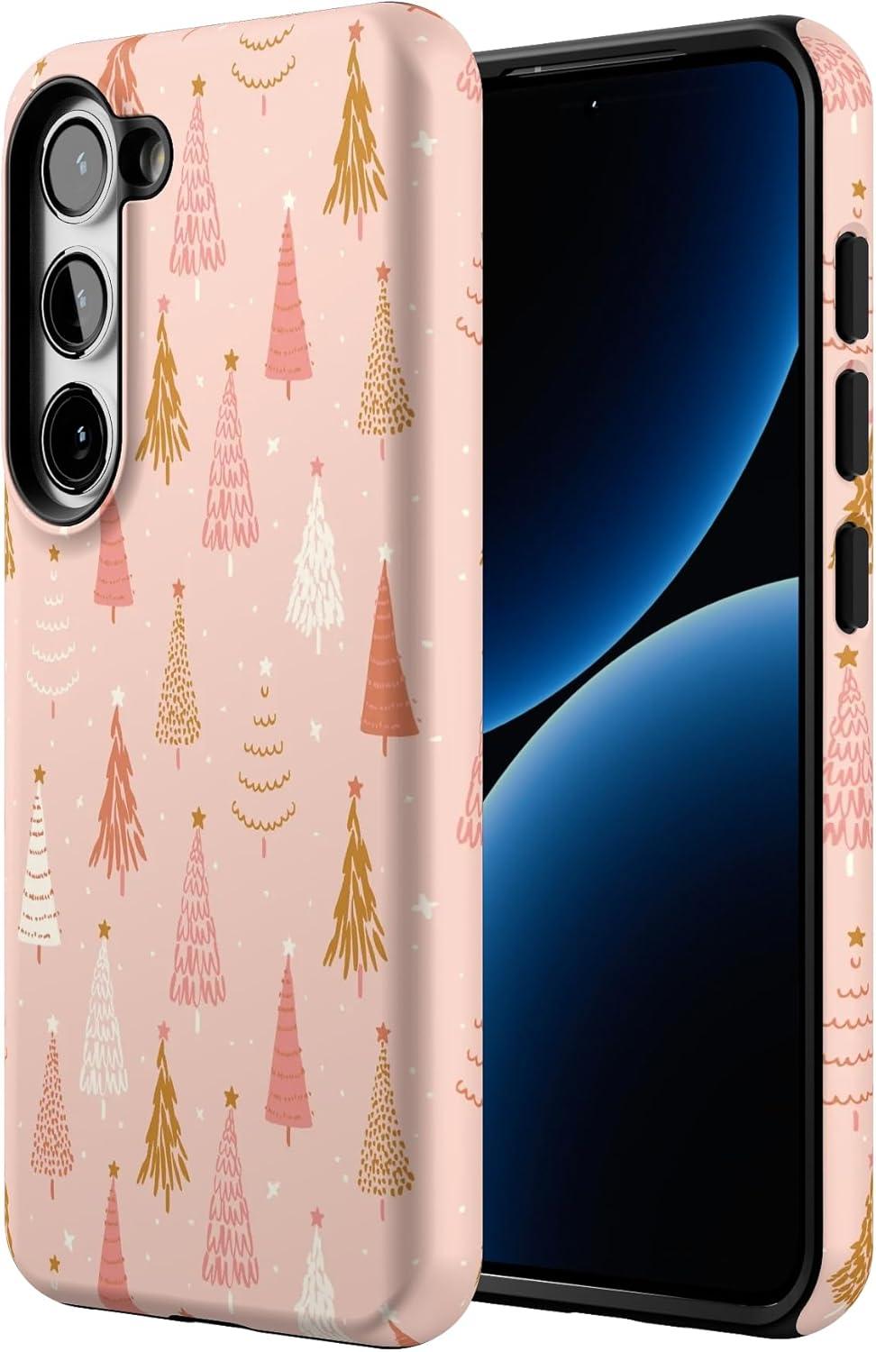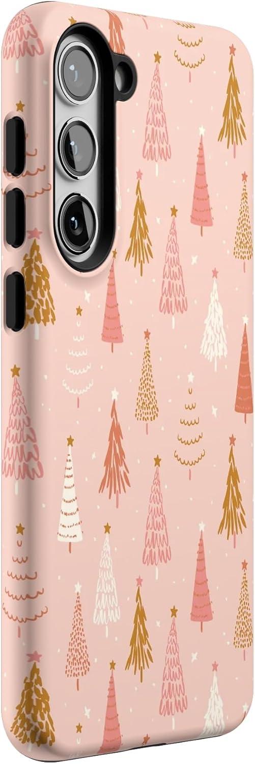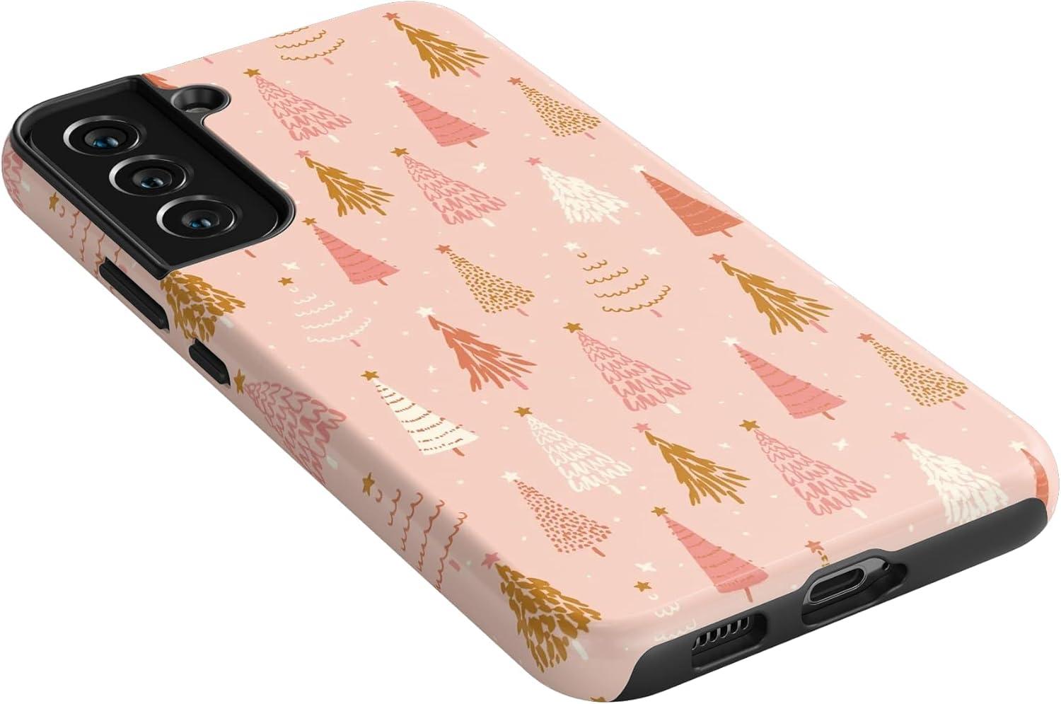 Casely Galaxy S22 Plus Case | Dashing Doxies | Dachshund Dog Case(Bubblegum Forest | Christmas Tree)
