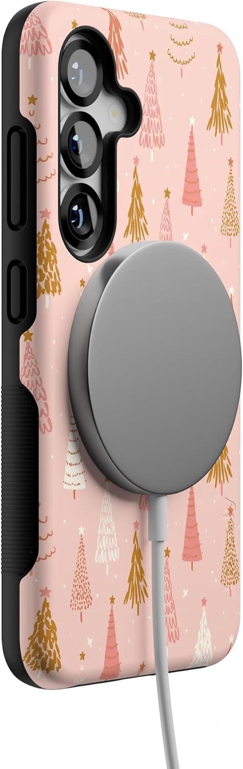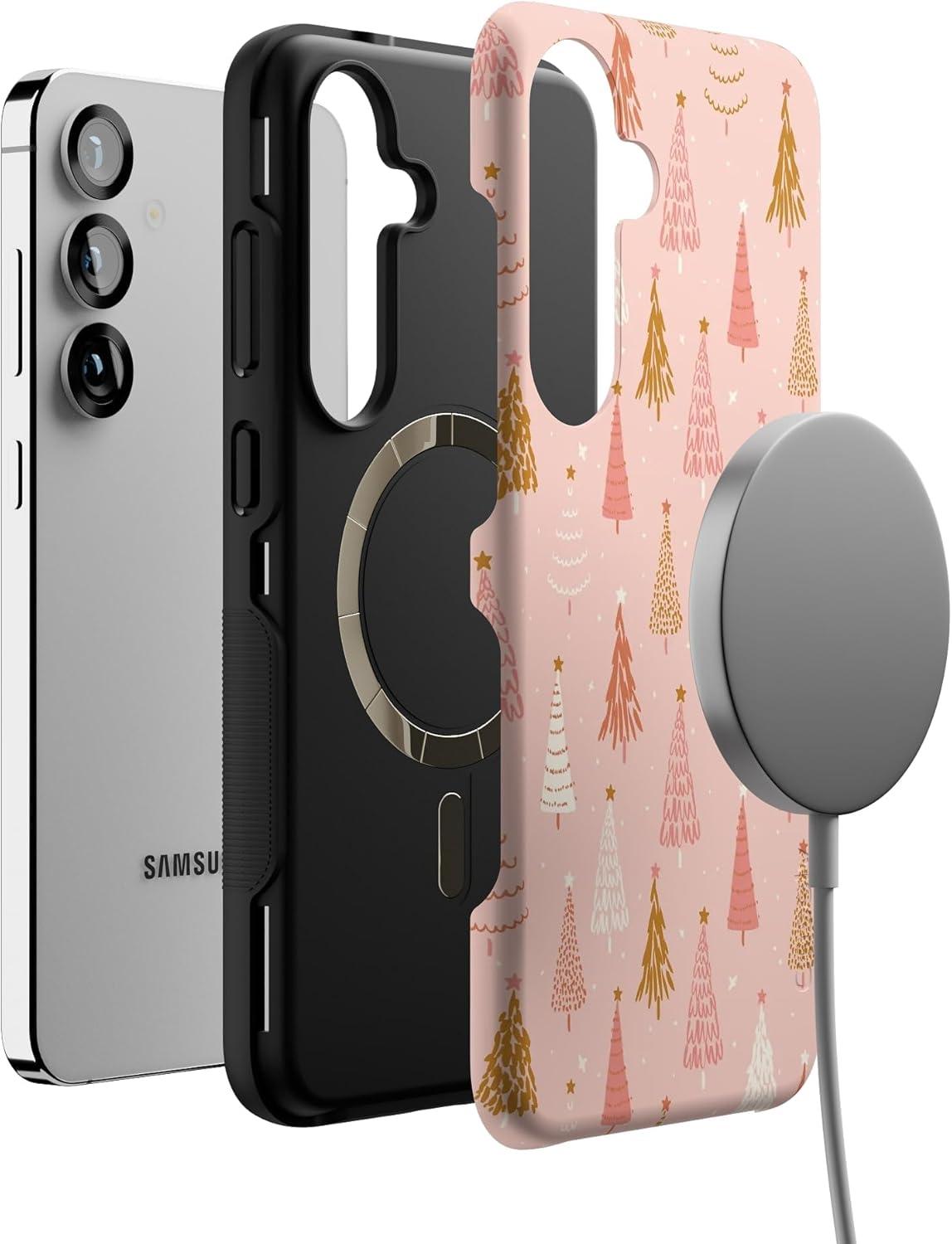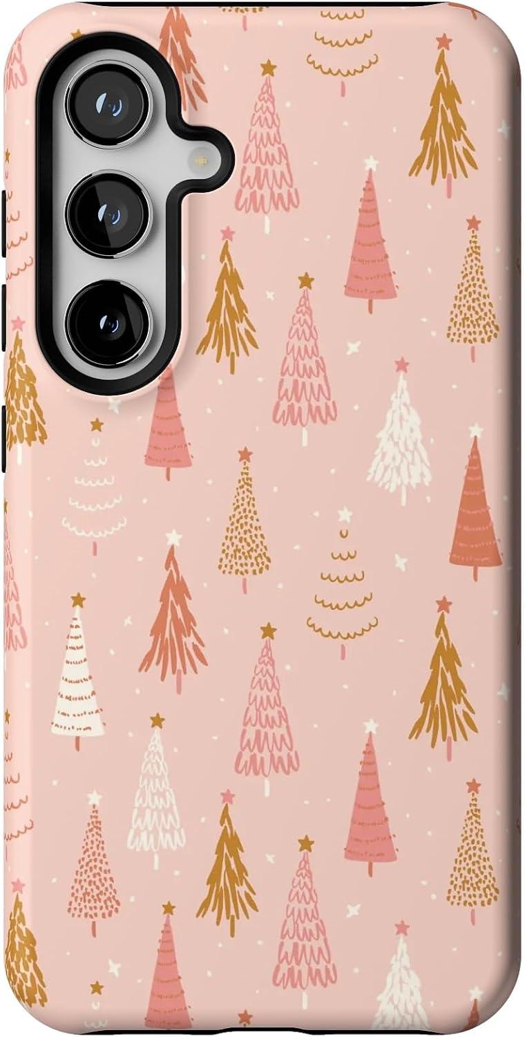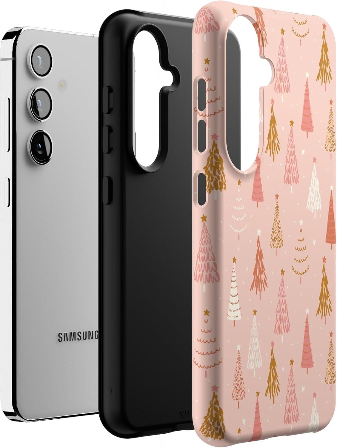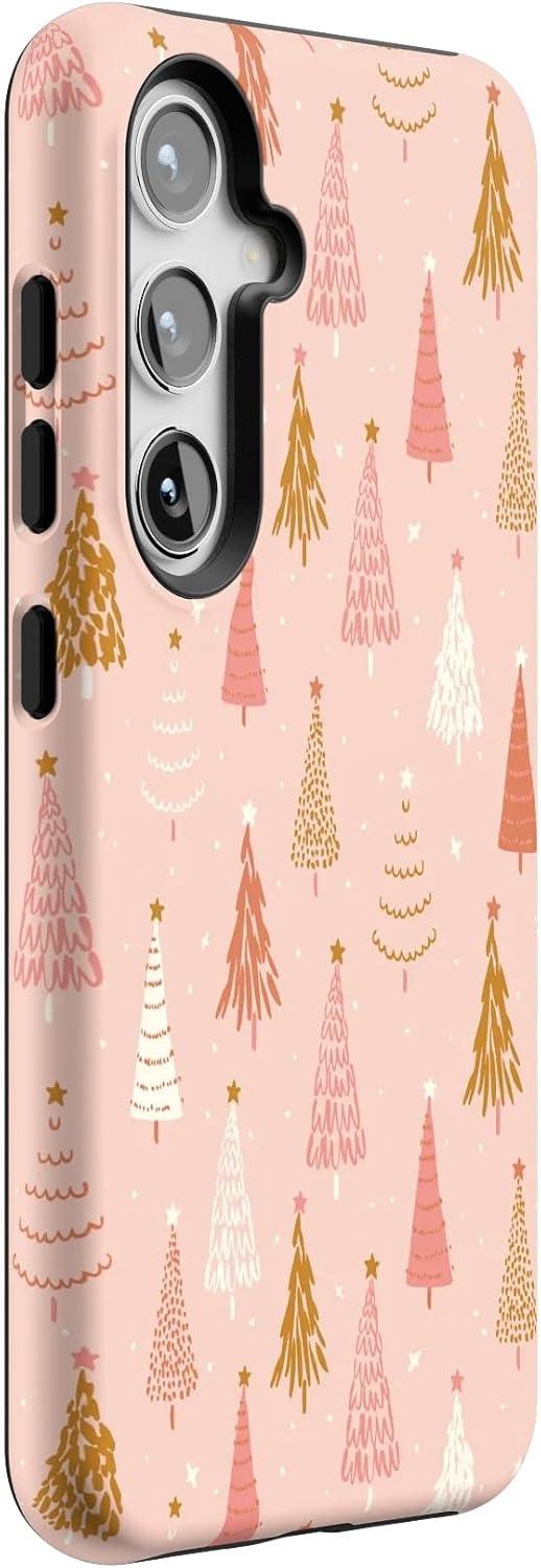 Casely Galaxy S22 Plus Case | Dashing Doxies | Dachshund Dog Case(Bubblegum Forest | Christmas Tree)