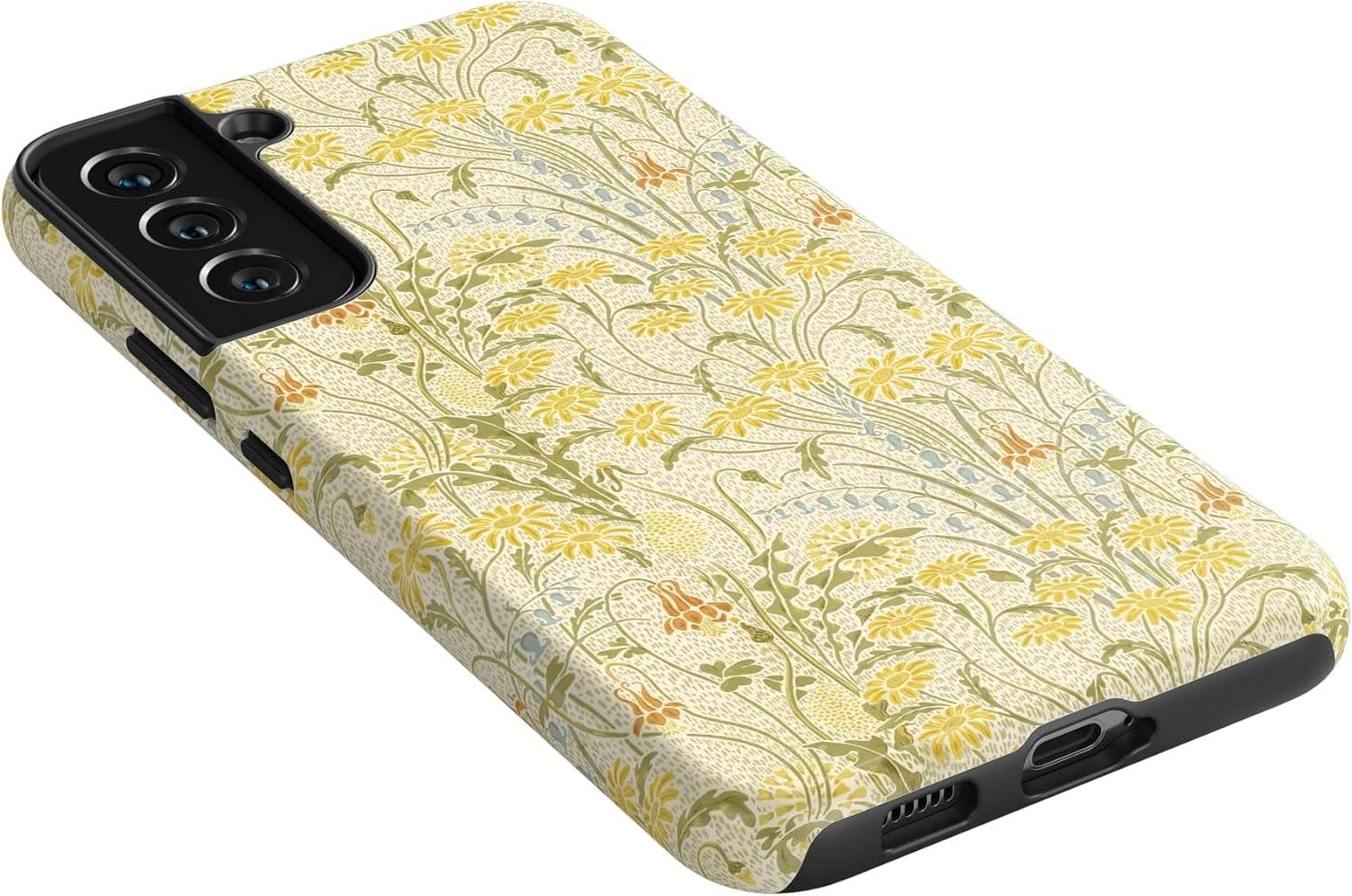 Casely Galaxy S22 Plus Case | Fit Check | Neutral Checkerboard Essential(Boho Blooms | Golden Floral)