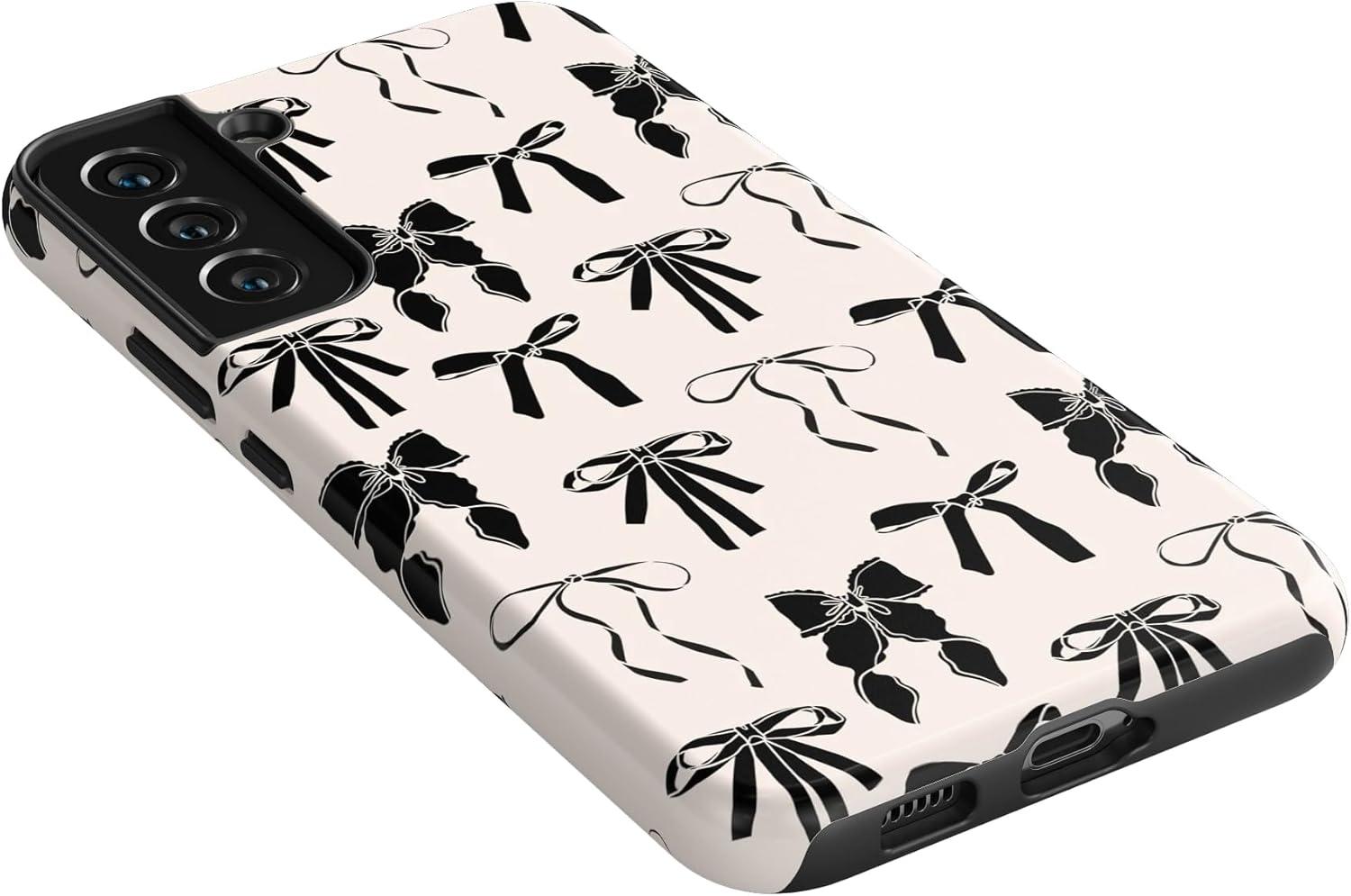 Casely Galaxy S22 Plus Case | Fit Check | Neutral Checkerboard Essential(Goth Girlie | Black Bows)