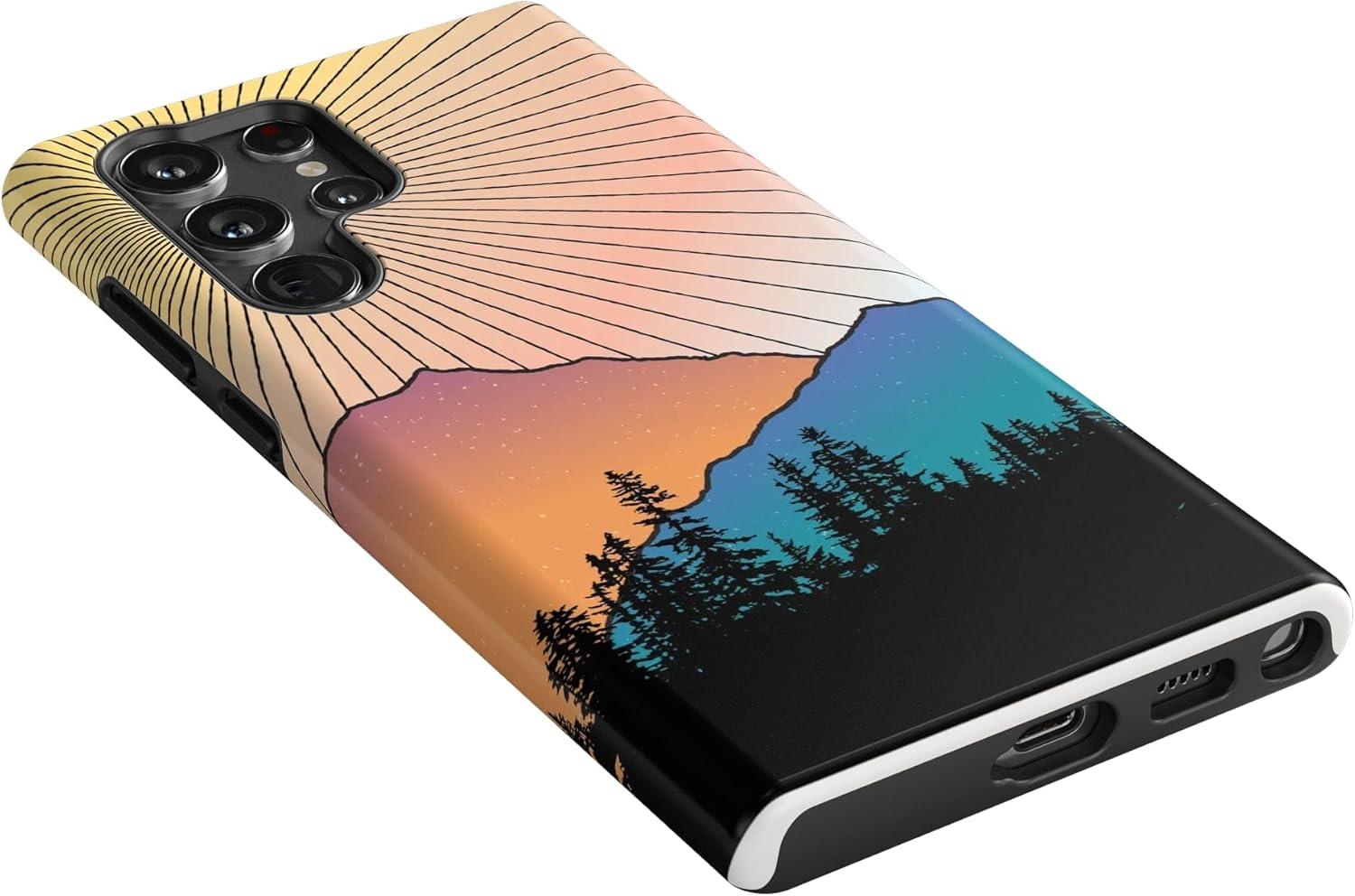Casely Galaxy S22 Ultra Case | Stars Align | Blue & White Stars | Essential Slim Dual-Layer Protective Design(Golden Hour | Mountain Sunset)