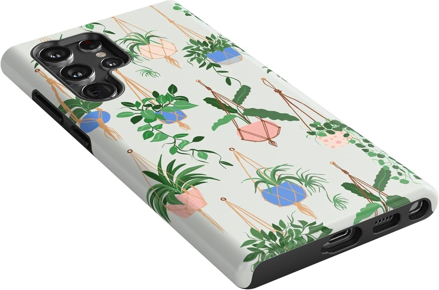 Casely Galaxy S22 Ultra Case | Stars Align | Blue & White Stars | Essential Slim Dual-Layer Protective Design(Hanging Around | Potted Plants Floral)