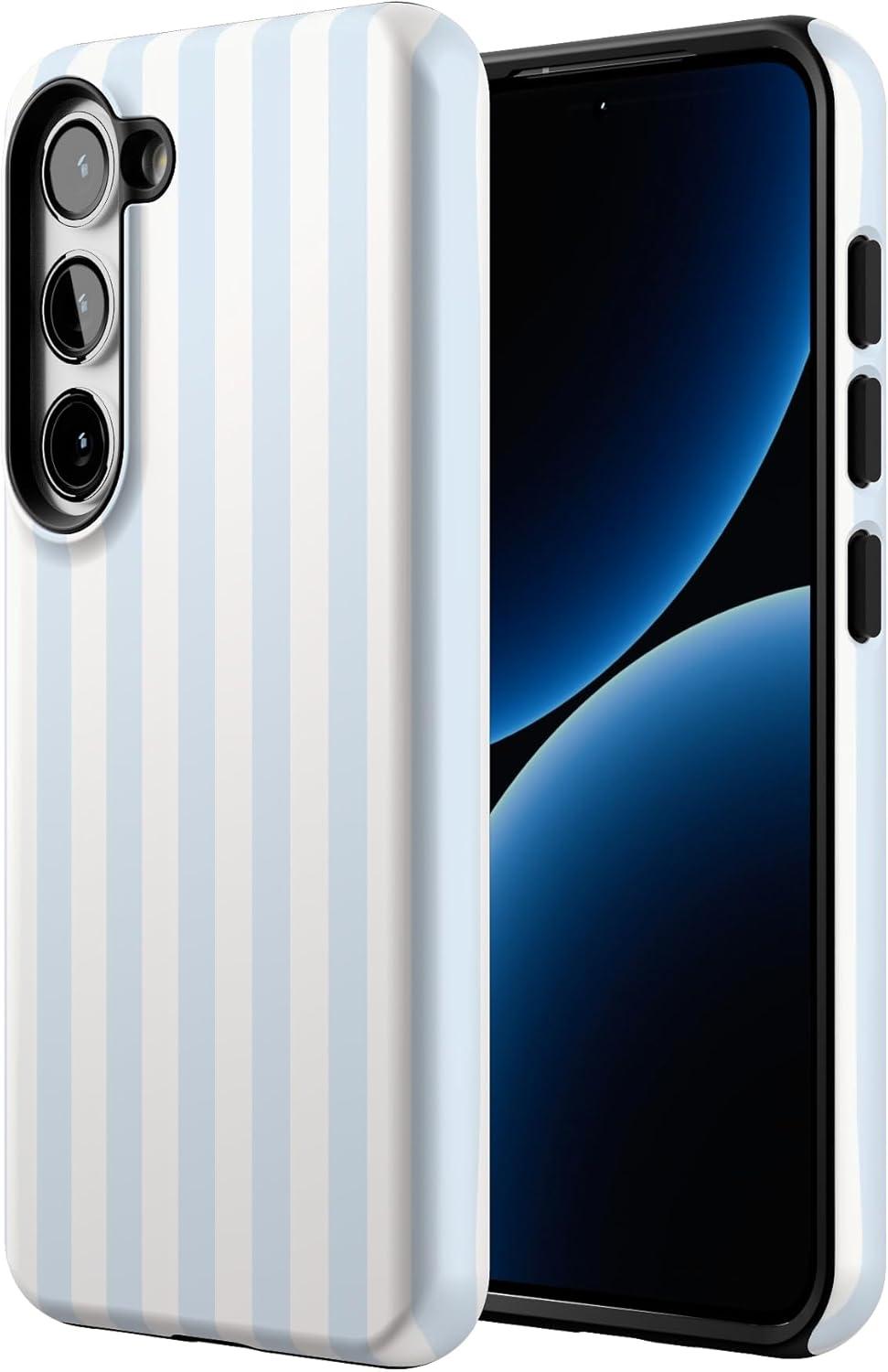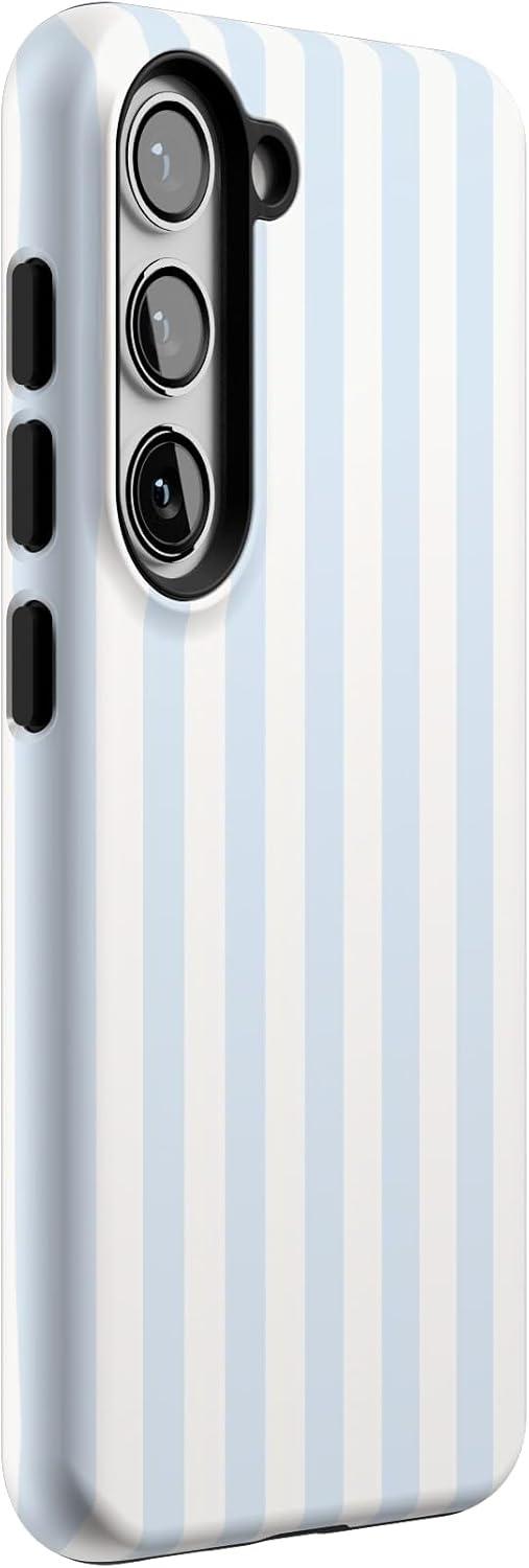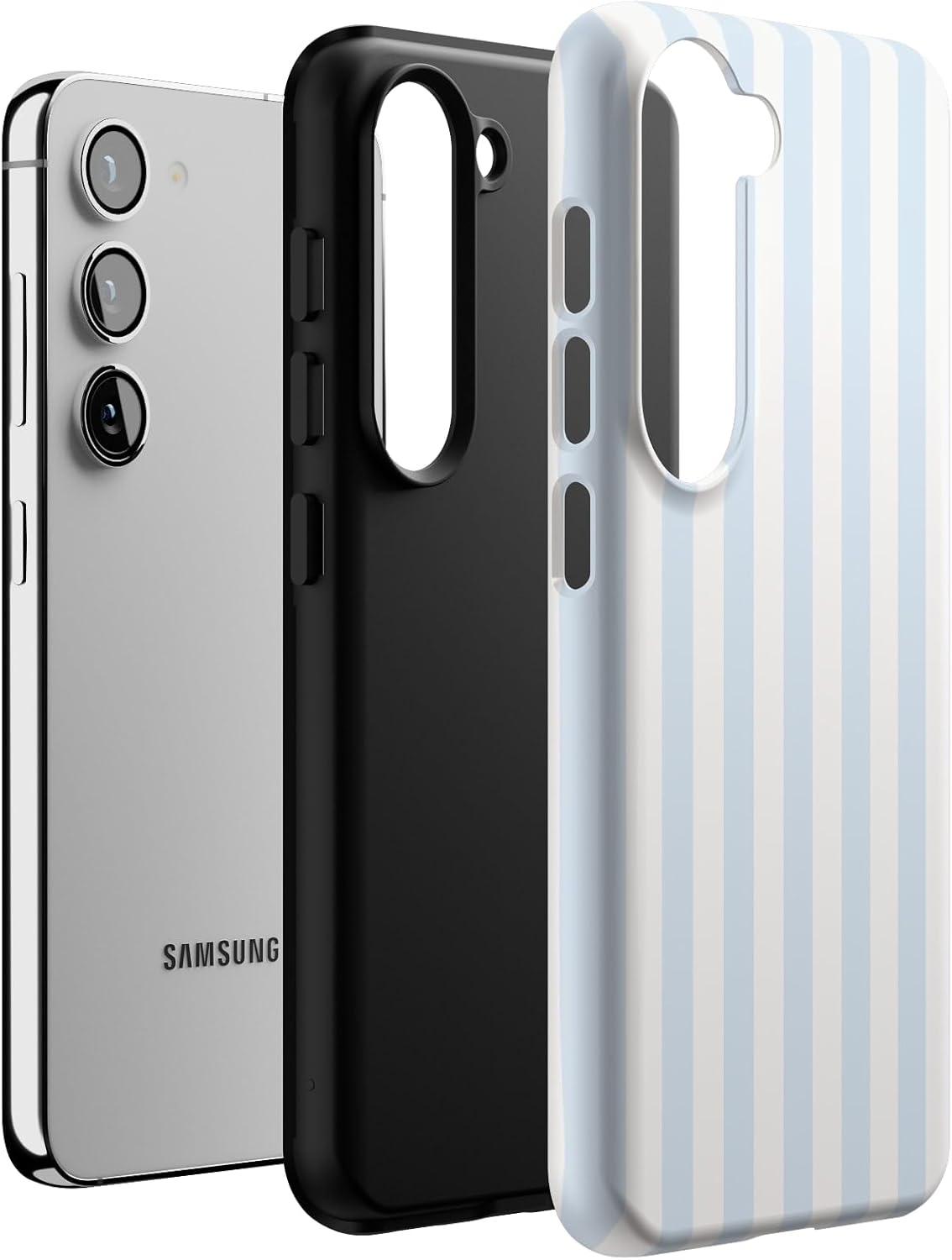 Casely Galaxy S23 Case | Poppy Meadows | Pastel Floral | Essential Slim Dual-Layer Protective Design(Blue Stripes | Sunday Best)