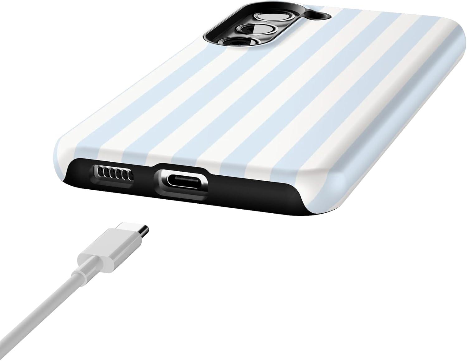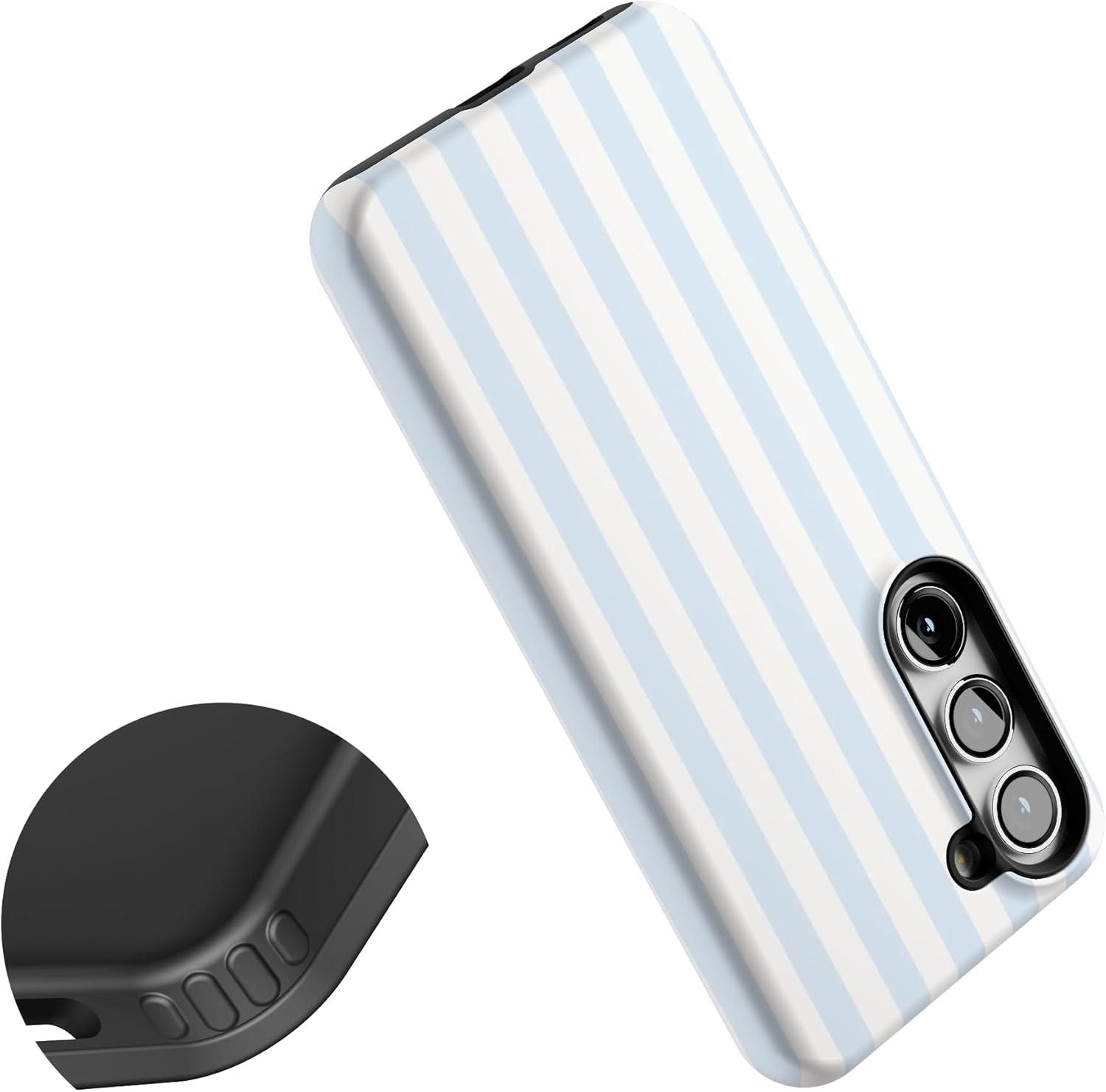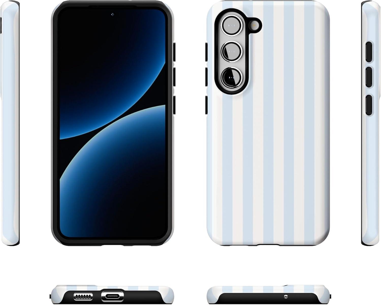 Casely Galaxy S23 Case | Poppy Meadows | Pastel Floral | Essential Slim Dual-Layer Protective Design(Blue Stripes | Sunday Best)