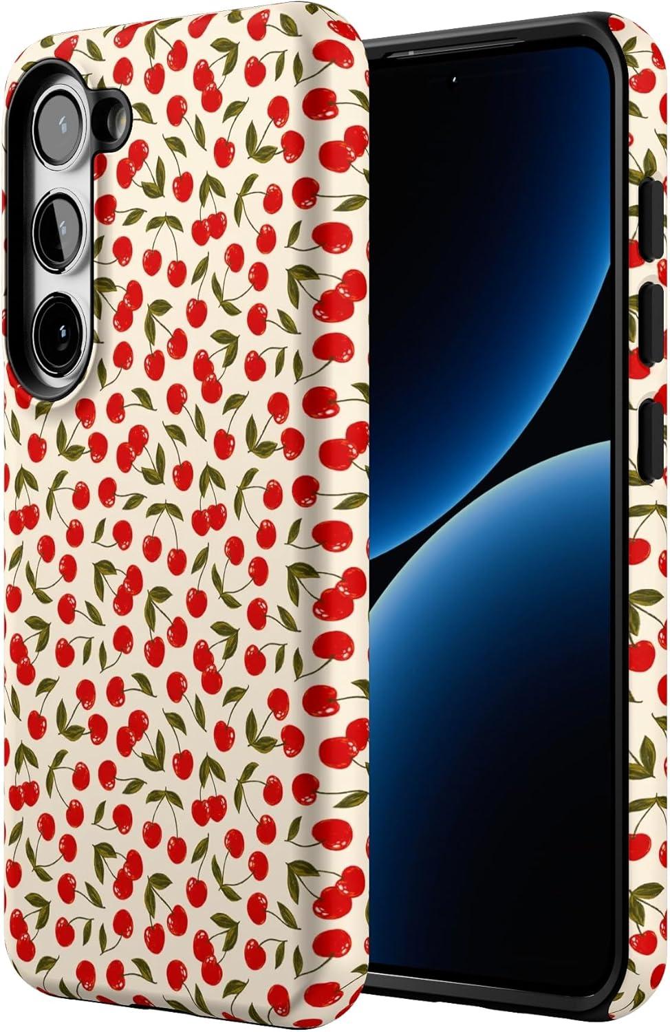 Casely Galaxy S23 Case | Poppy Meadows | Pastel Floral | Essential Slim Dual-Layer Protective Design(Cherry on Top | Red Cherries)