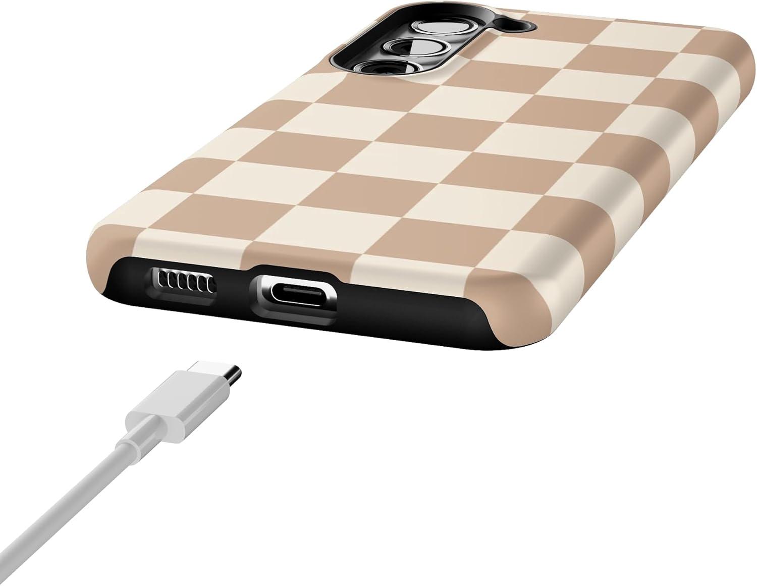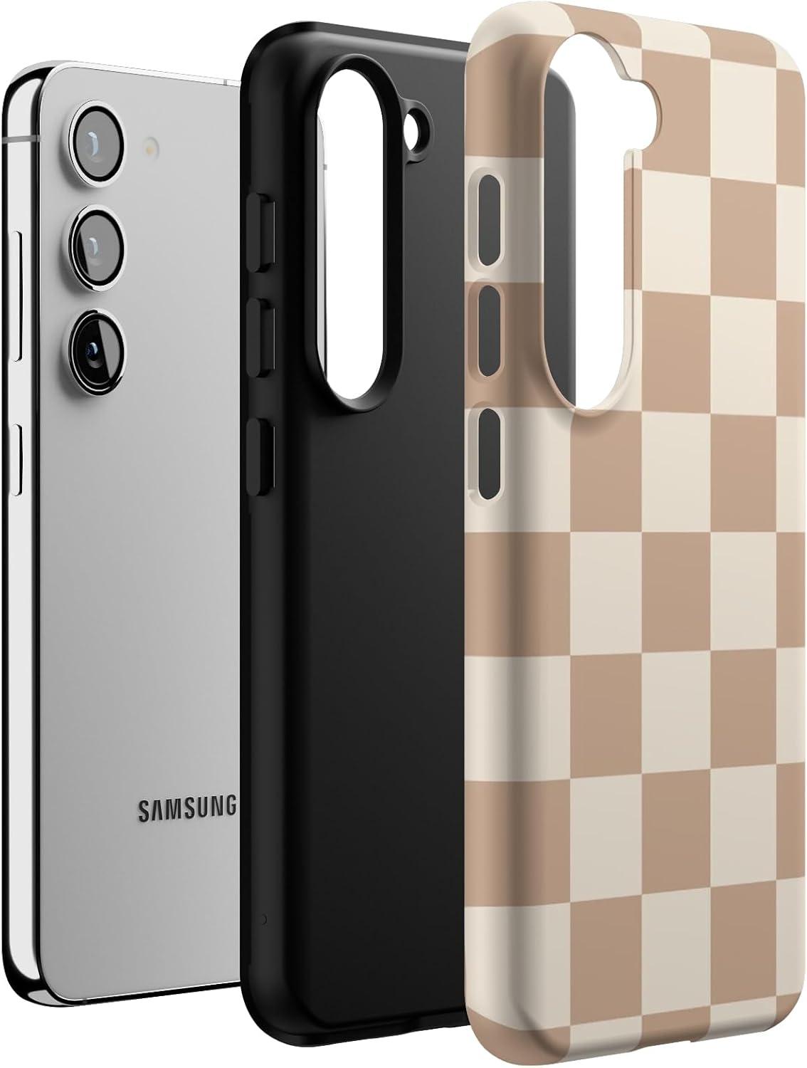 Casely Galaxy S23 Case | Poppy Meadows | Pastel Floral | Essential Slim Dual-Layer Protective Design(Fit Check | Neutral Checkerboard)