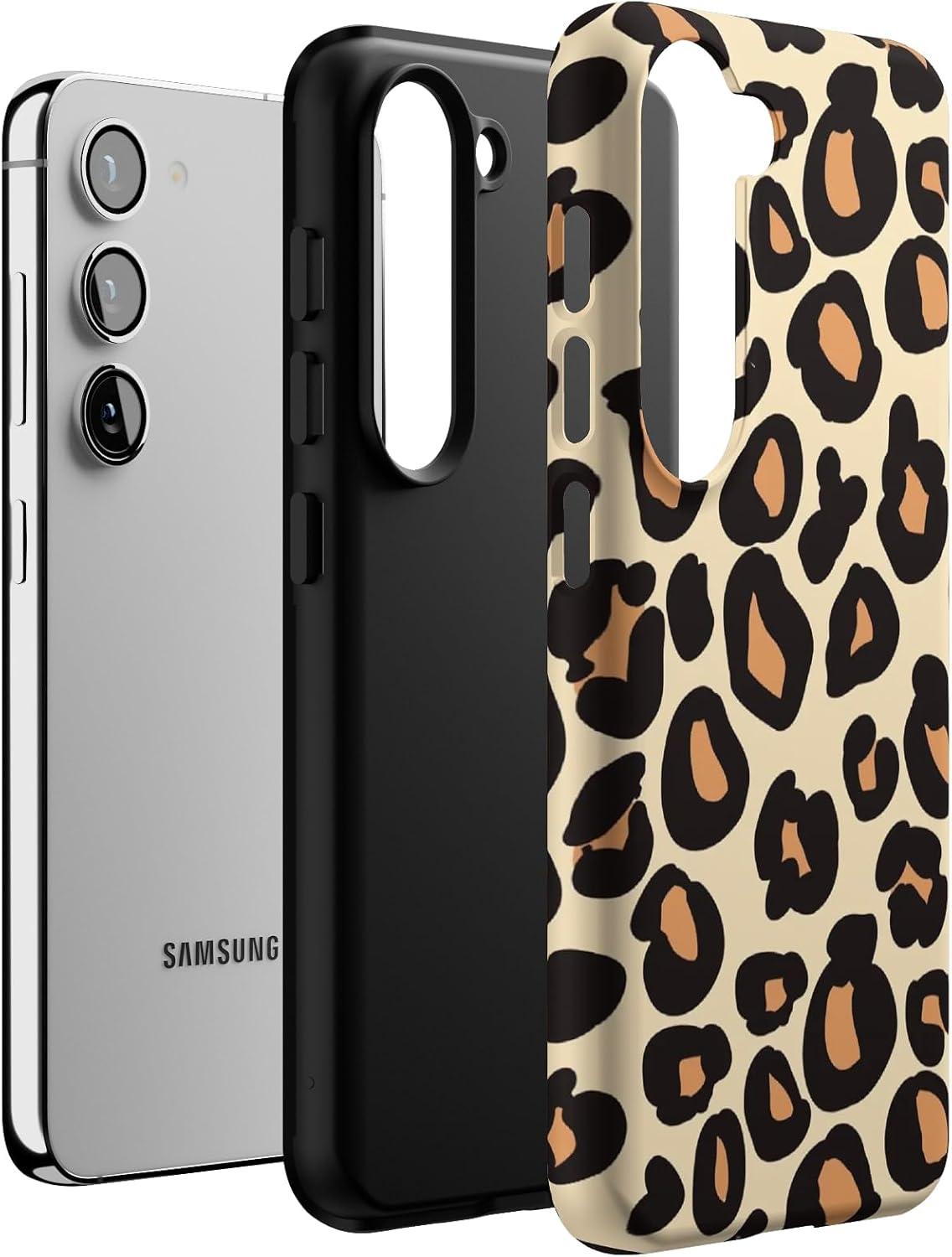 Casely Galaxy S23 Case | Poppy Meadows | Pastel Floral | Essential Slim Dual-Layer Protective Design(Into the Wild | Leopard Print)
