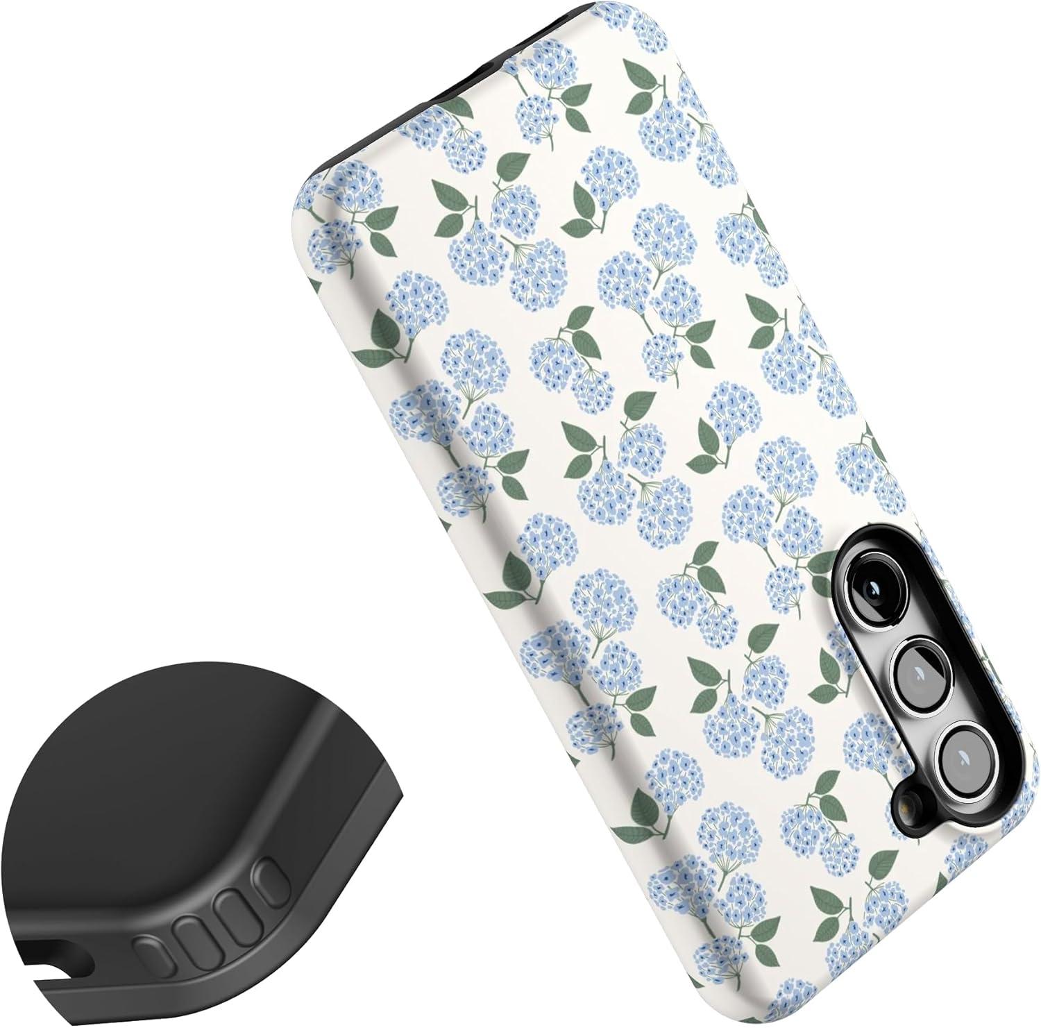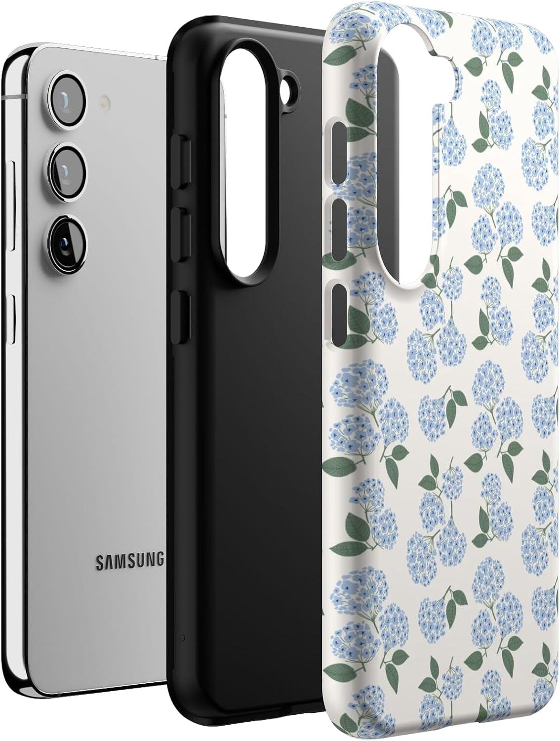 Casely Galaxy S23 Case | Poppy Meadows | Pastel Floral | Essential Slim Dual-Layer Protective Design(Nantucket Cottage | Blue Hydrangea)