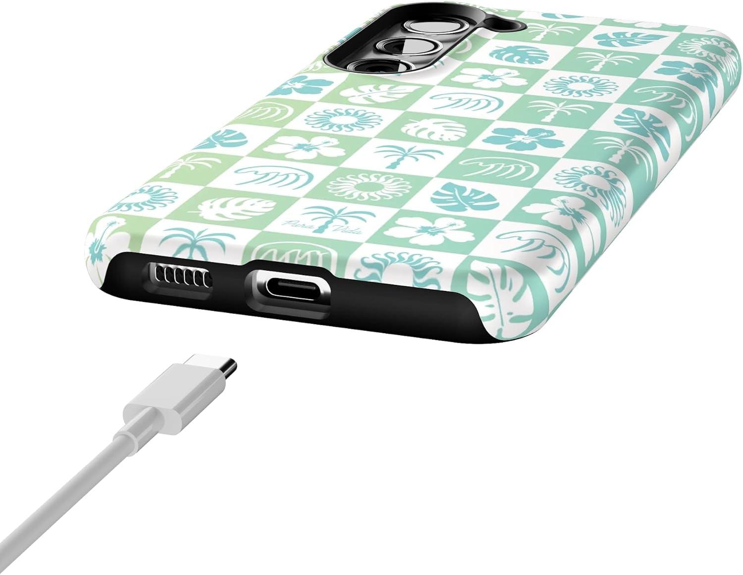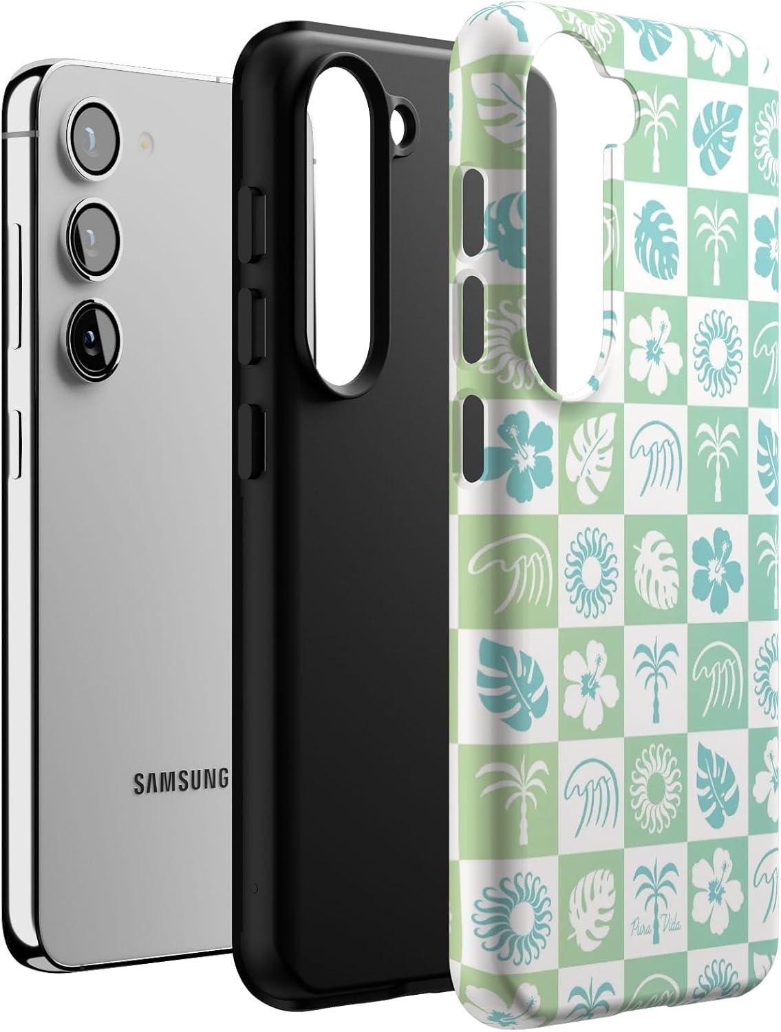 Casely Galaxy S23 Case | Poppy Meadows | Pastel Floral | Essential Slim Dual-Layer Protective Design(Pura Vida | Coastal Checkers)