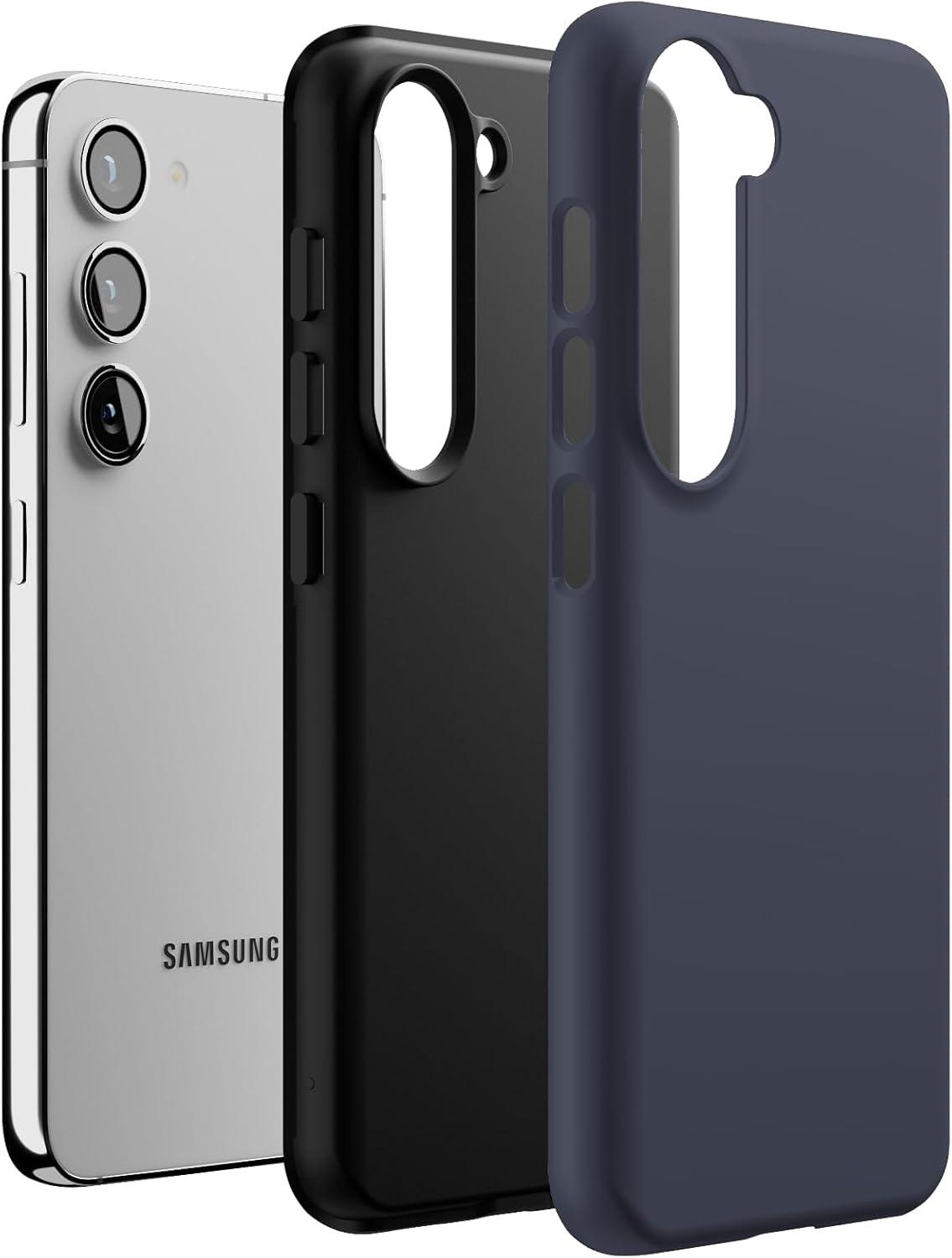 Casely Galaxy S23 Case | Poppy Meadows | Pastel Floral | Essential Slim Dual-Layer Protective Design(The Boyfriend Collection | Slate Blue)