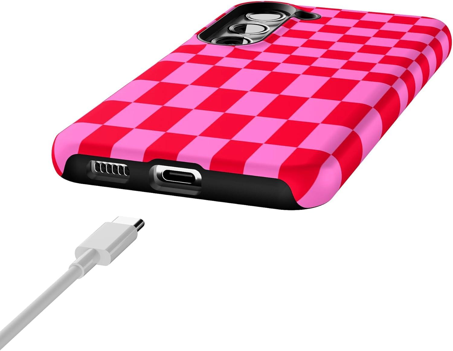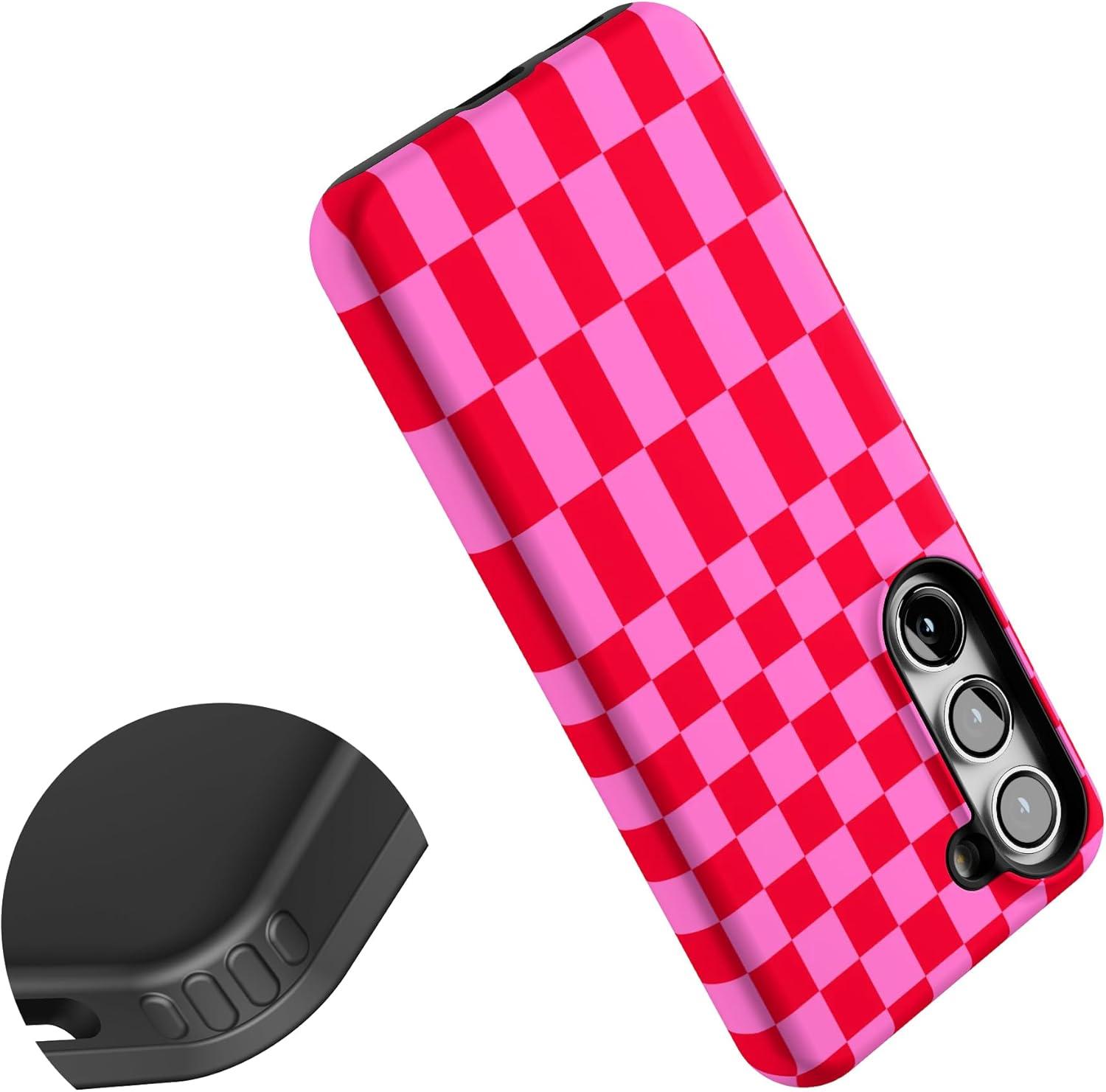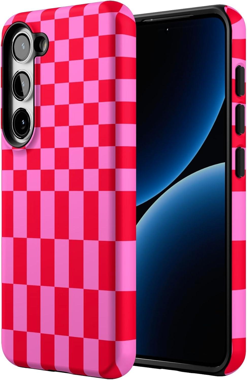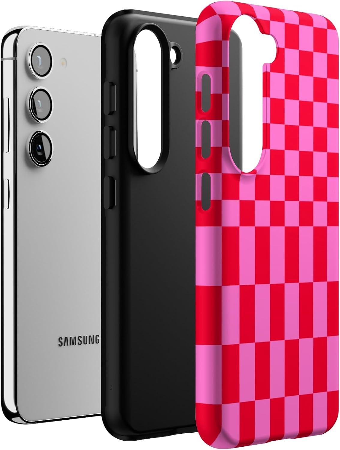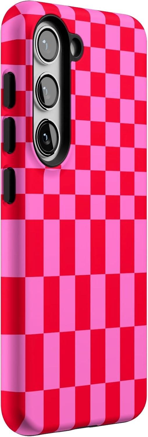 Casely Galaxy S23 Case | Poppy Meadows | Pastel Floral | Essential Slim Dual-Layer Protective Design(Vibe Check | Pink Checkerboard)