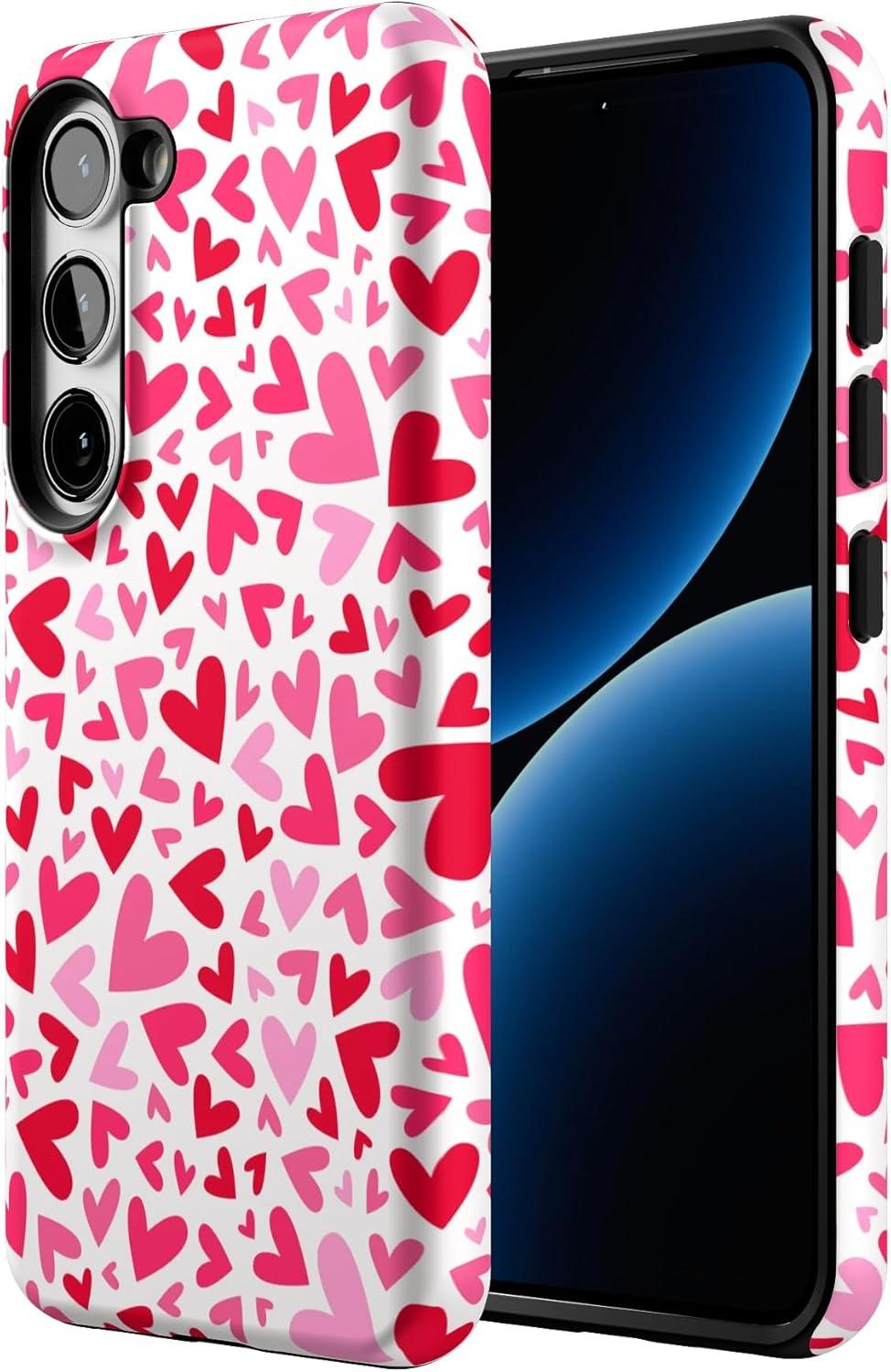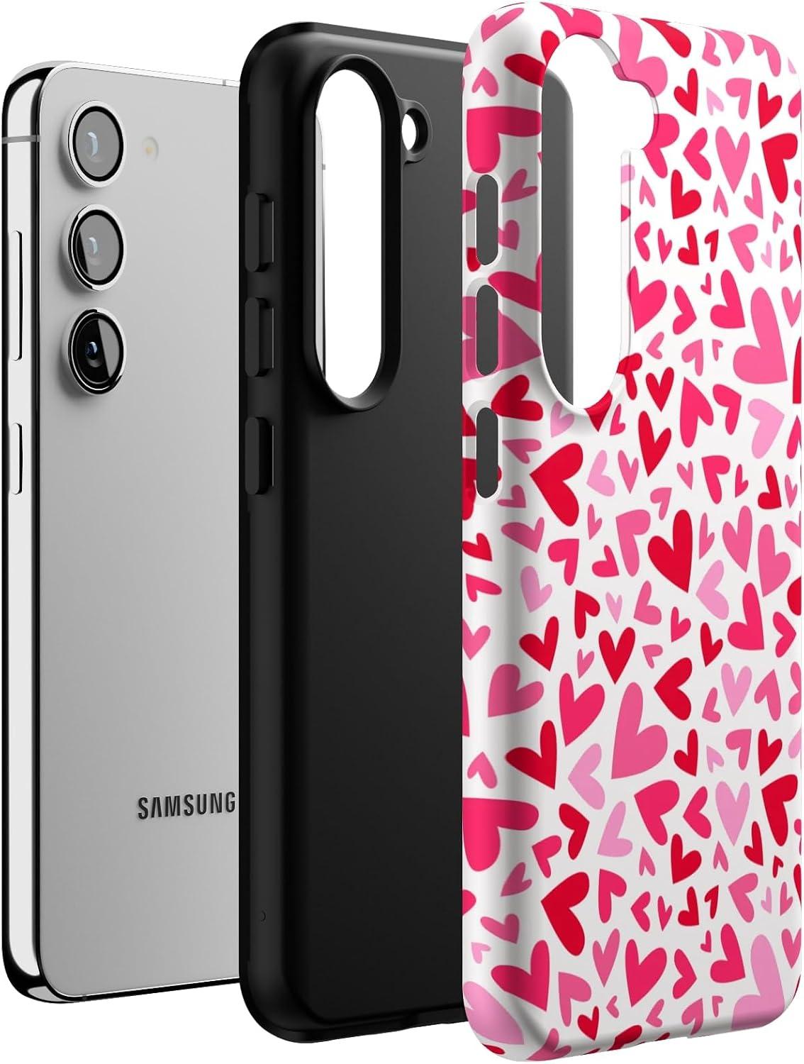 Casely Galaxy S23 Case | Poppy Meadows | Pastel Floral | Essential Slim Dual-Layer Protective Design(XOXO | Pink Candy Hearts)