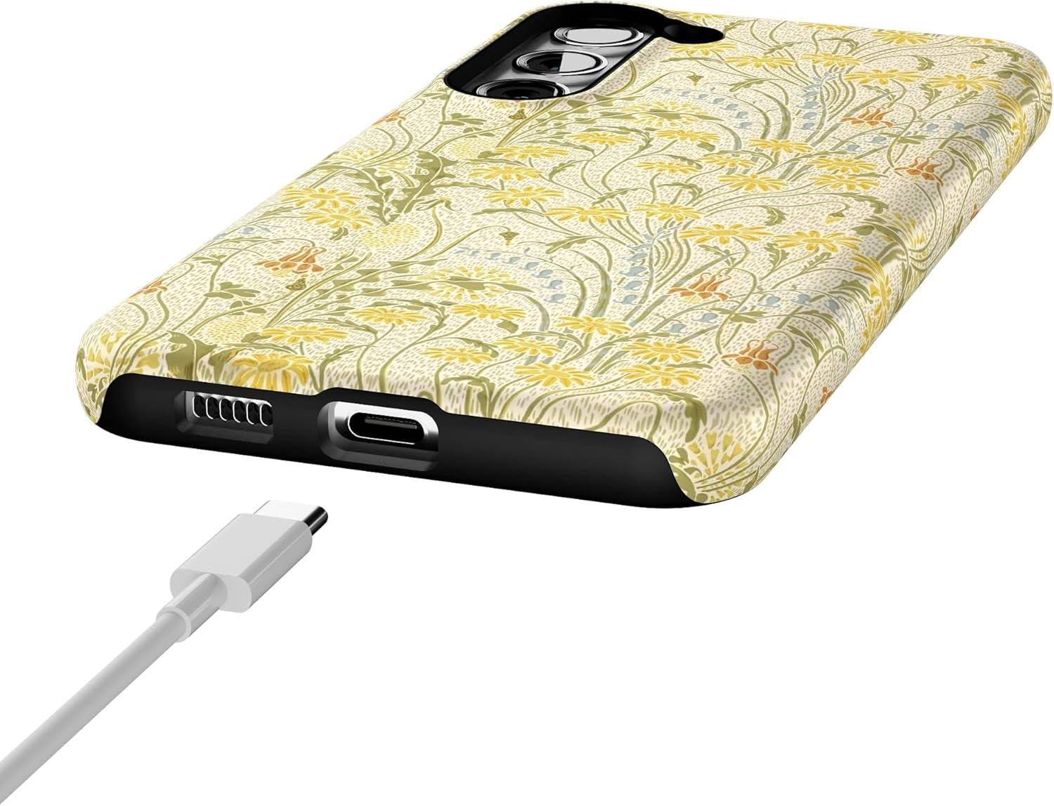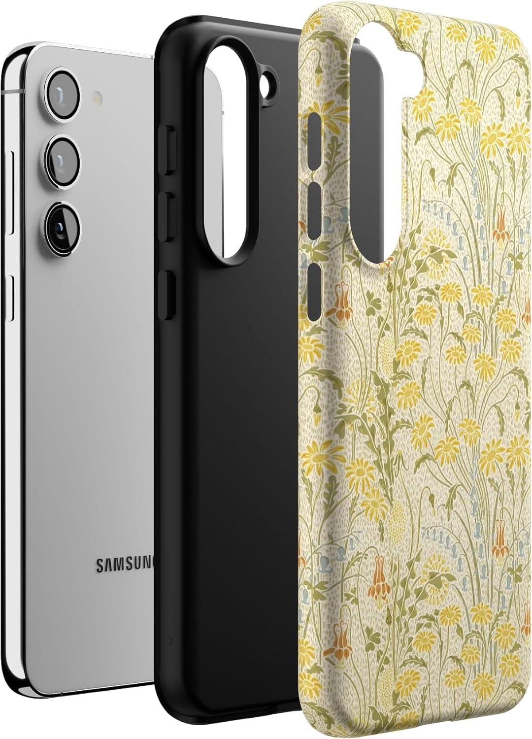 Casely Galaxy S23 Plus Case | Cherry on Top | Red Cherries | Essential Slim Dual-Layer Protective Design(Boho Blooms | Golden Floral)