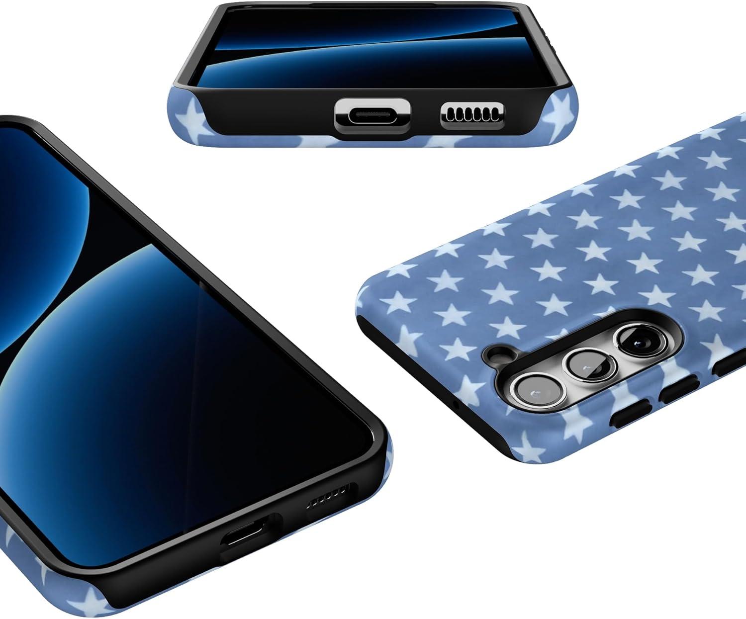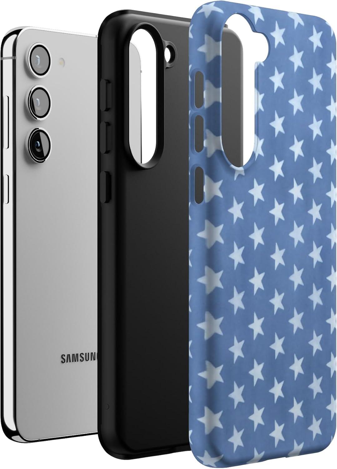 Casely Galaxy S23 Plus Case | Cherry on Top | Red Cherries | Essential Slim Dual-Layer Protective Design(Coastal Blues | Denim Stars)