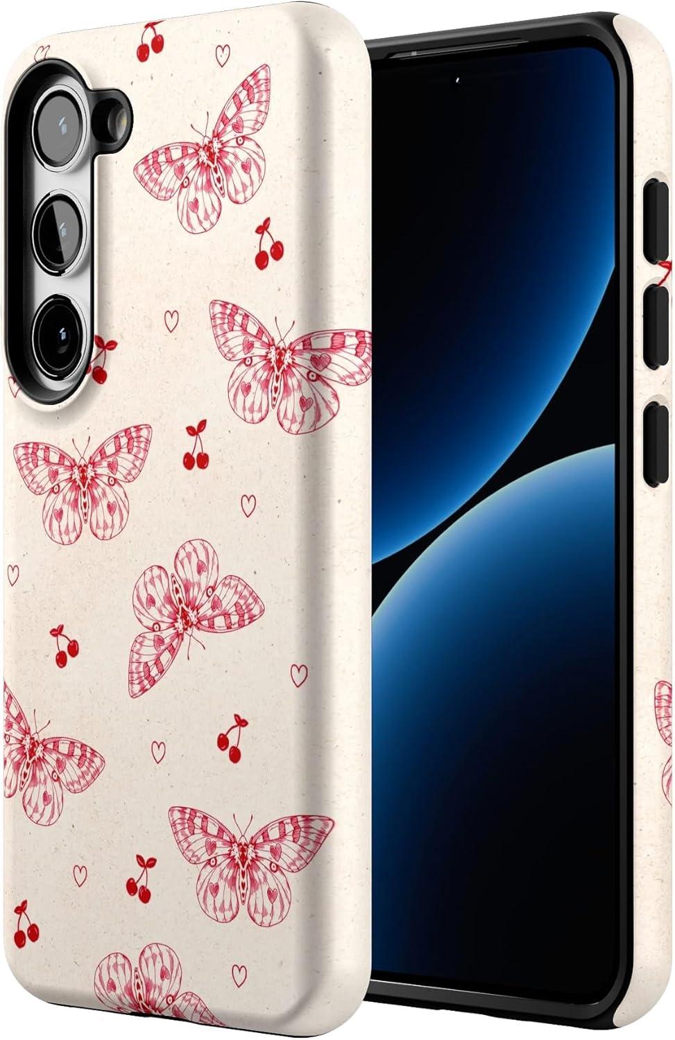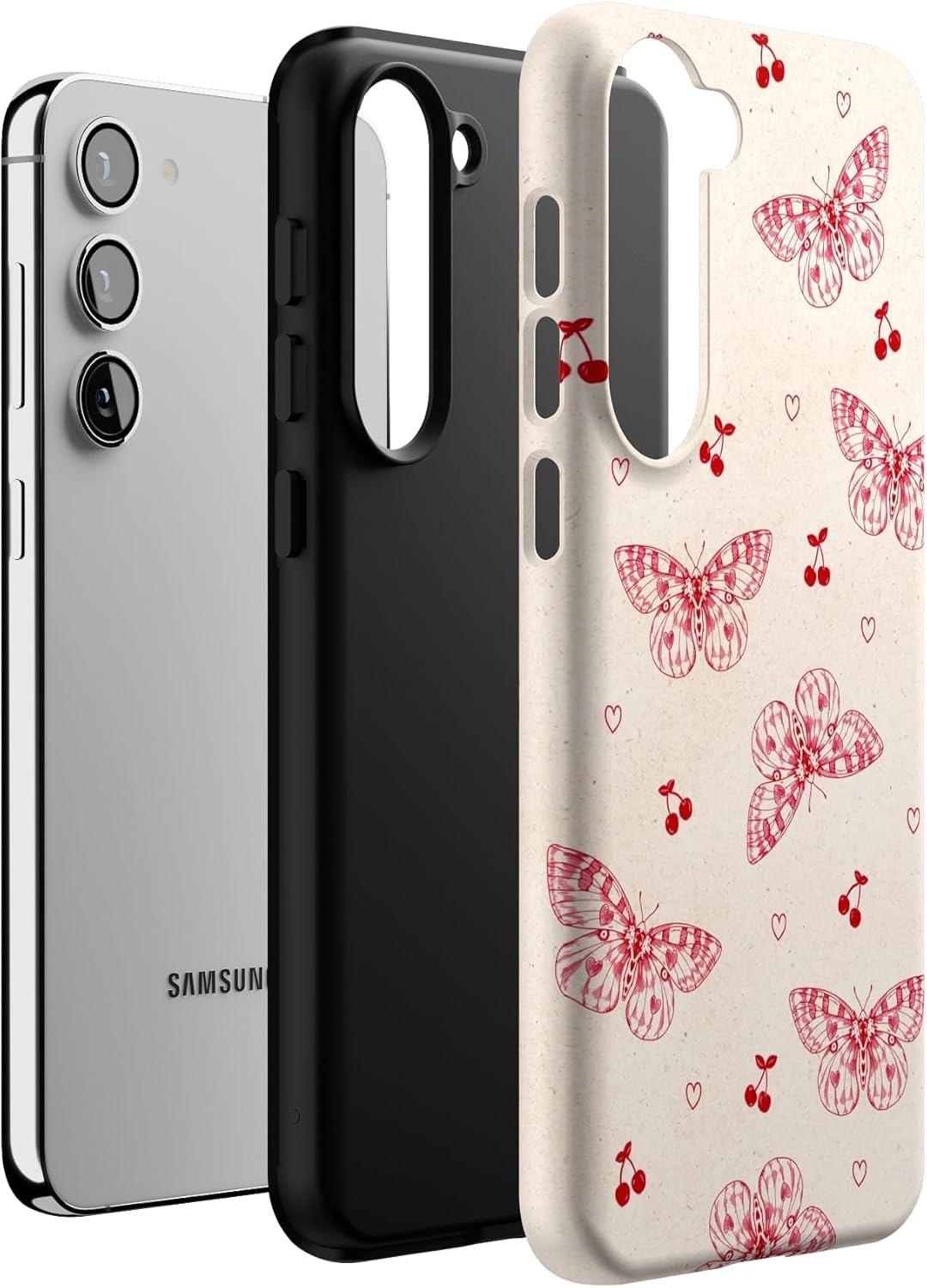 Casely Galaxy S23 Plus Case | Cherry on Top | Red Cherries | Essential Slim Dual-Layer Protective Design(Heart Flutters | Butterfly)