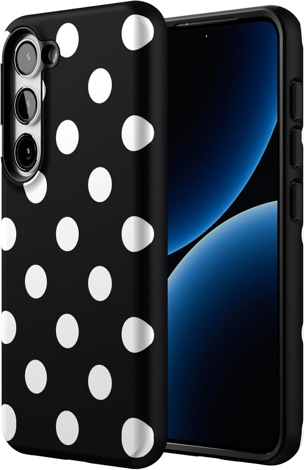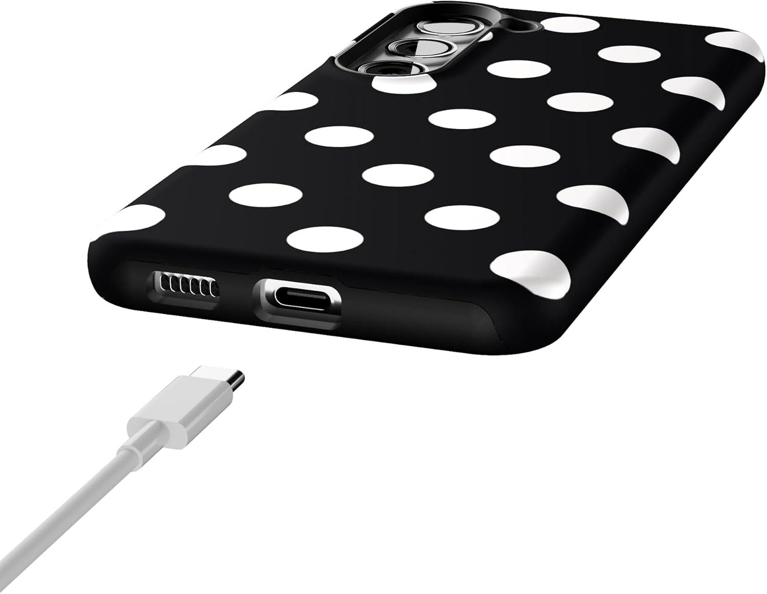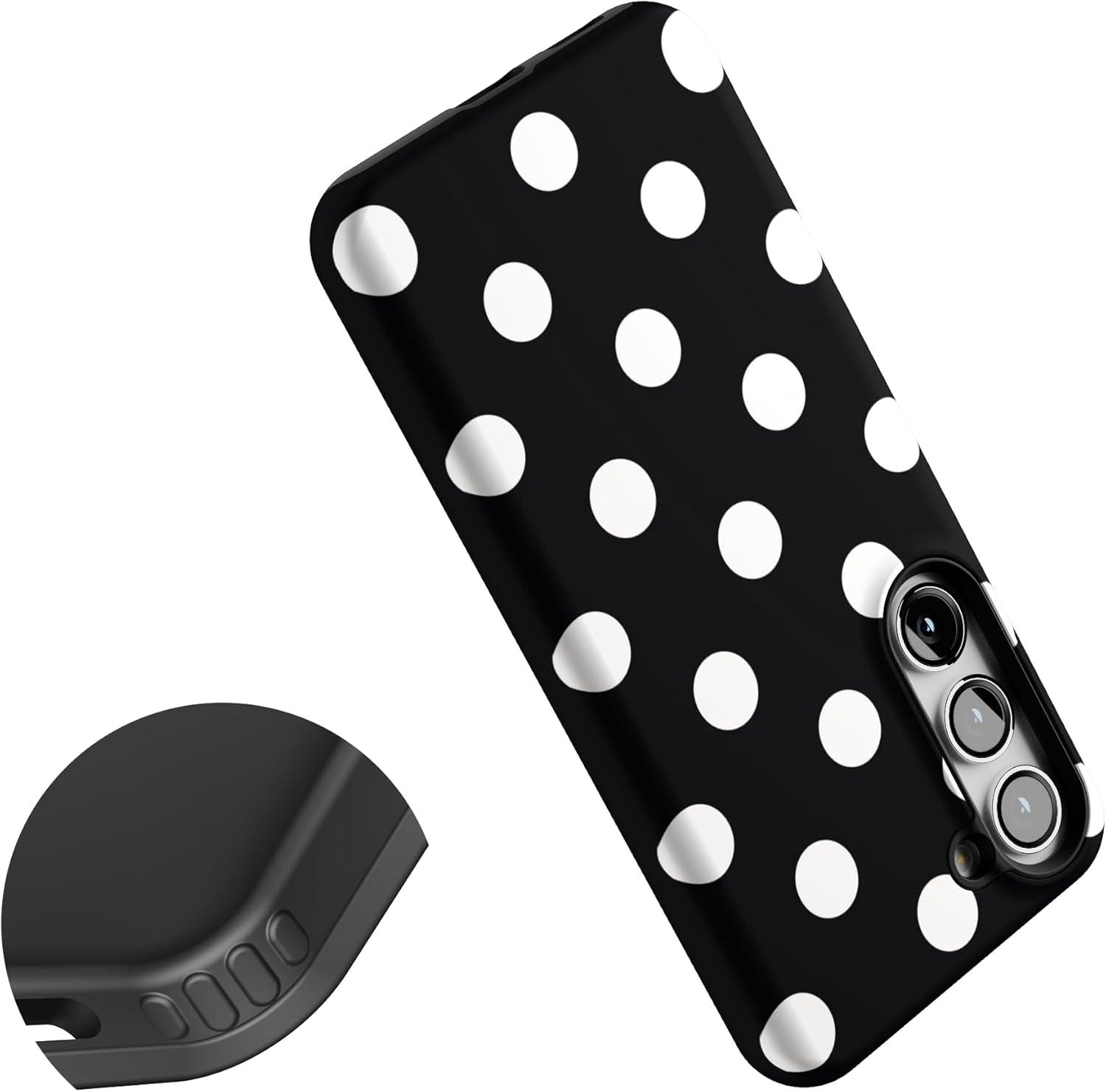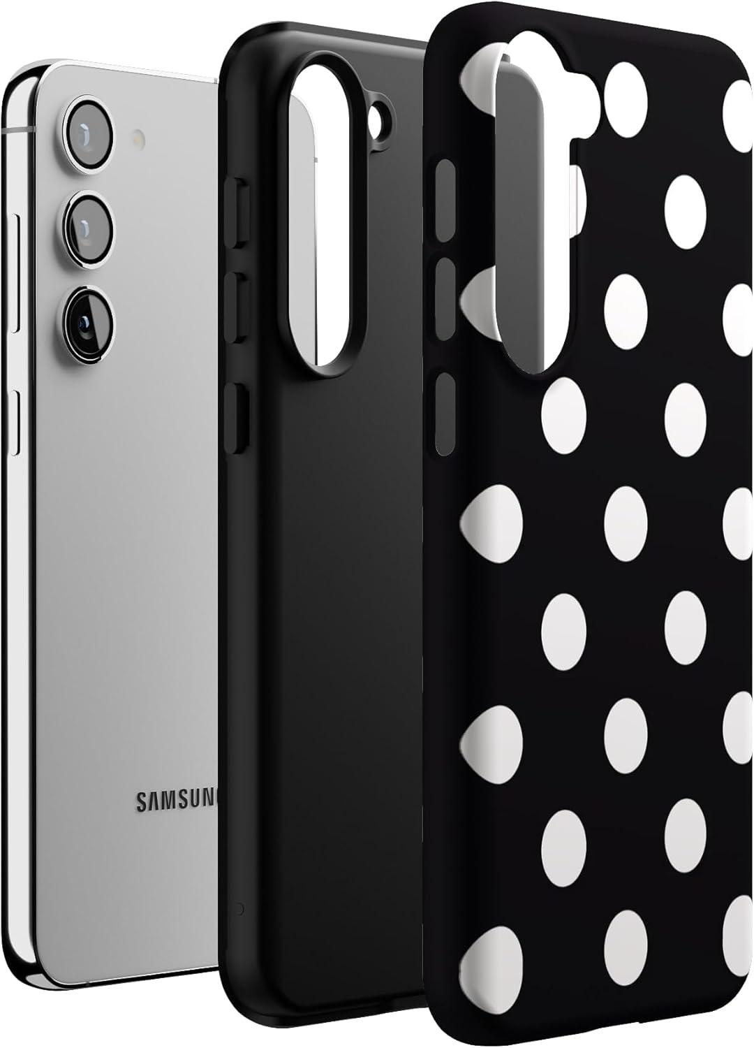Casely Galaxy S23 Plus Case | Cherry on Top | Red Cherries | Essential Slim Dual-Layer Protective Design(High Contrast | Black Polka Dot)