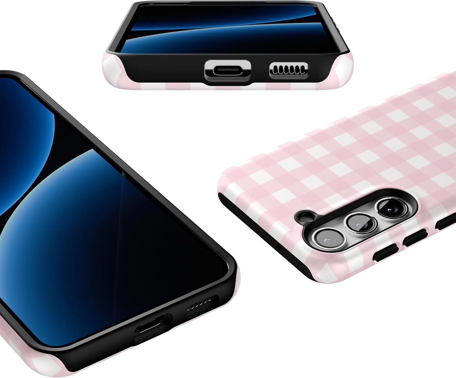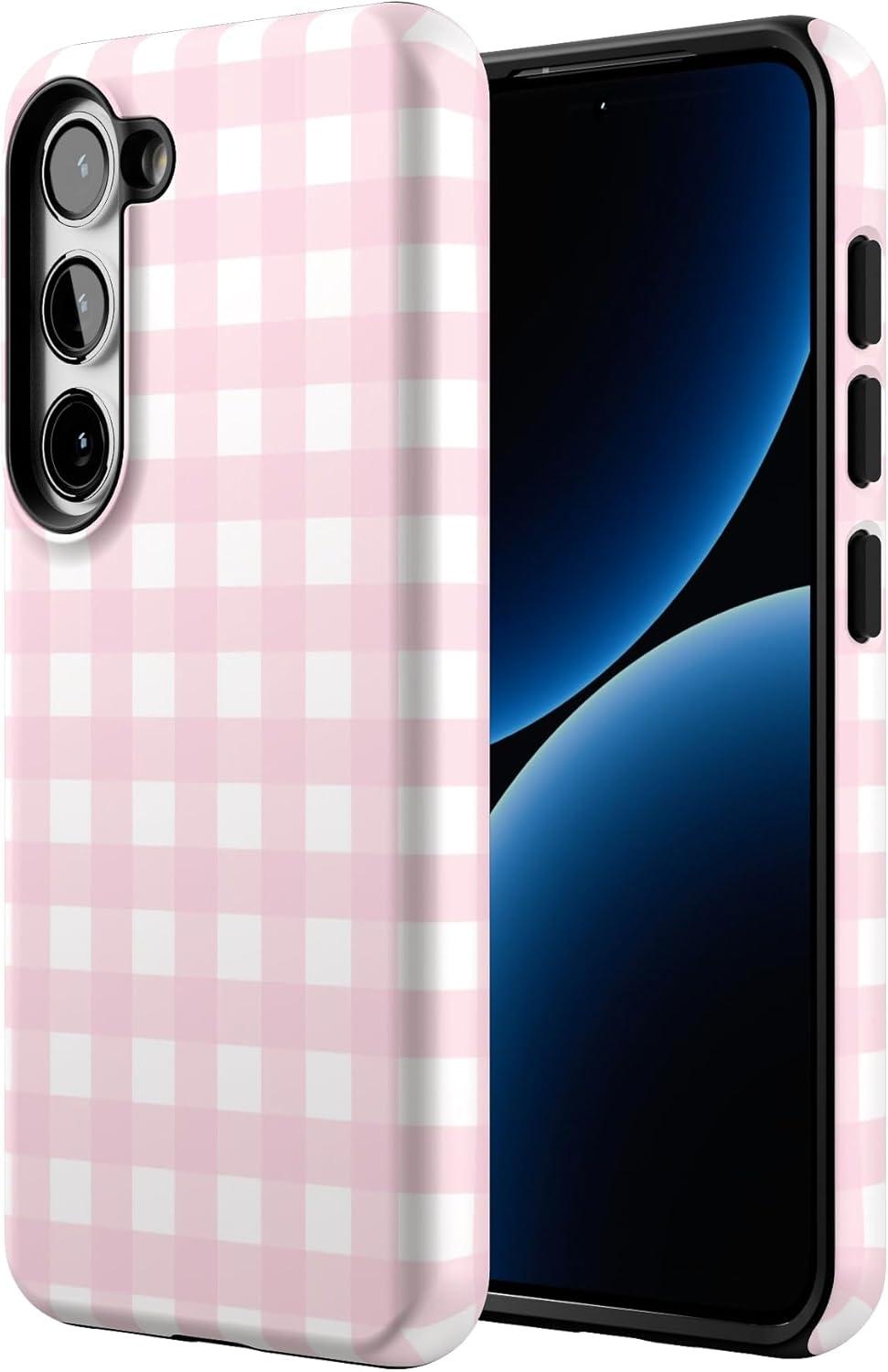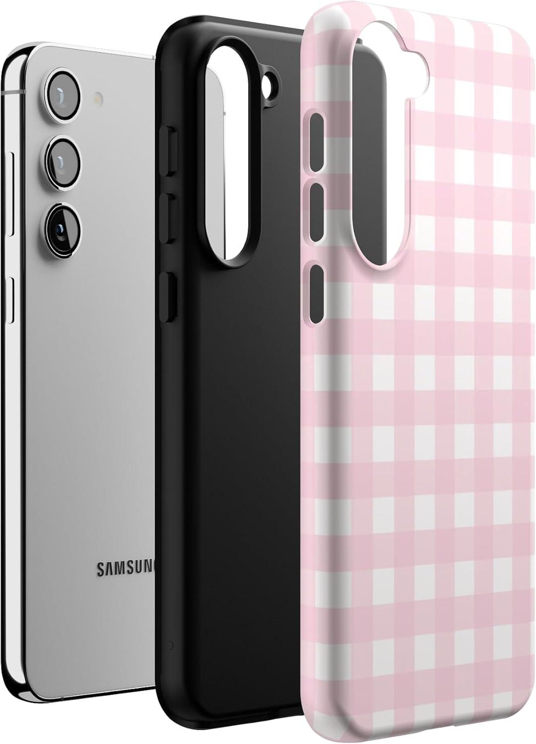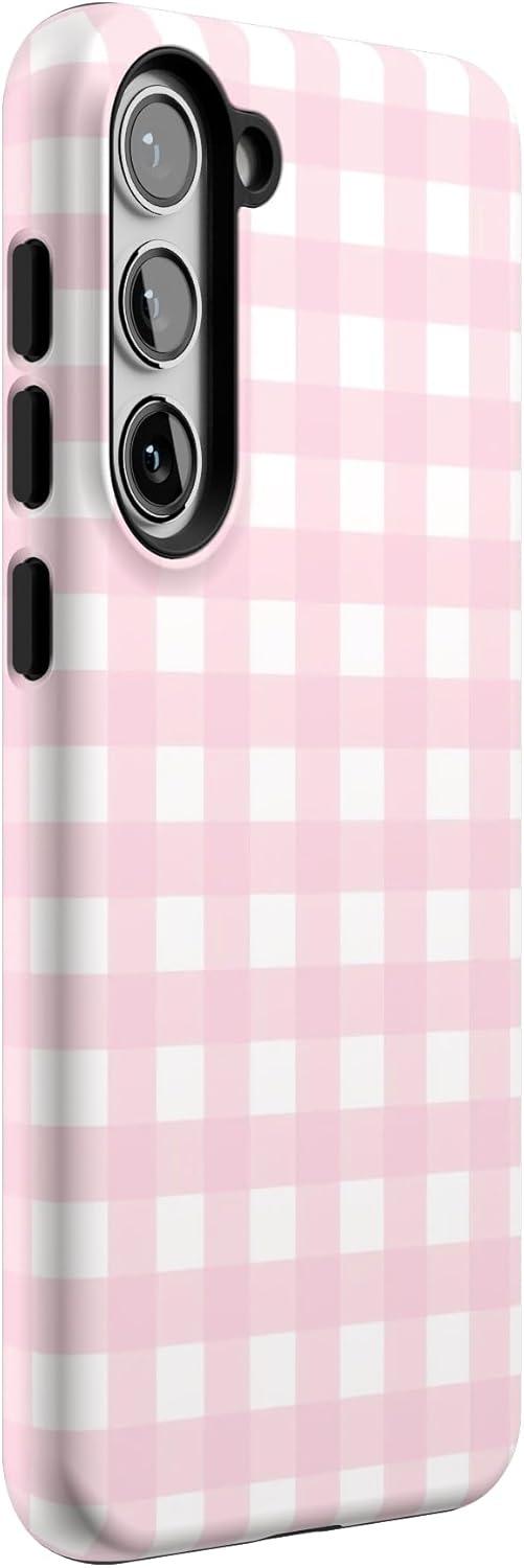 Casely Galaxy S23 Plus Case | Cherry on Top | Red Cherries | Essential Slim Dual-Layer Protective Design(Pink Plaid | Sunday Best)