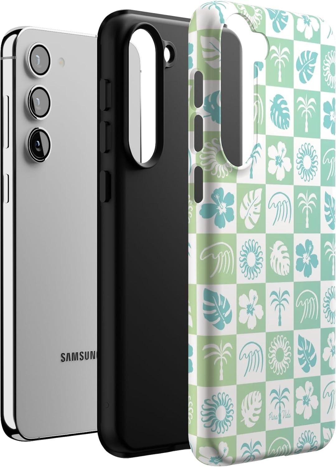 Casely Galaxy S23 Plus Case | Cherry on Top | Red Cherries | Essential Slim Dual-Layer Protective Design(Pura Vida | Coastal Checkers)