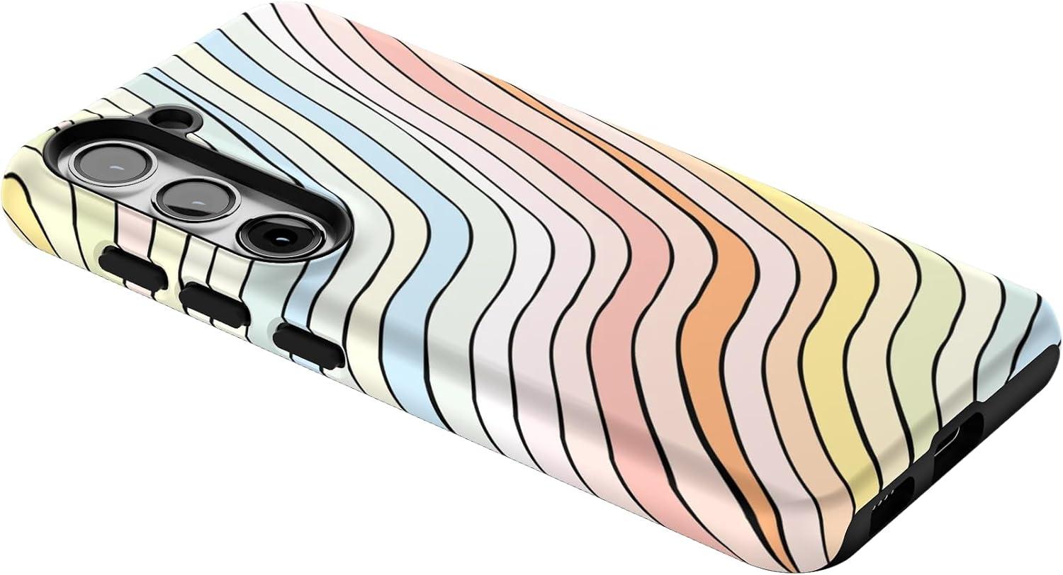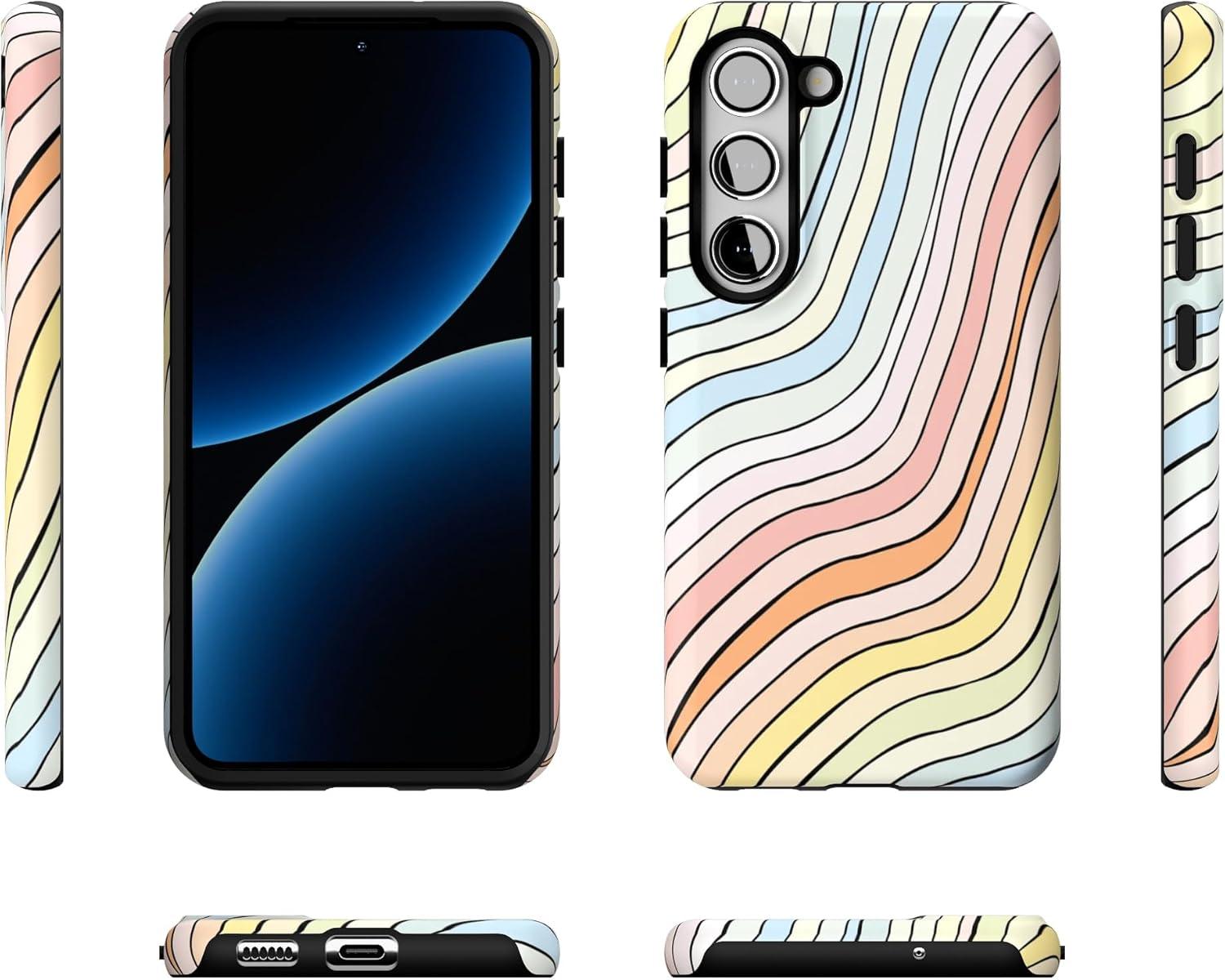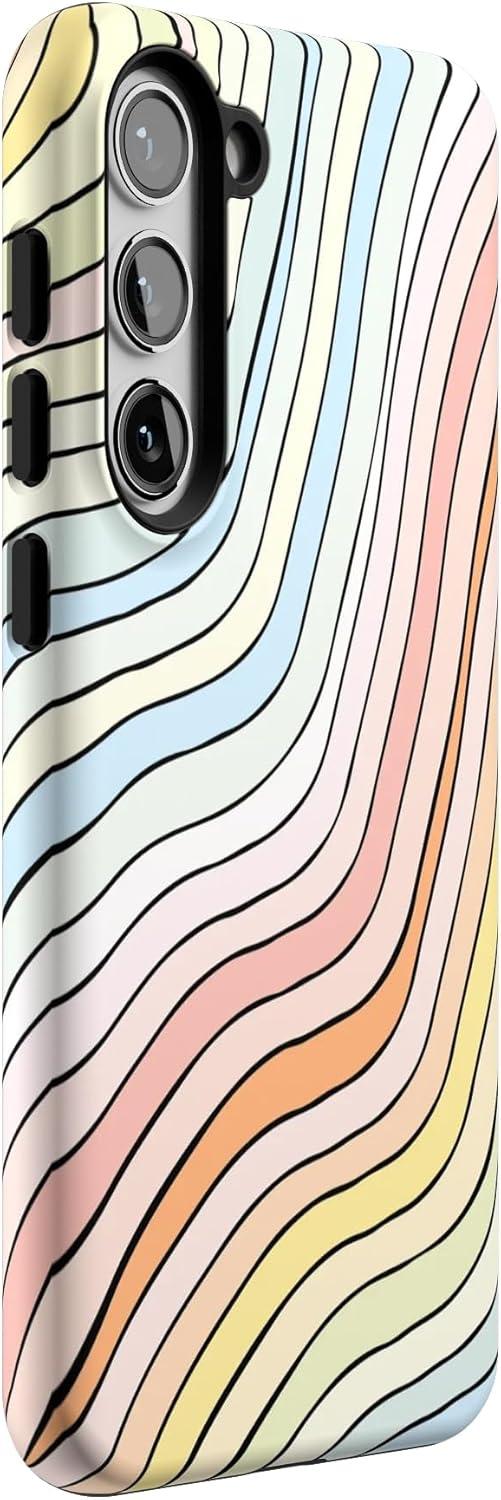 Casely Galaxy S23 Plus Case | Cherry on Top | Red Cherries | Essential Slim Dual-Layer Protective Design(Ride The Wave | Pastel Rainbow Lined)