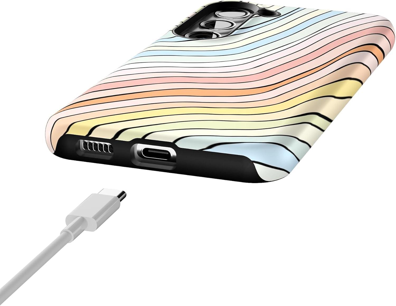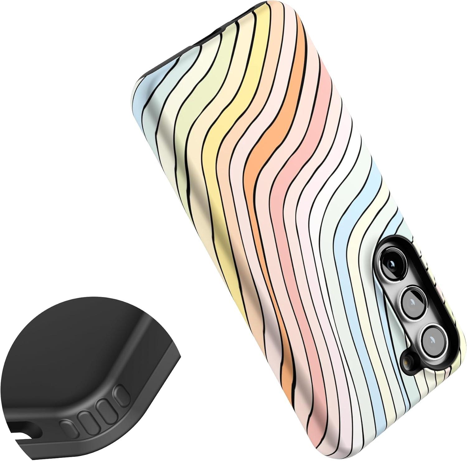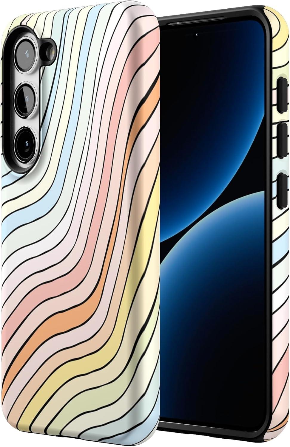 Casely Galaxy S23 Plus Case | Cherry on Top | Red Cherries | Essential Slim Dual-Layer Protective Design(Ride The Wave | Pastel Rainbow Lined)