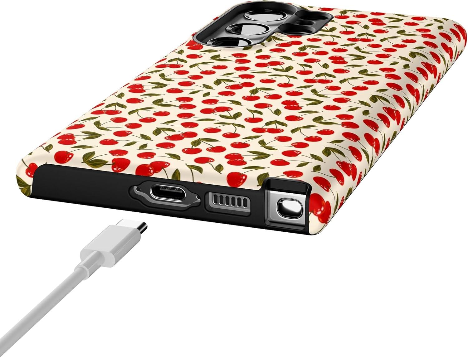 Casely Galaxy S23 Ultra Case | Nantucket Cottage | Blue Hydrangea | Essential Slim Dual-Layer Protective Design(Cherry on Top | Red Cherries)
