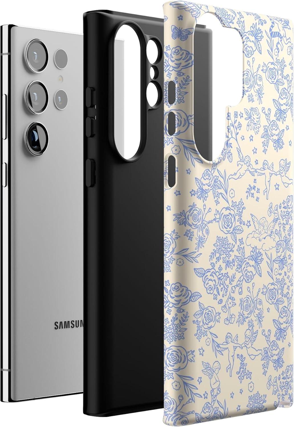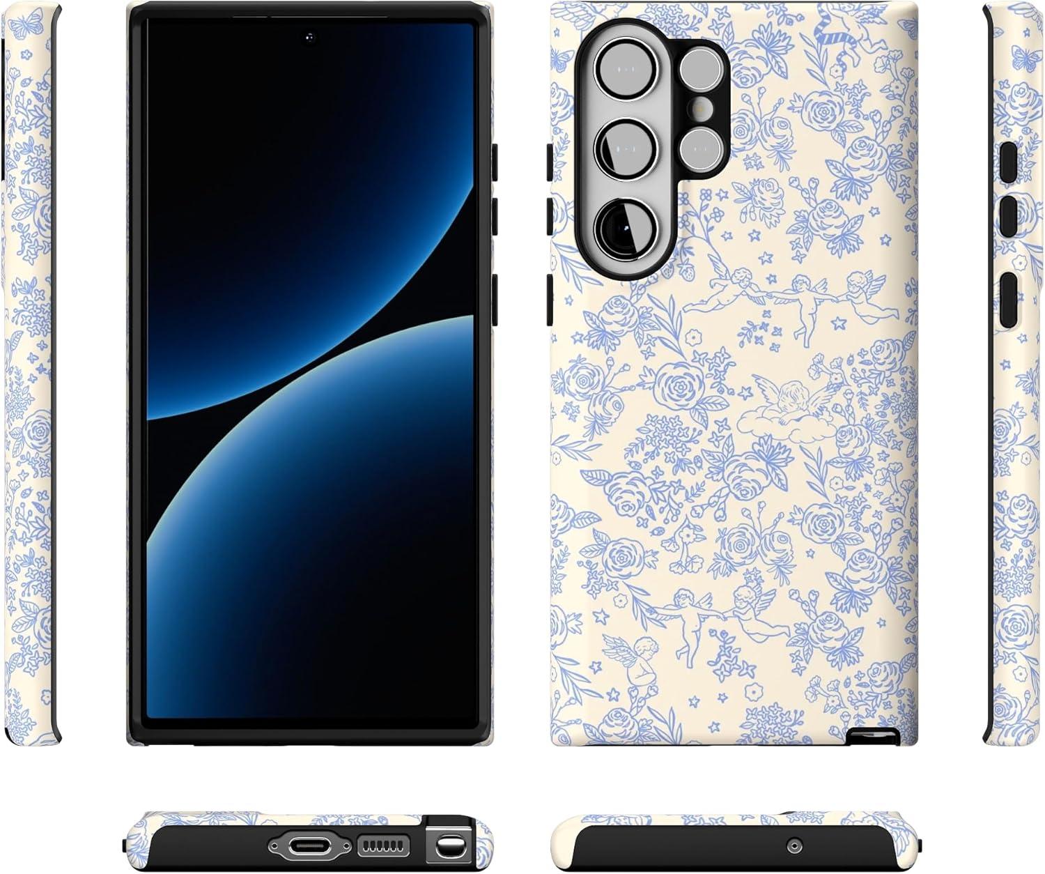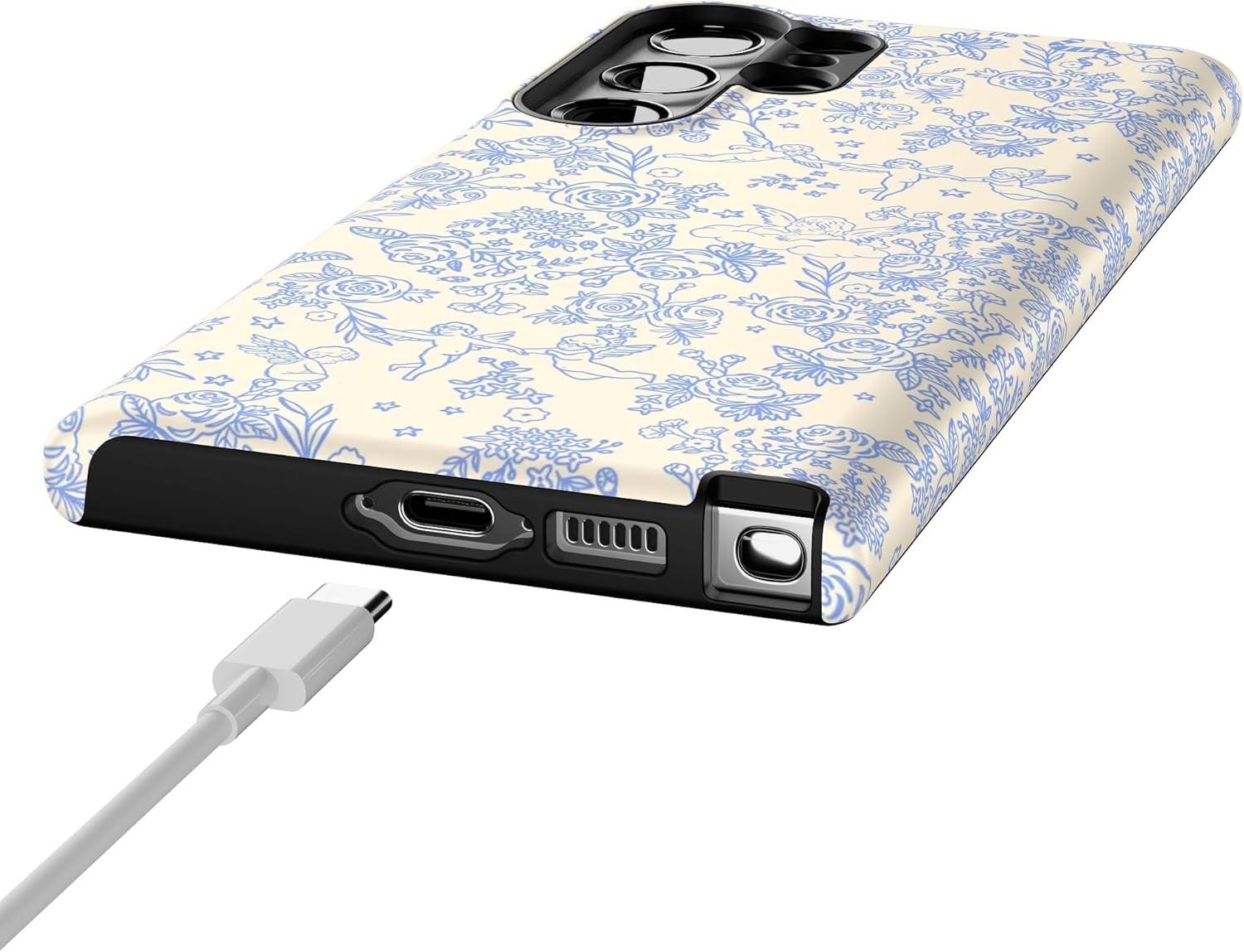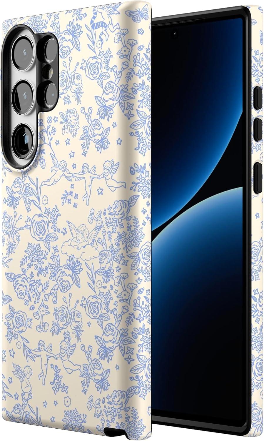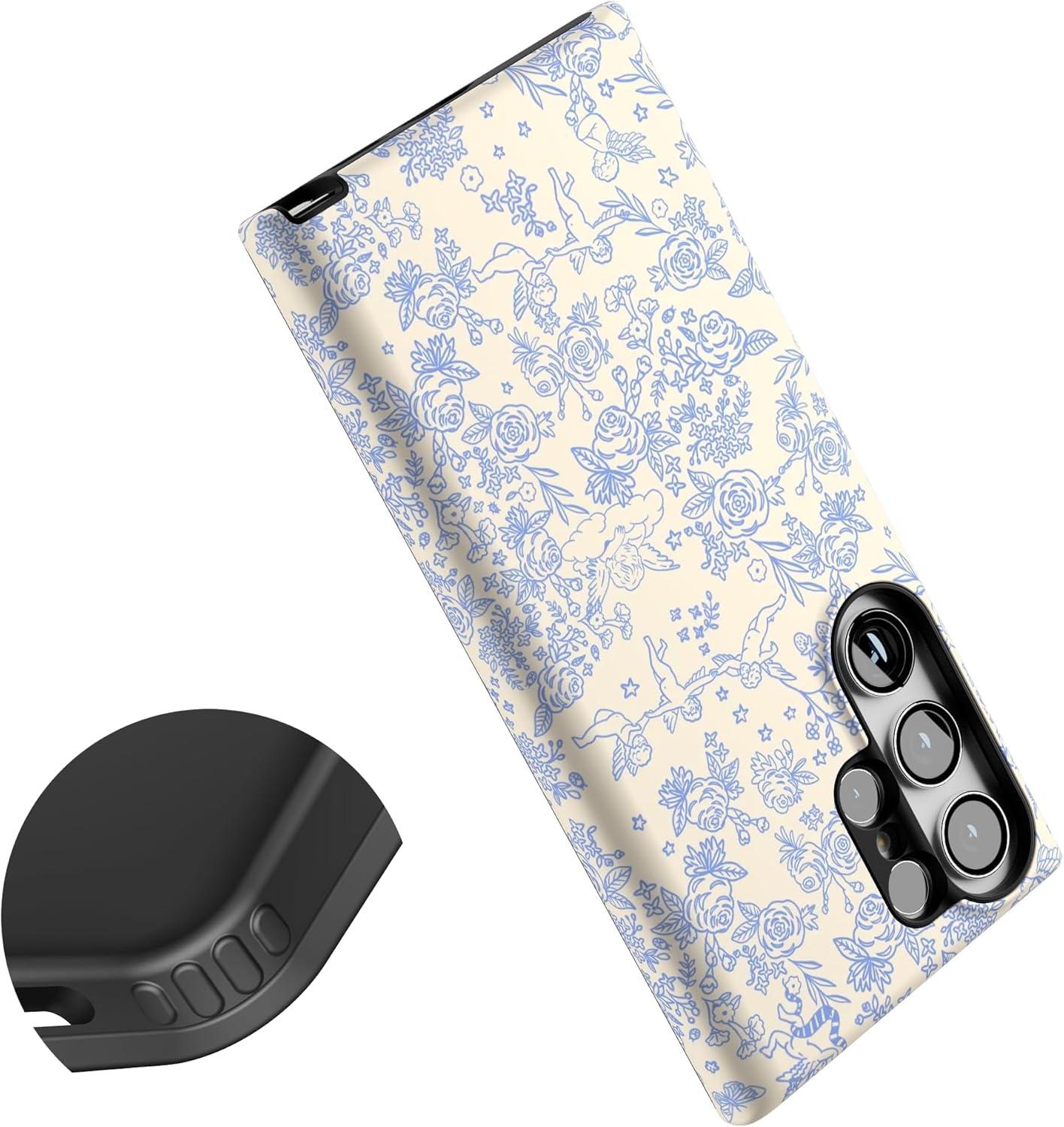 Casely Galaxy S23 Ultra Case | Nantucket Cottage | Blue Hydrangea | Essential Slim Dual-Layer Protective Design(Cupid’s Canvas | Periwinkle Floral)