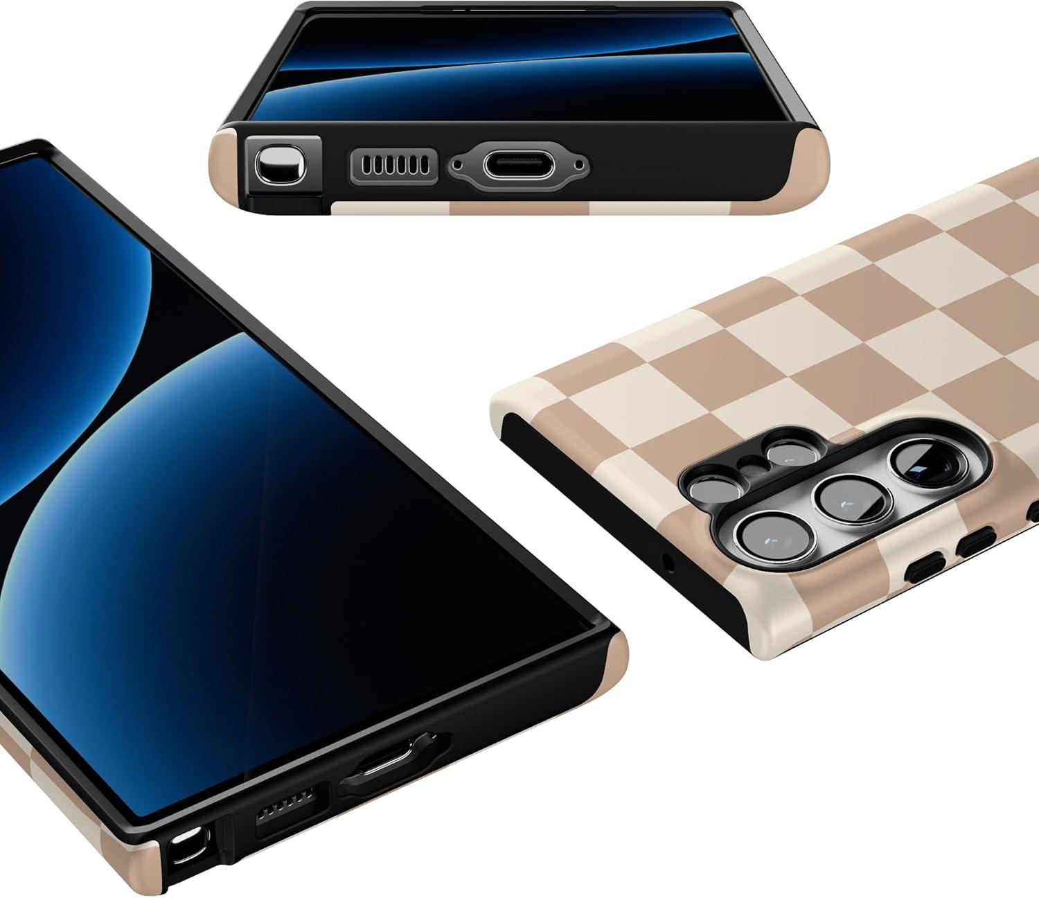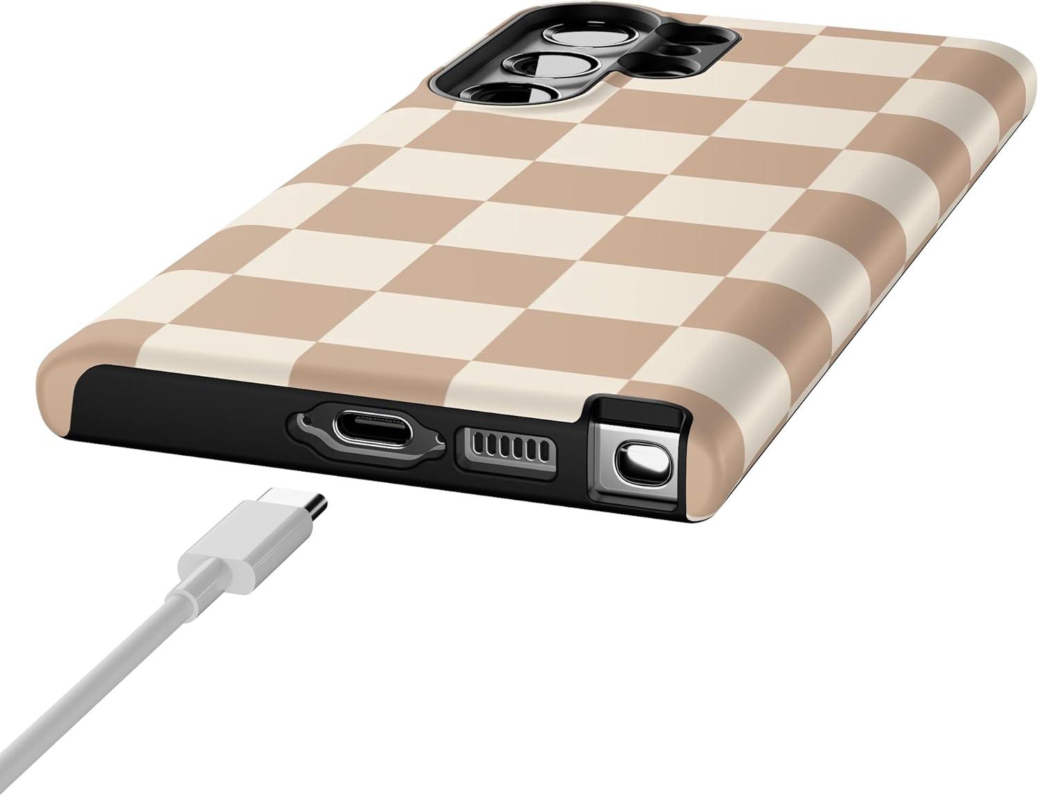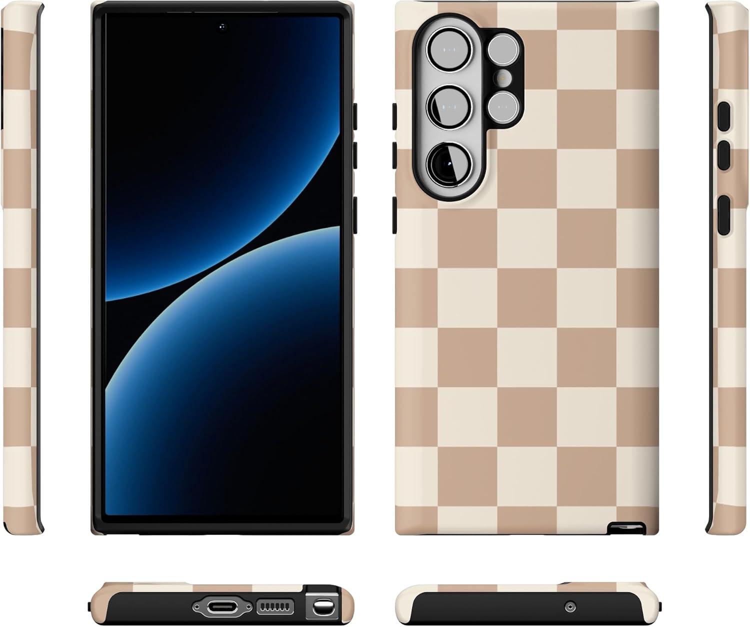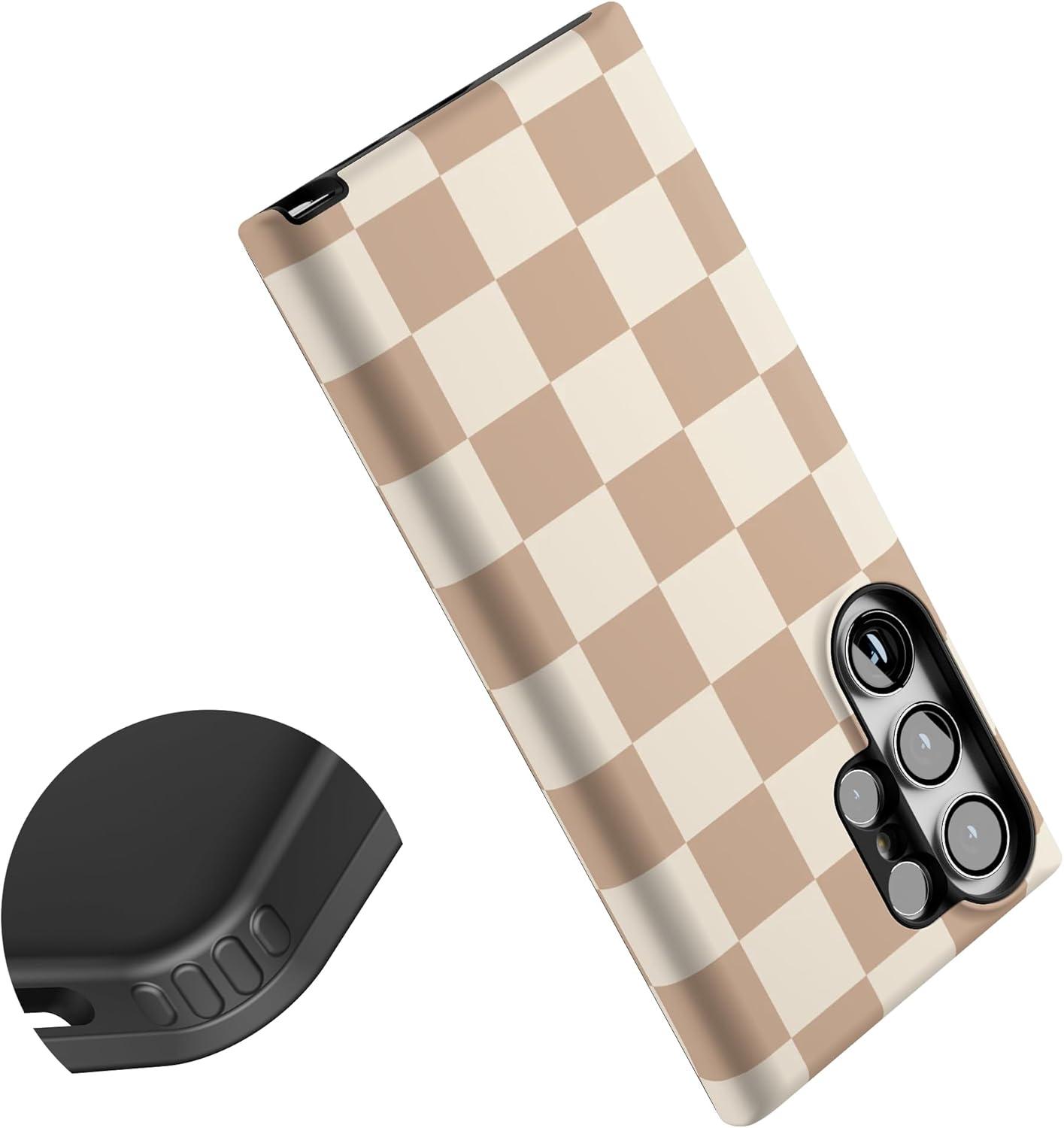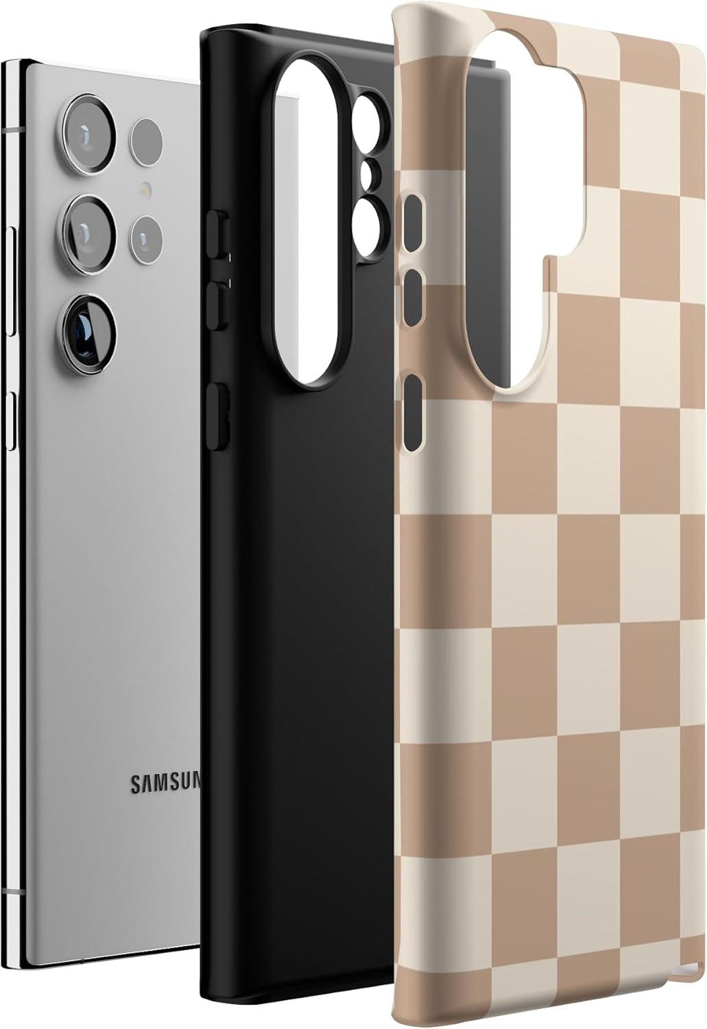 Casely Galaxy S23 Ultra Case | Nantucket Cottage | Blue Hydrangea | Essential Slim Dual-Layer Protective Design(Fit Check | Neutral Checkerboard)