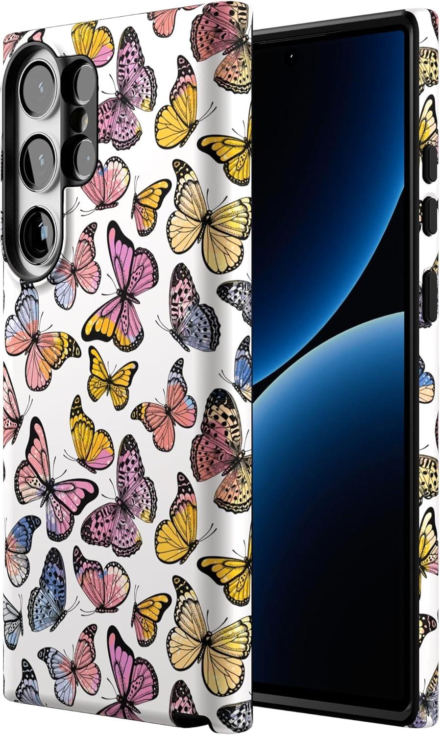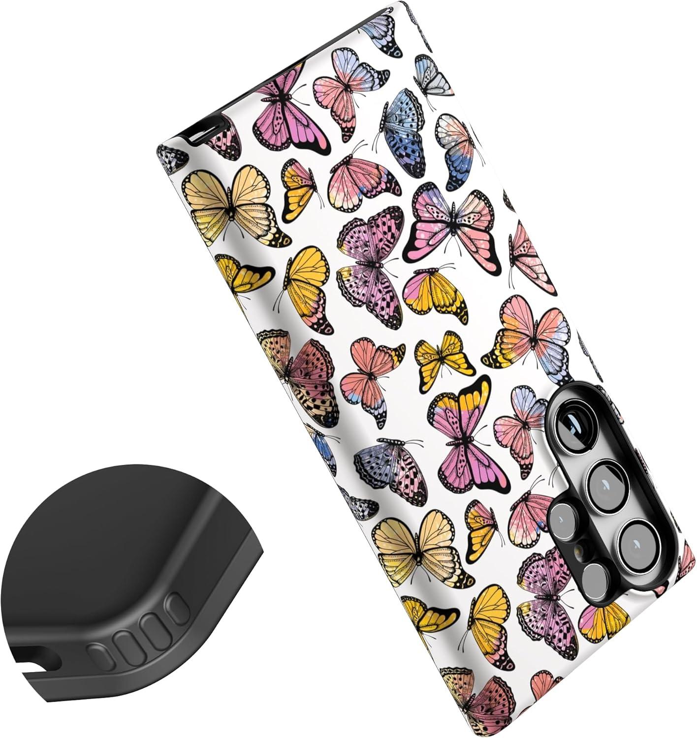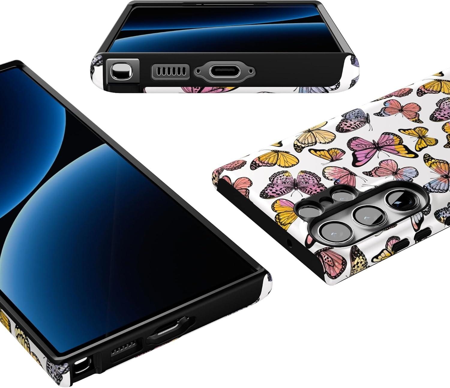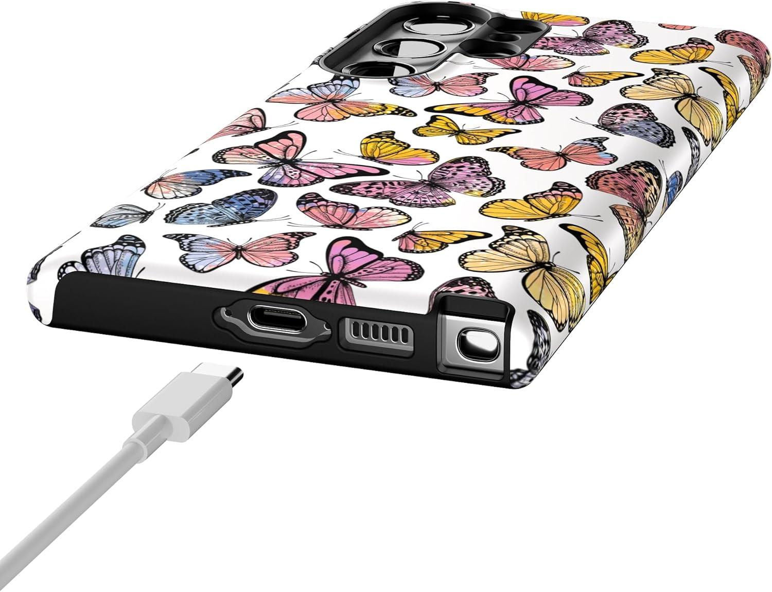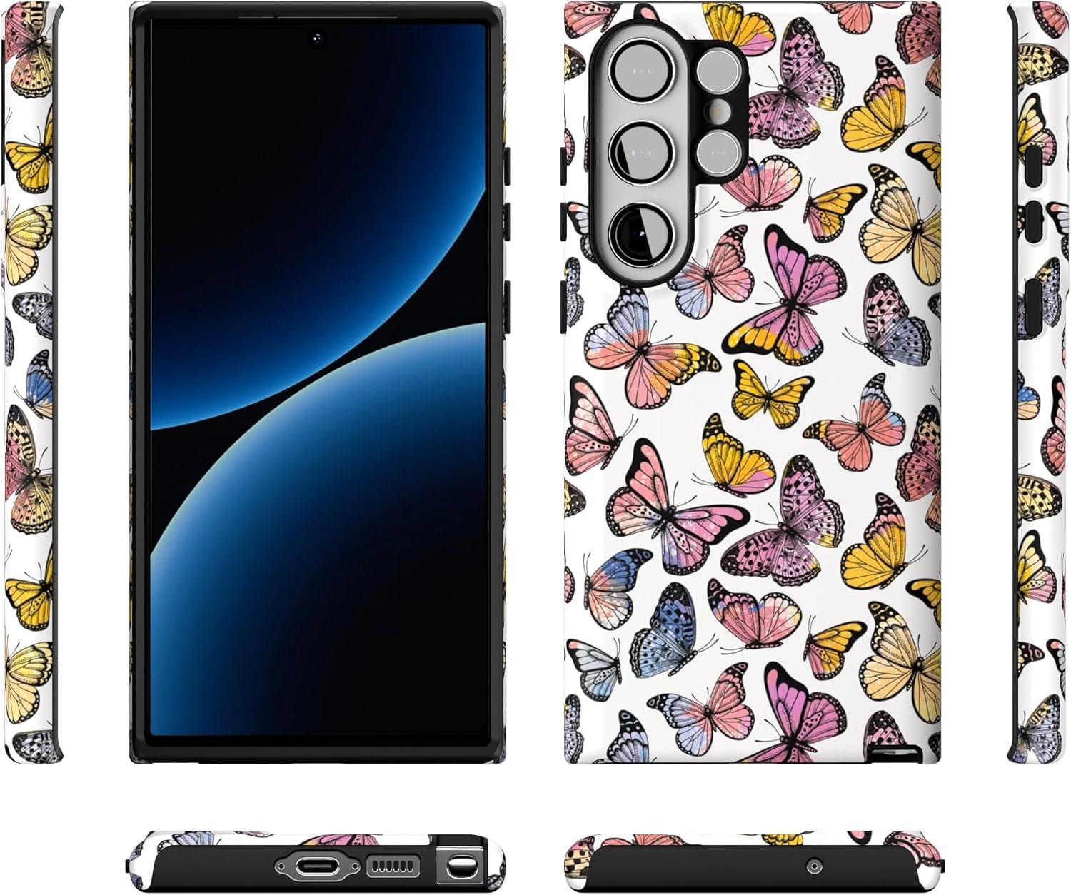Casely Galaxy S23 Ultra Case | Nantucket Cottage | Blue Hydrangea | Essential Slim Dual-Layer Protective Design(Free Spirit | Rainbow Butterfly)