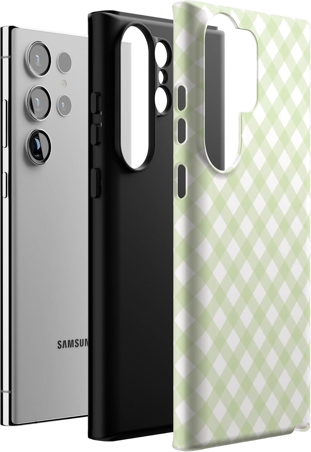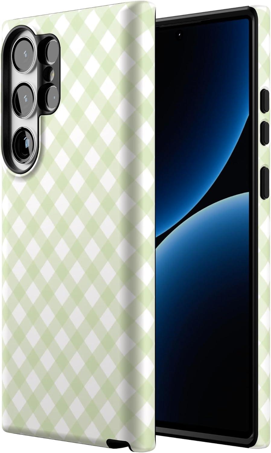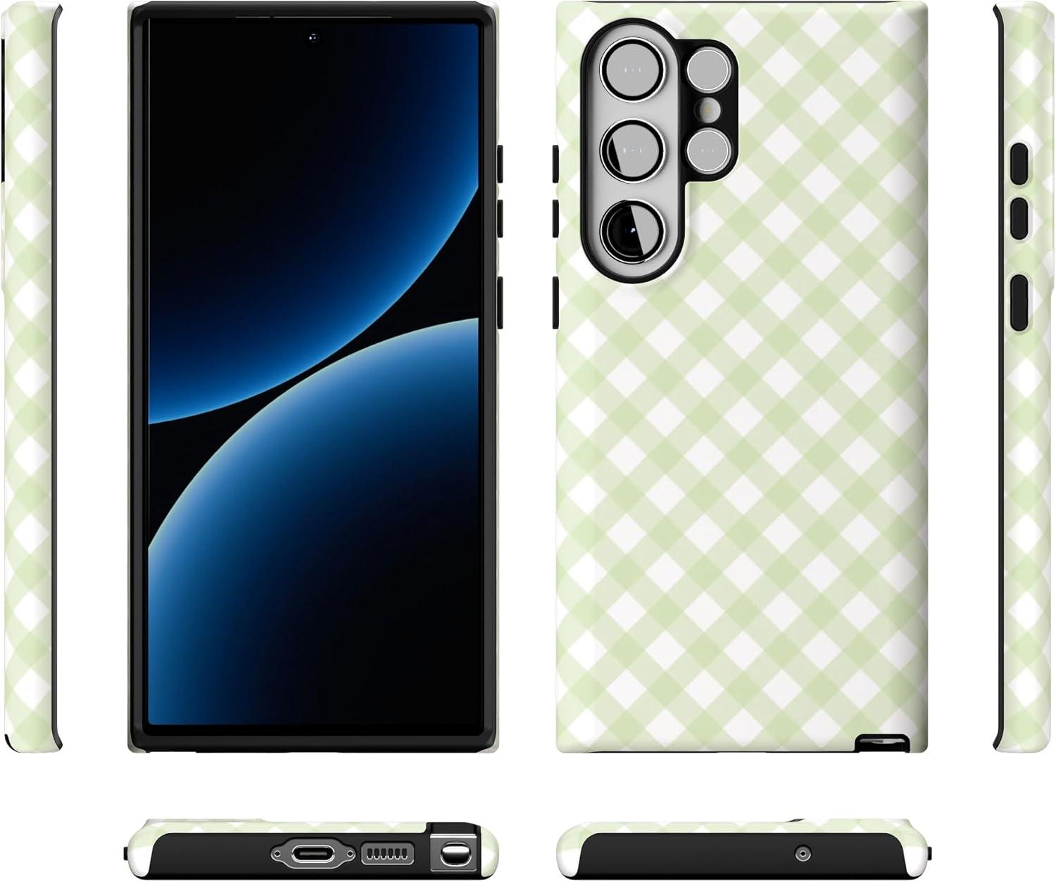 Casely Galaxy S23 Ultra Case | Nantucket Cottage | Blue Hydrangea | Essential Slim Dual-Layer Protective Design(Mint Lattice | Sunday Best)