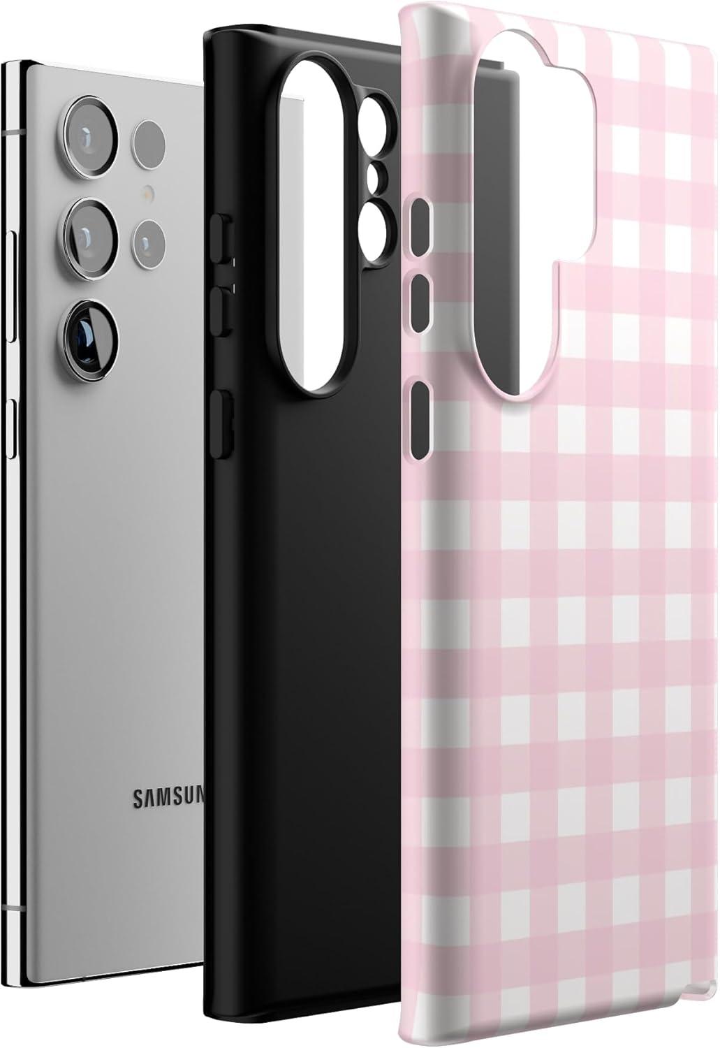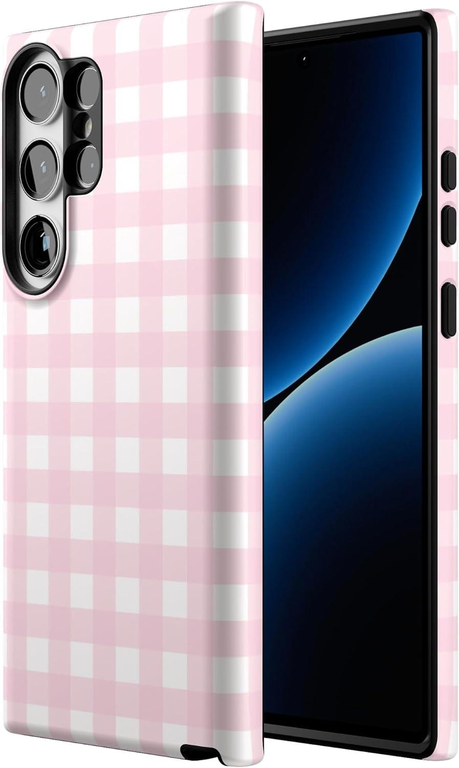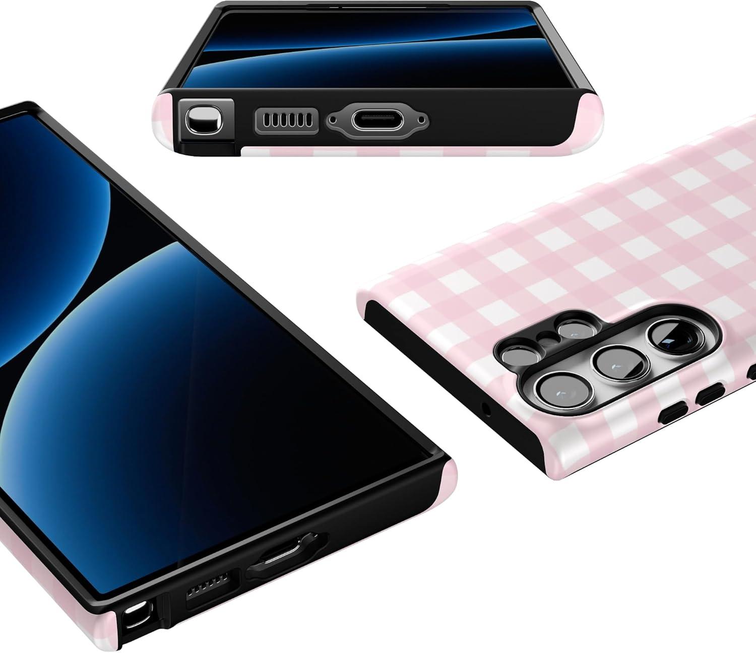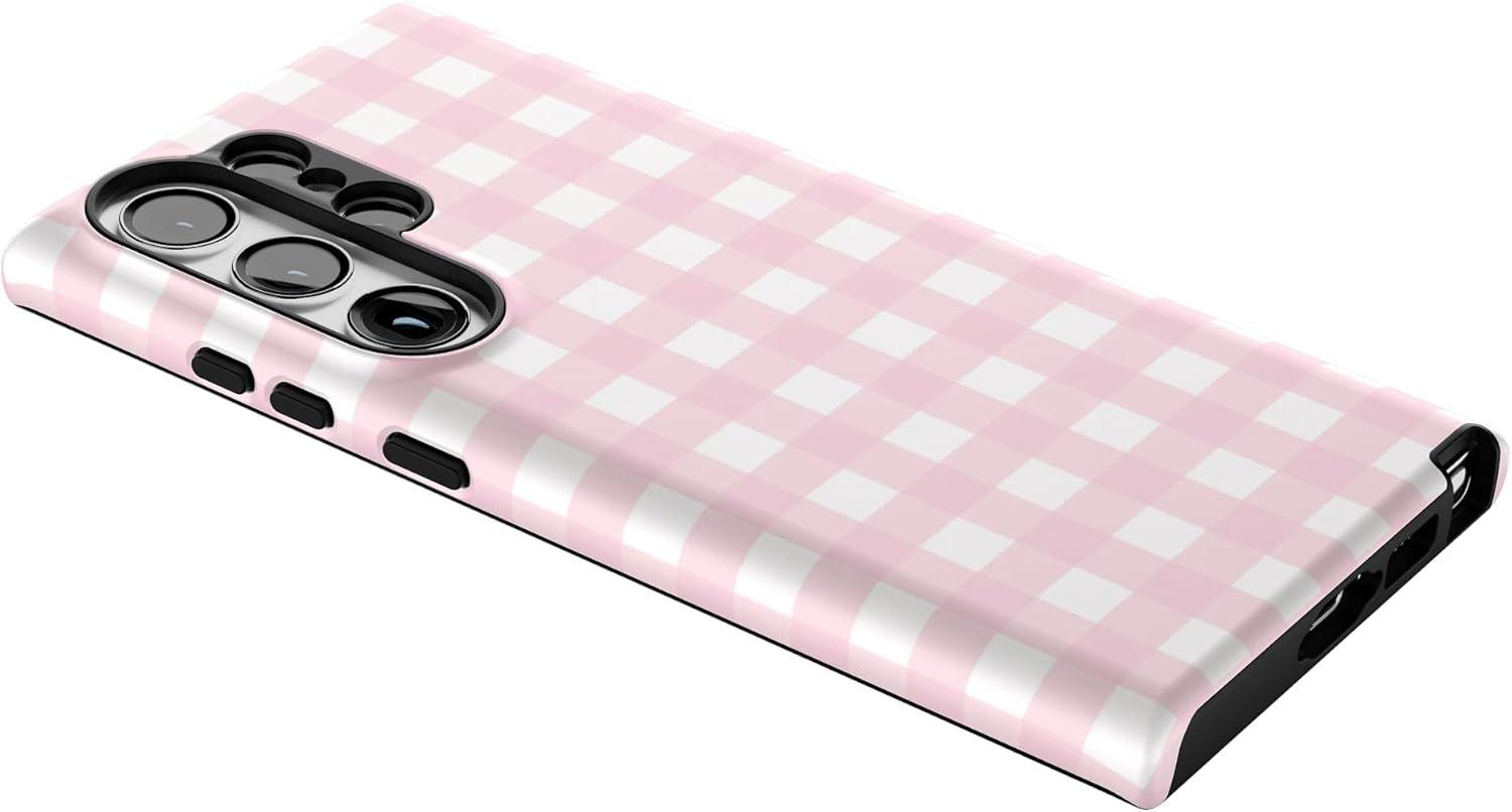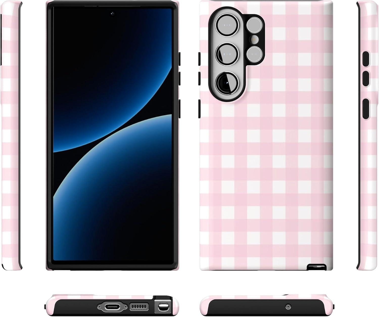 Casely Galaxy S23 Ultra Case | Nantucket Cottage | Blue Hydrangea | Essential Slim Dual-Layer Protective Design(Pink Plaid | Sunday Best)