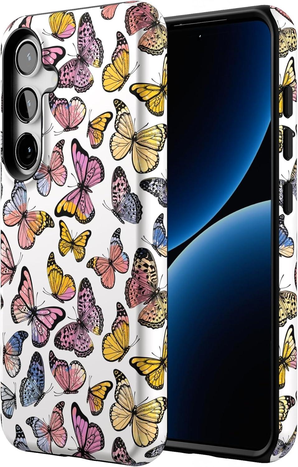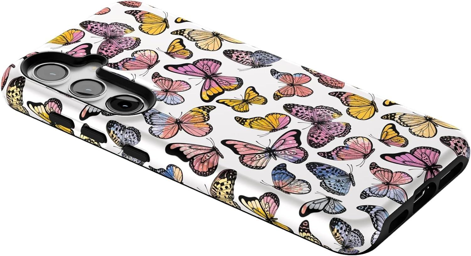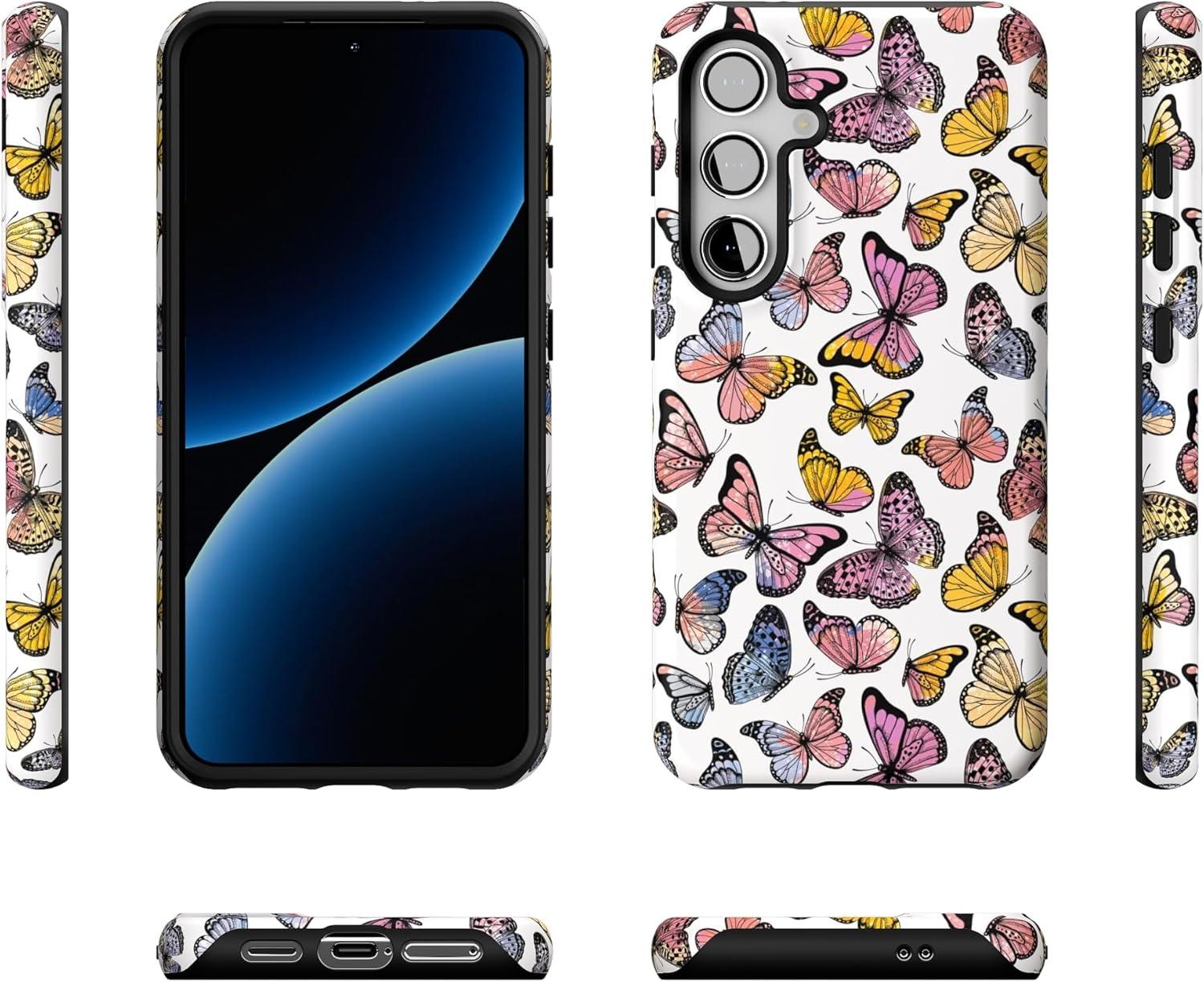 Casely Galaxy S24 Case | Tuscan Tiles | Dolce Vita | Essential Slim Dual-Layer Protective Design(Free Spirit | Rainbow Butterfly)