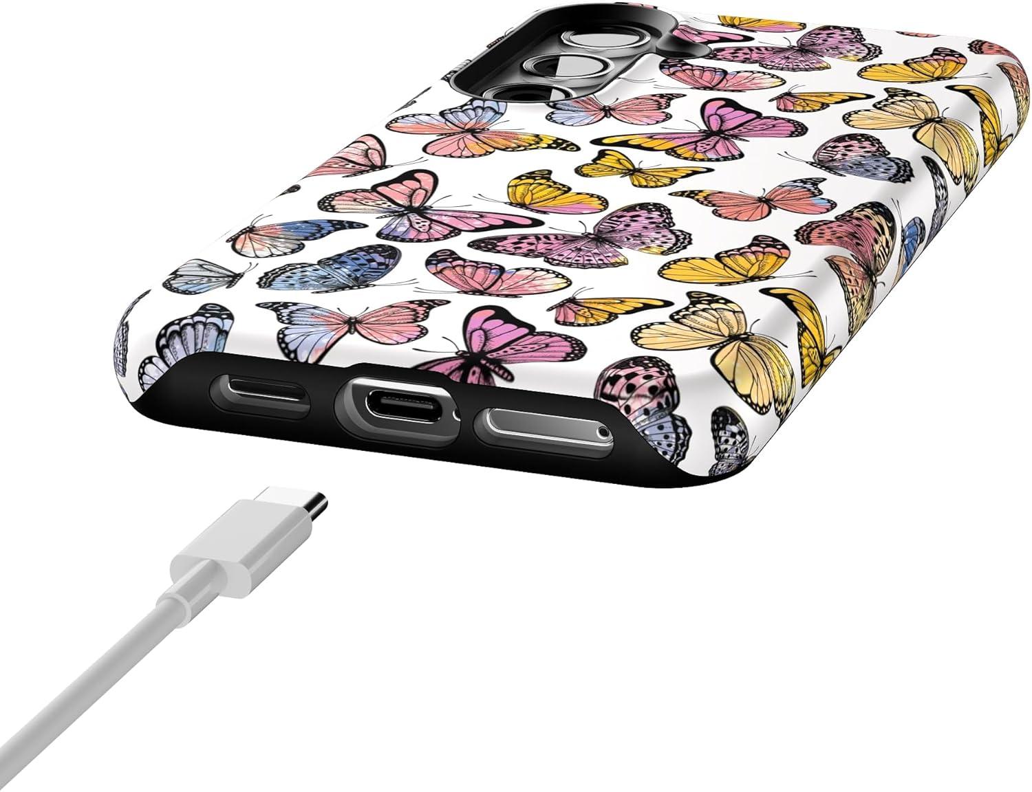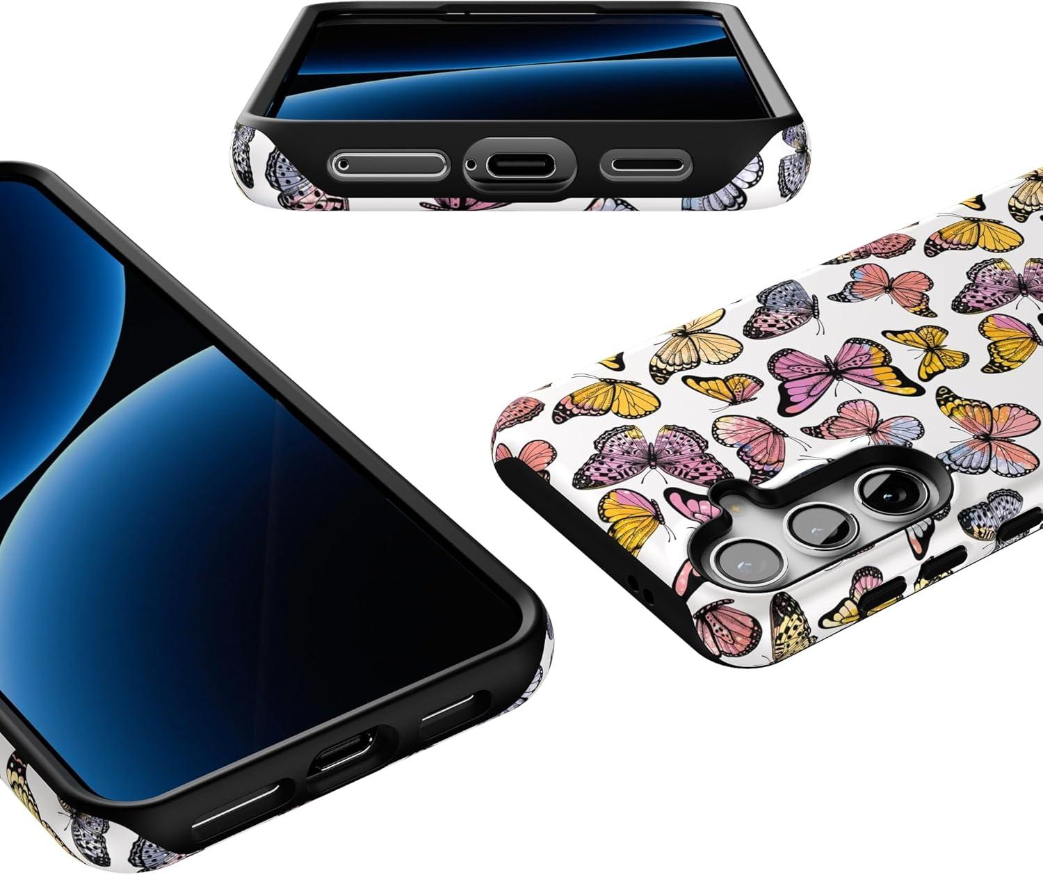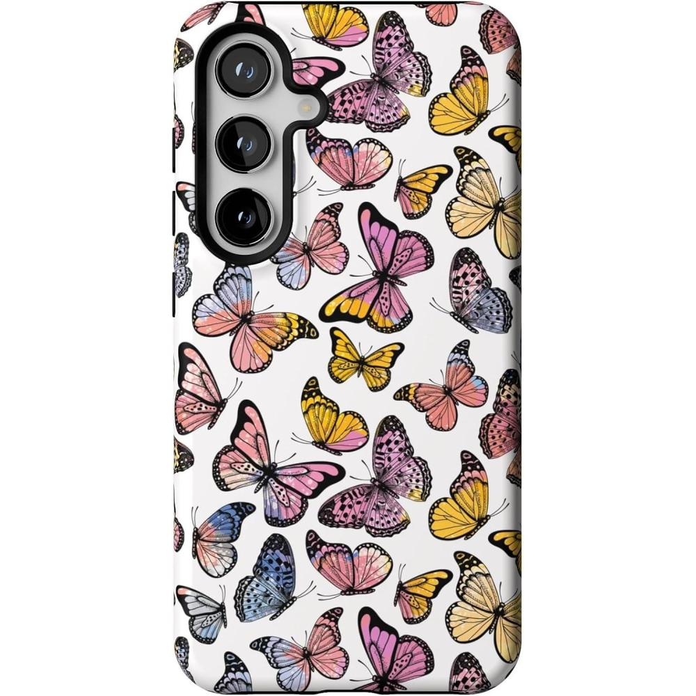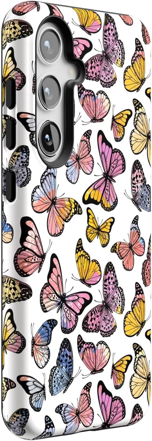 Casely Galaxy S24 Case | Tuscan Tiles | Dolce Vita | Essential Slim Dual-Layer Protective Design(Free Spirit | Rainbow Butterfly)