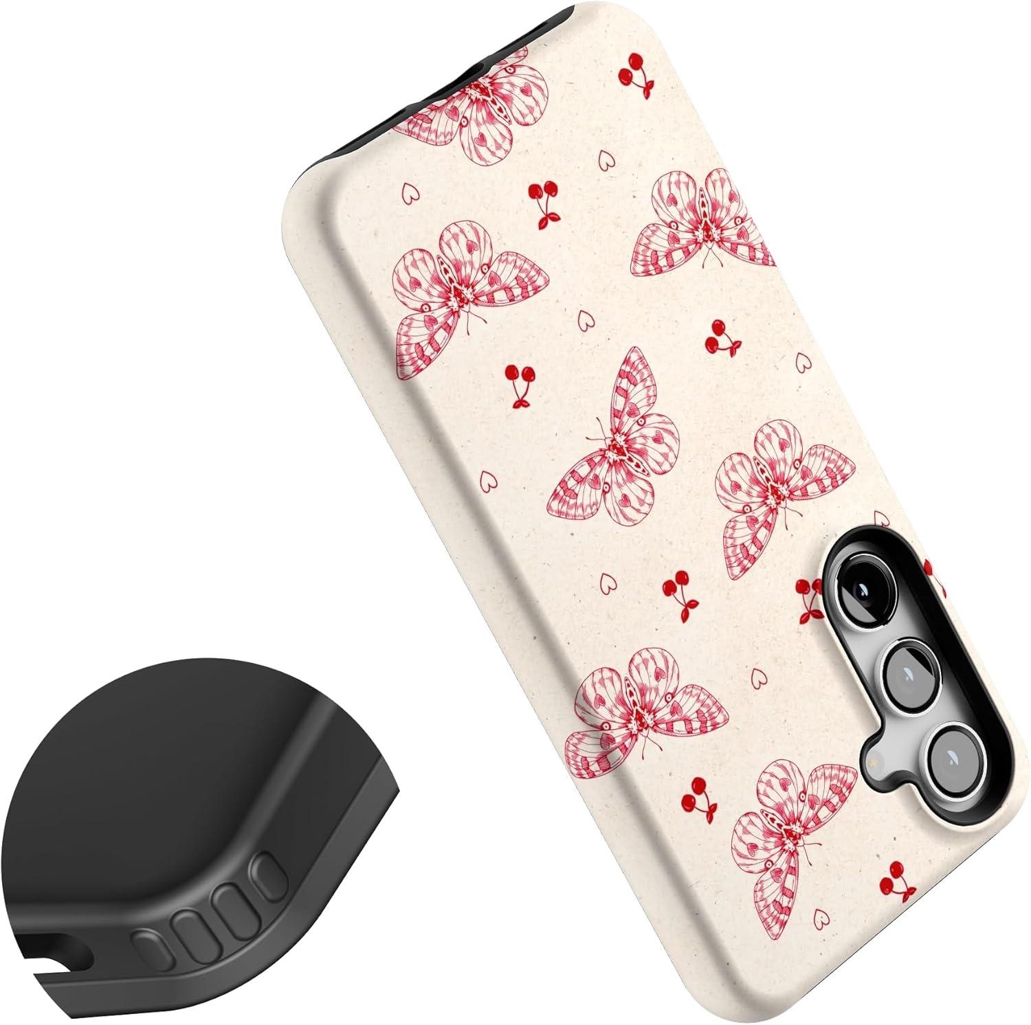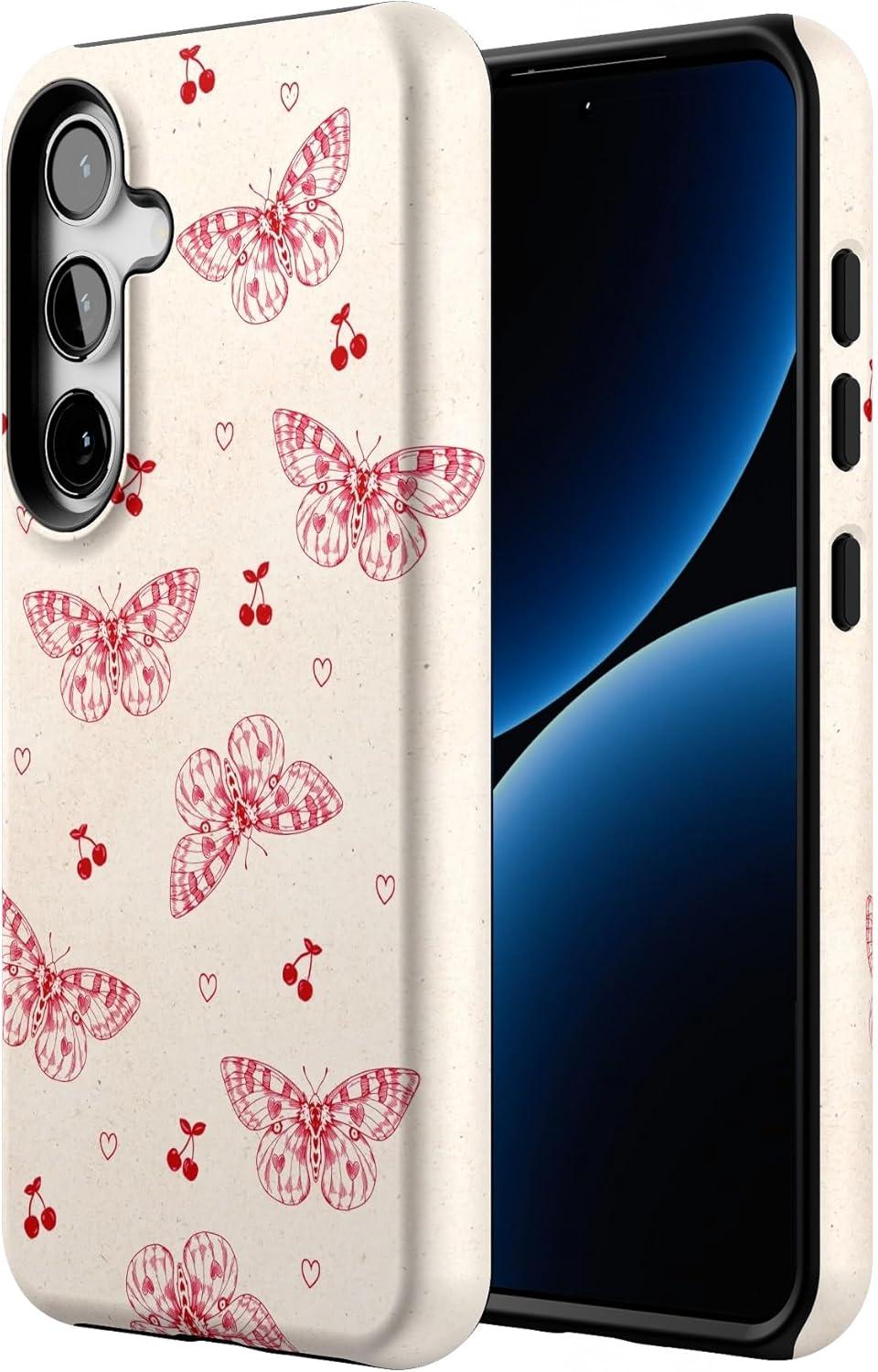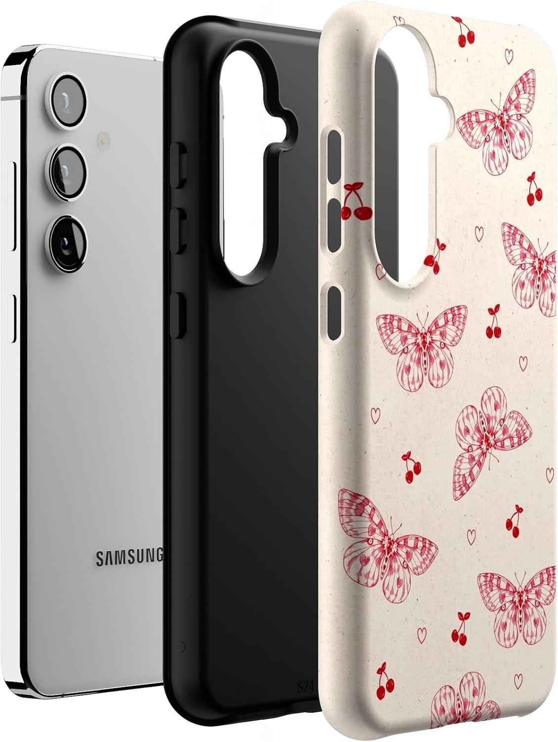 Casely Galaxy S24 Case | Tuscan Tiles | Dolce Vita | Essential Slim Dual-Layer Protective Design(Heart Flutters | Butterfly)