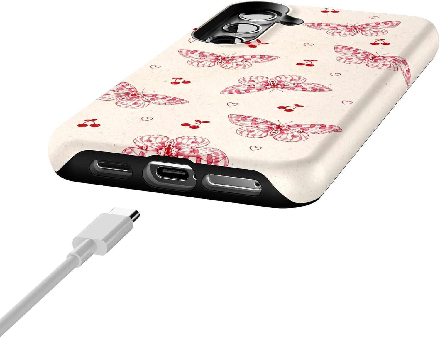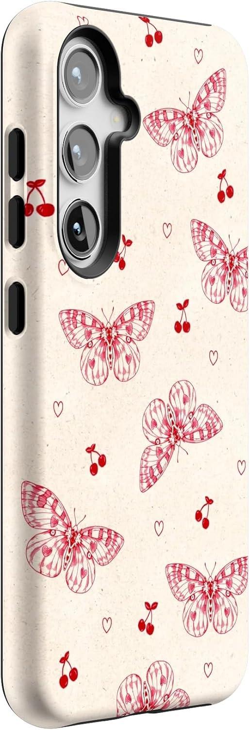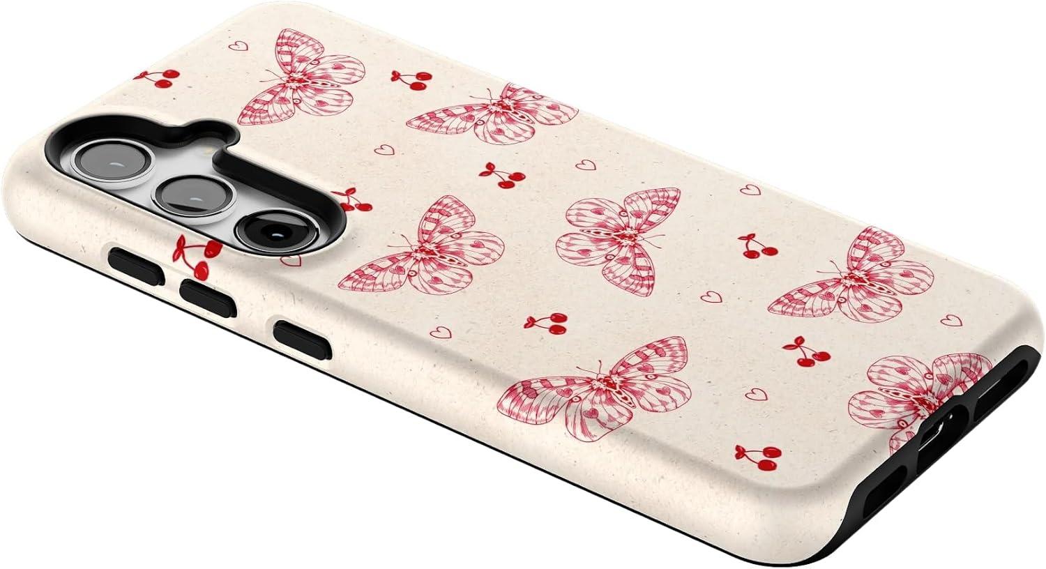 Casely Galaxy S24 Case | Tuscan Tiles | Dolce Vita | Essential Slim Dual-Layer Protective Design(Heart Flutters | Butterfly)