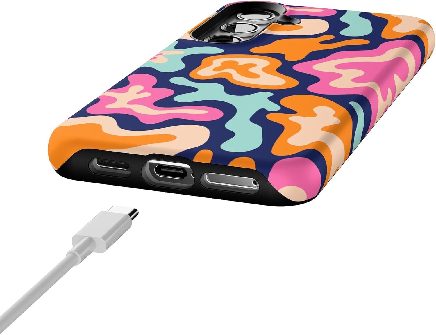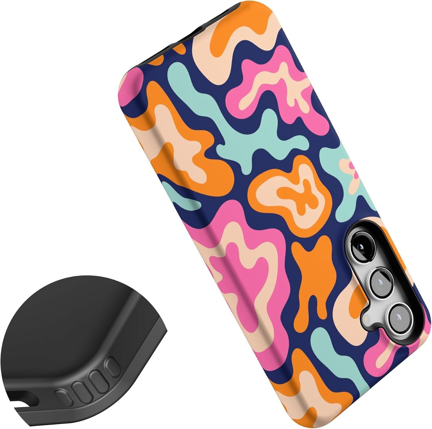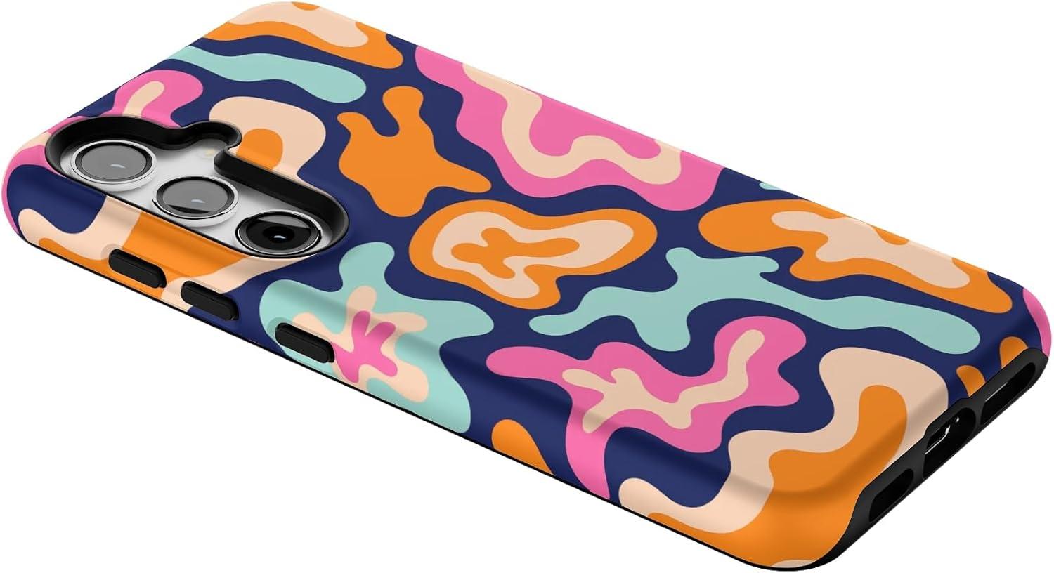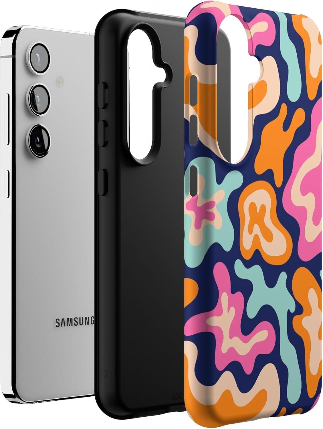 Casely Galaxy S24 Case | Tuscan Tiles | Dolce Vita | Essential Slim Dual-Layer Protective Design(Midnight Color Splash | Abstract Retro)