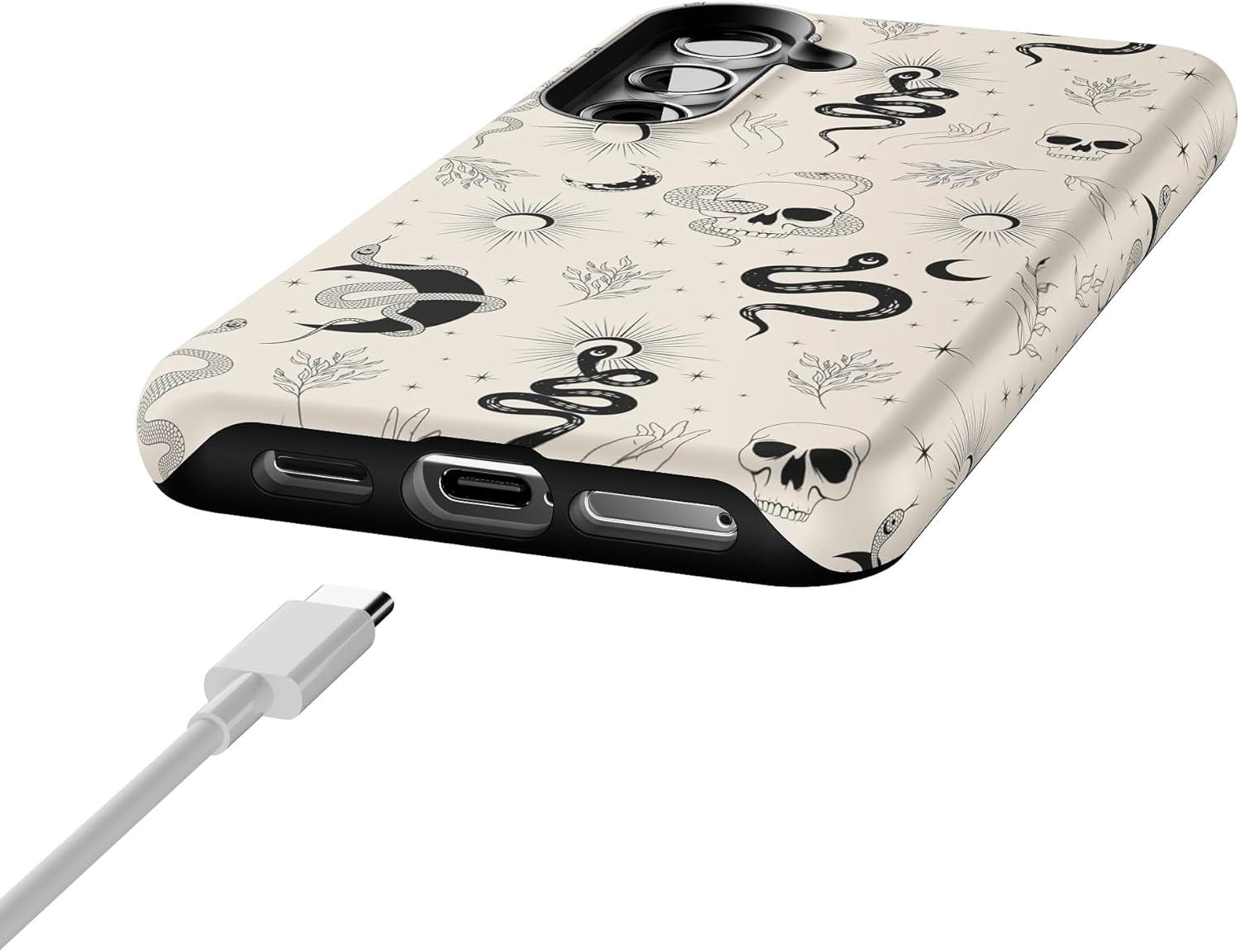 Casely Galaxy S24 Case | Tuscan Tiles | Dolce Vita | Essential Slim Dual-Layer Protective Design(No Further Explanation | Snakes & Skulls)